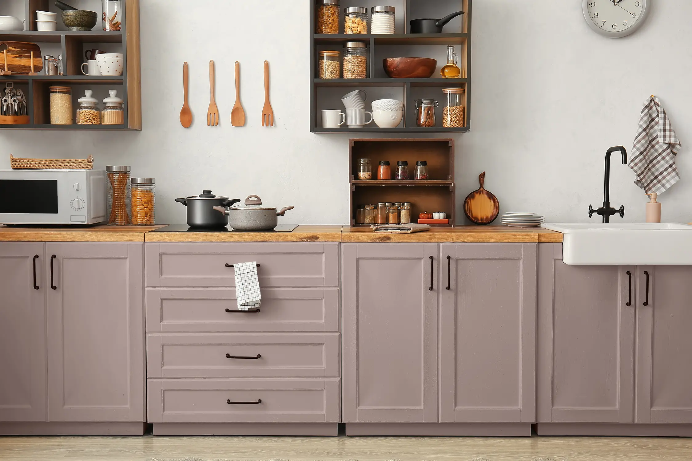 Das beste Ergebnis erhältst du, wenn du den altrosa Lack in zwei dünnen Schichten aufträgst. Eine Lackrolle mit Schaumstoffaufsatz oder ein weicher Pinsel sind ideal dafür, aber auch ein Auftrag mit einem Spritzgerät ist möglich.