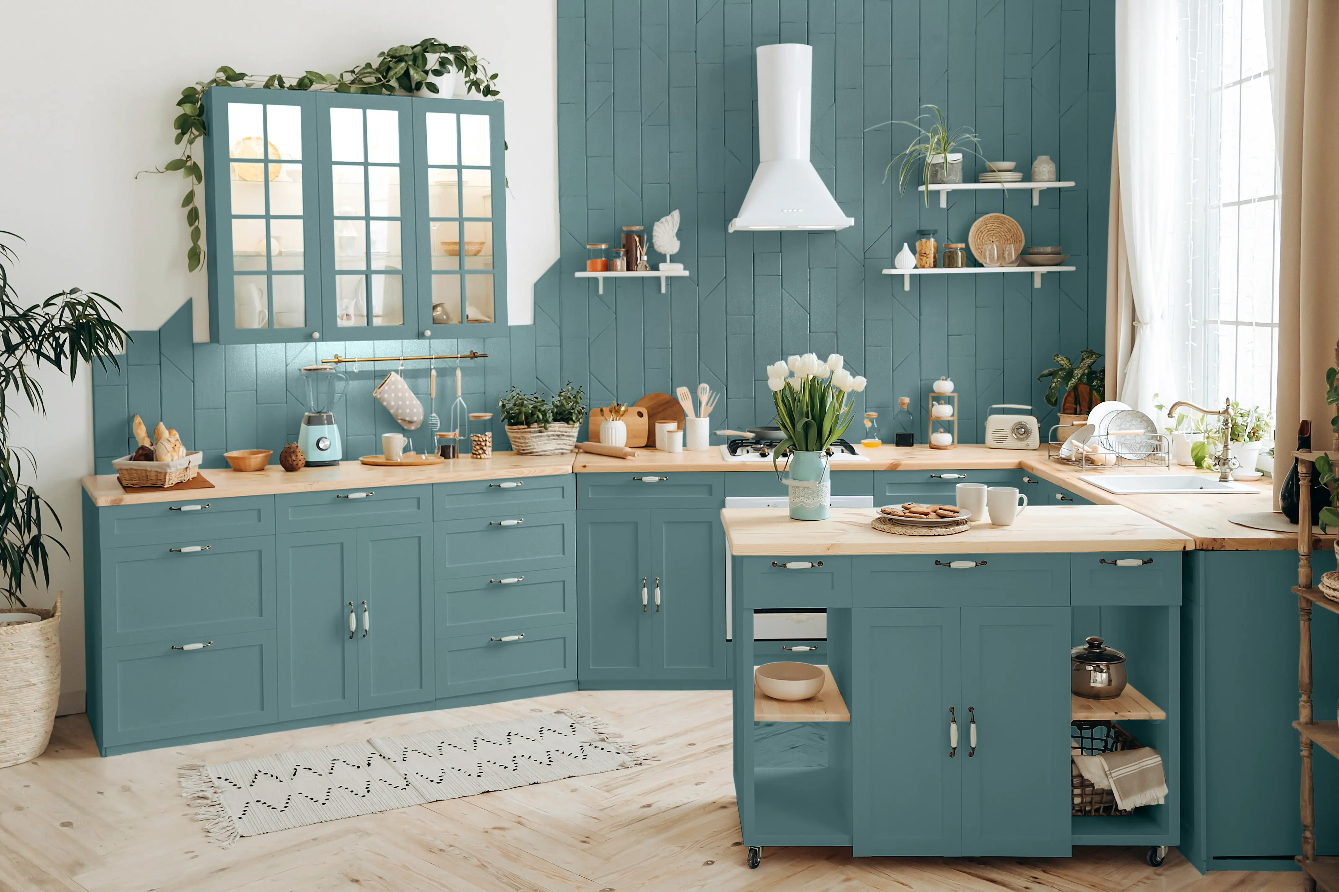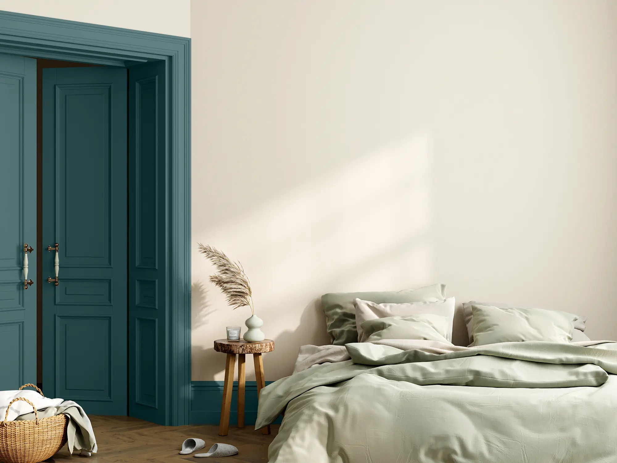Caleo-Tipp: Schablonen sind eine schöne Lösung, um mit wenig Aufwand Akzente zu setzen. Greife zum Beispiel auf den weißen Wänden den Ton der farbigen Wand wieder auf, indem du mithilfe von Schablonen kleine Farbakzente setzt und so mehr Dynamik in die Raumgestaltung bringst.