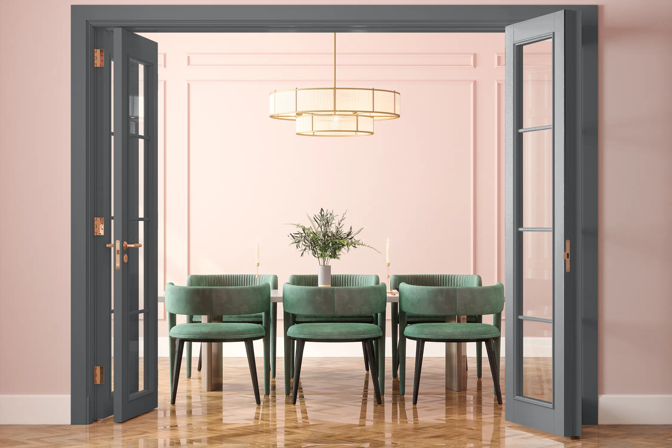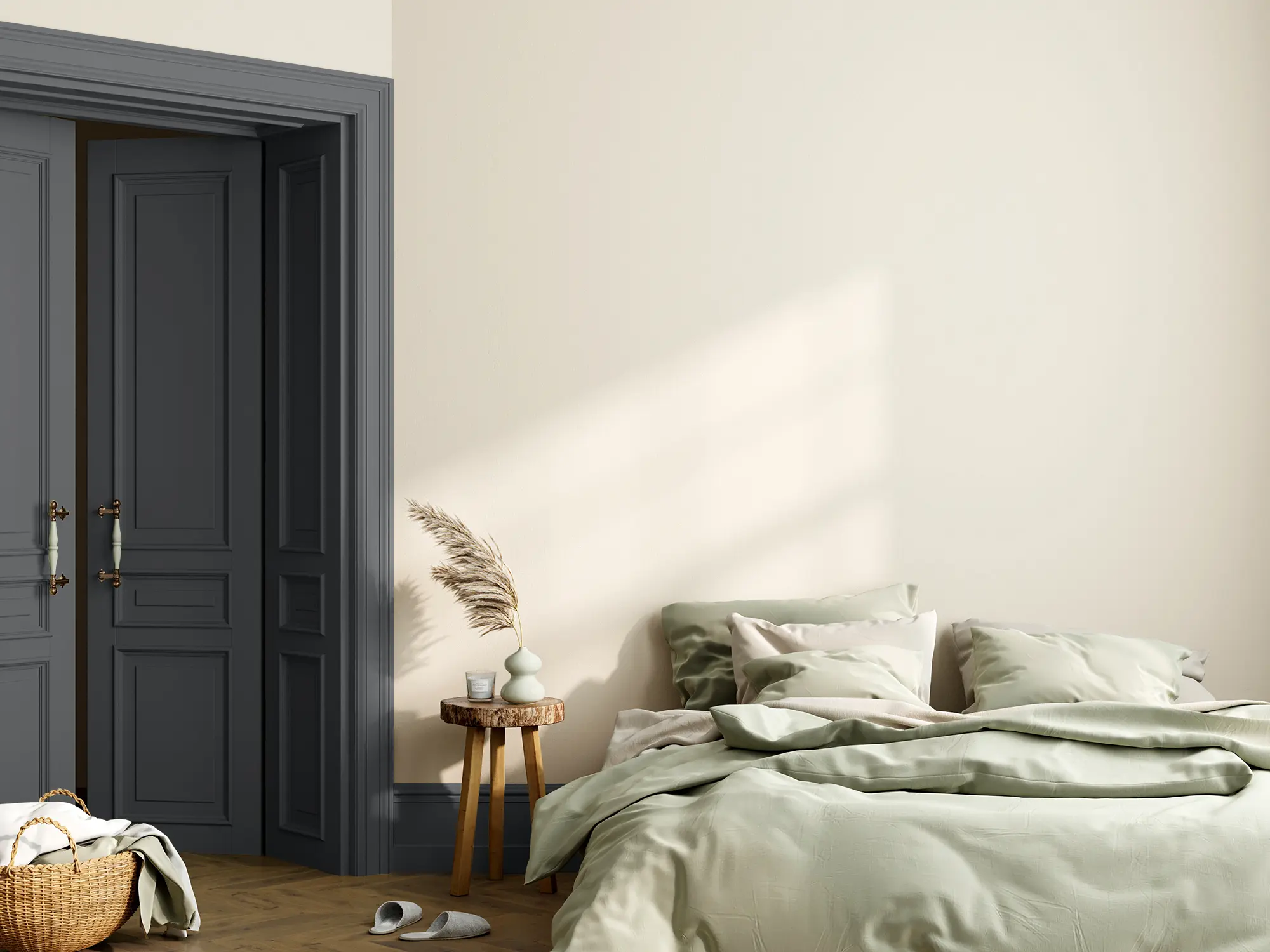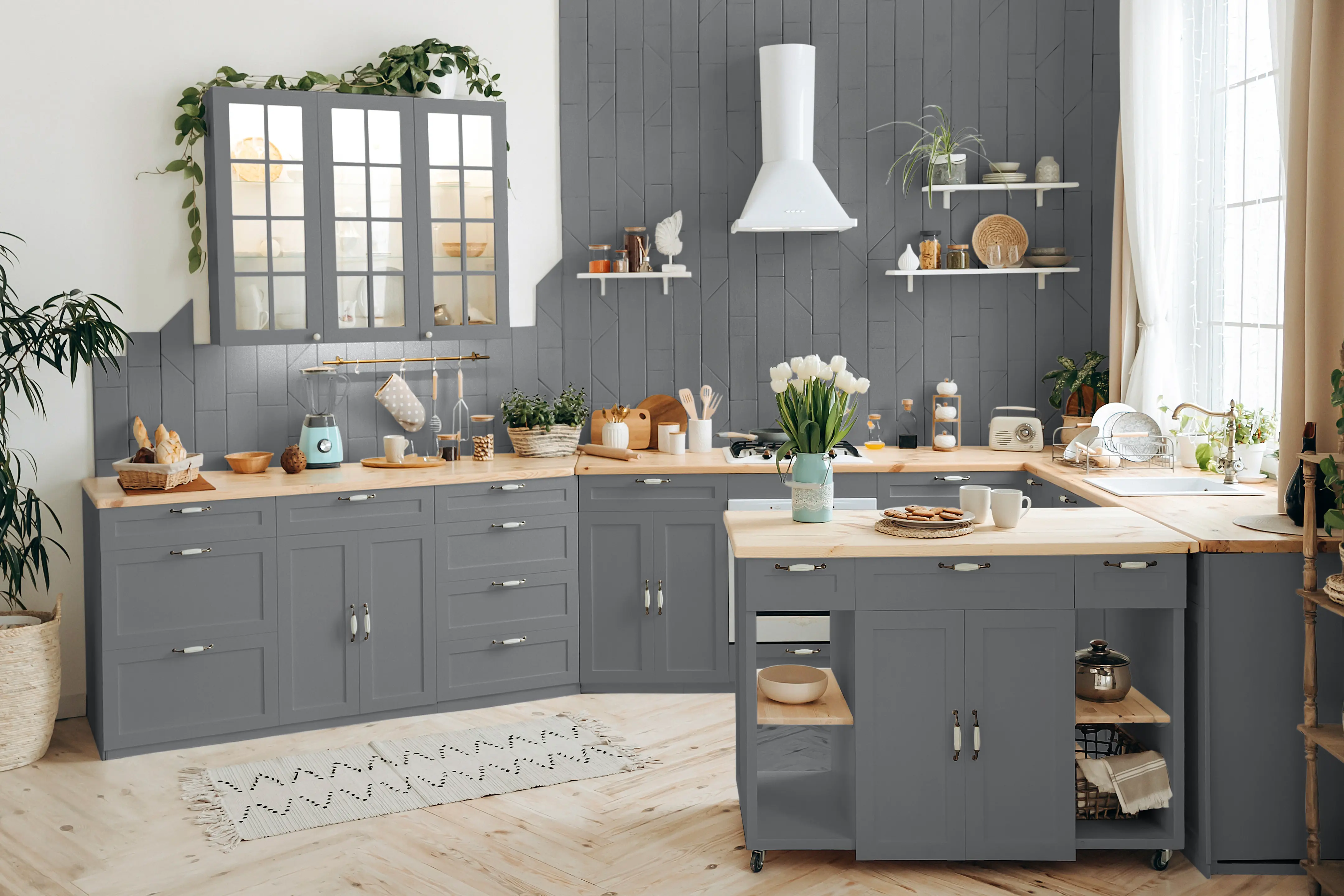 Der Lack „Donnergrollen“ ist ein kühles Dunkelgrau, das an die Farbe von Gewitterwolken erinnert. Streichst du Möbelstücke in diesem Lackton, setzt du dunkle und kräftige Akzente im Raum. Da „Donnergrollen“ ein recht dunkler Farbton ist, solltest du ihn gezielt einsetzen. Er eignet sich sehr gut, um Akzente in großen und hellen Räumen zu setzen. Streiche zum Beispiel die Fensterrahmen, Regale oder auch Dekorationselemente wie Bilderrahmen und Vasen, um Akzente zu setzen und Struktur in die Raumgestaltung zu bringen.