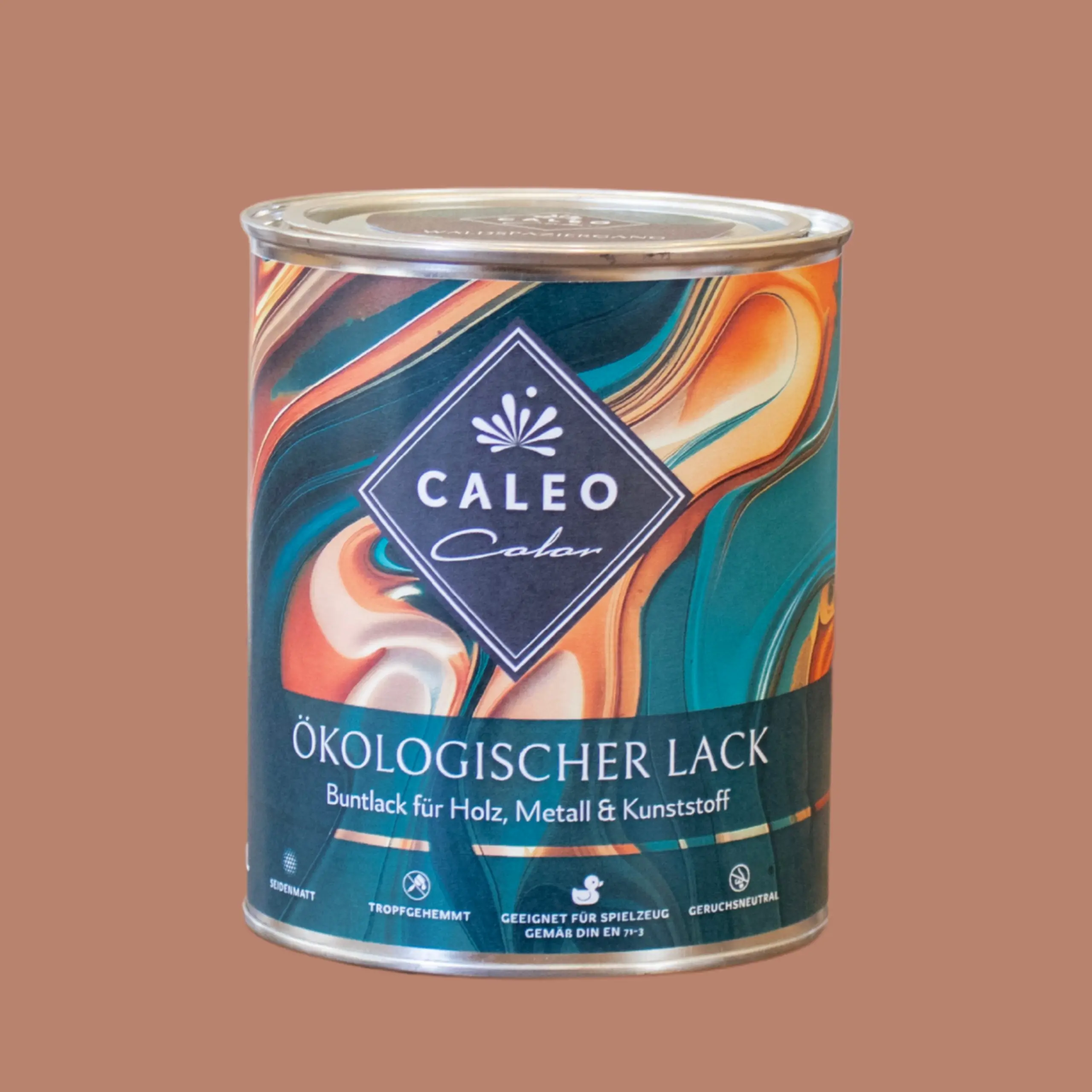 Mit dem ökologischen Lack in Braun von Caleo Color kannst du mit gutem Gewissen auch Dinge lackieren, die häufig berührt werden, denn die Bestandteile unserer Lacke sind speichelecht und spielzeugtauglich nach EN 71 Teil 3 (Sicherheit von Kinderspielzeugen). Unsere Lacke sind frei von chemischen Lösungsmitteln, basieren auf ungiftigen natürlichen Rohstoffen und setzen keine VOCs frei. Sie sind diffusionsoffen und antistatisch, was bedeutet, dass die Oberflächen diffusionsoffen bleiben und keinen Staub anziehen.
