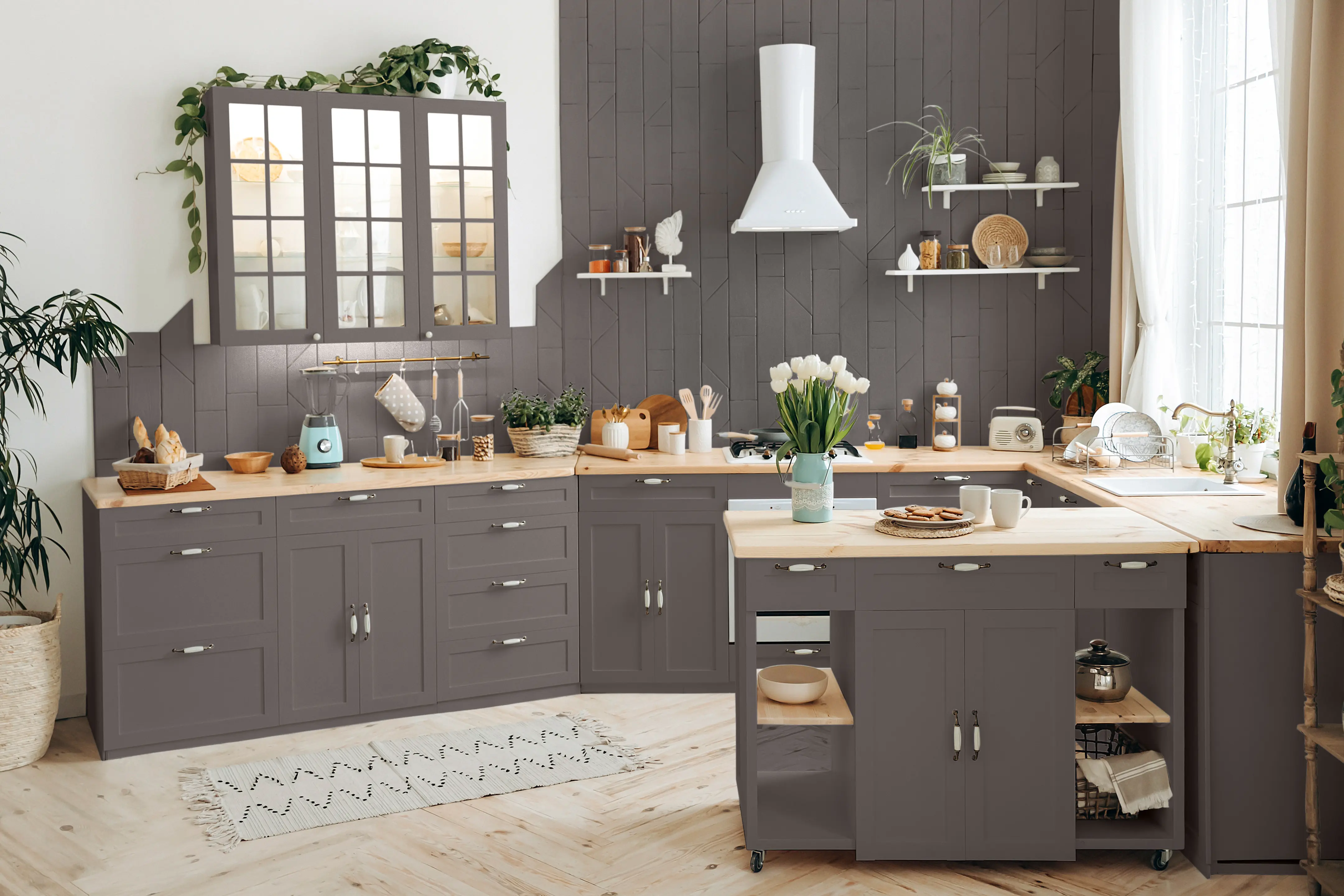 Der Lack „Hochmoor“ ist ein dunkles Braungrau. Durch seine braune Nuance hat der Farbton eine warme Note und wirkt damit besonders ruhig und entspannend. Setze mit „Hochmoor“ dunkle Akzente in Räumen, in denen du eine beruhigende und gemütliche Atmosphäre schaffen möchtest. Streiche zum Beispiel kleine Regale, Stühle und andere Möbelstücke, die wenig große Flächen haben. Auf größeren Flächen wie Kleiderschränken und Türen eignet sich der dunkle Farbton vor allem für kontrastreiche Verzierungen auf hellerem Untergrund.