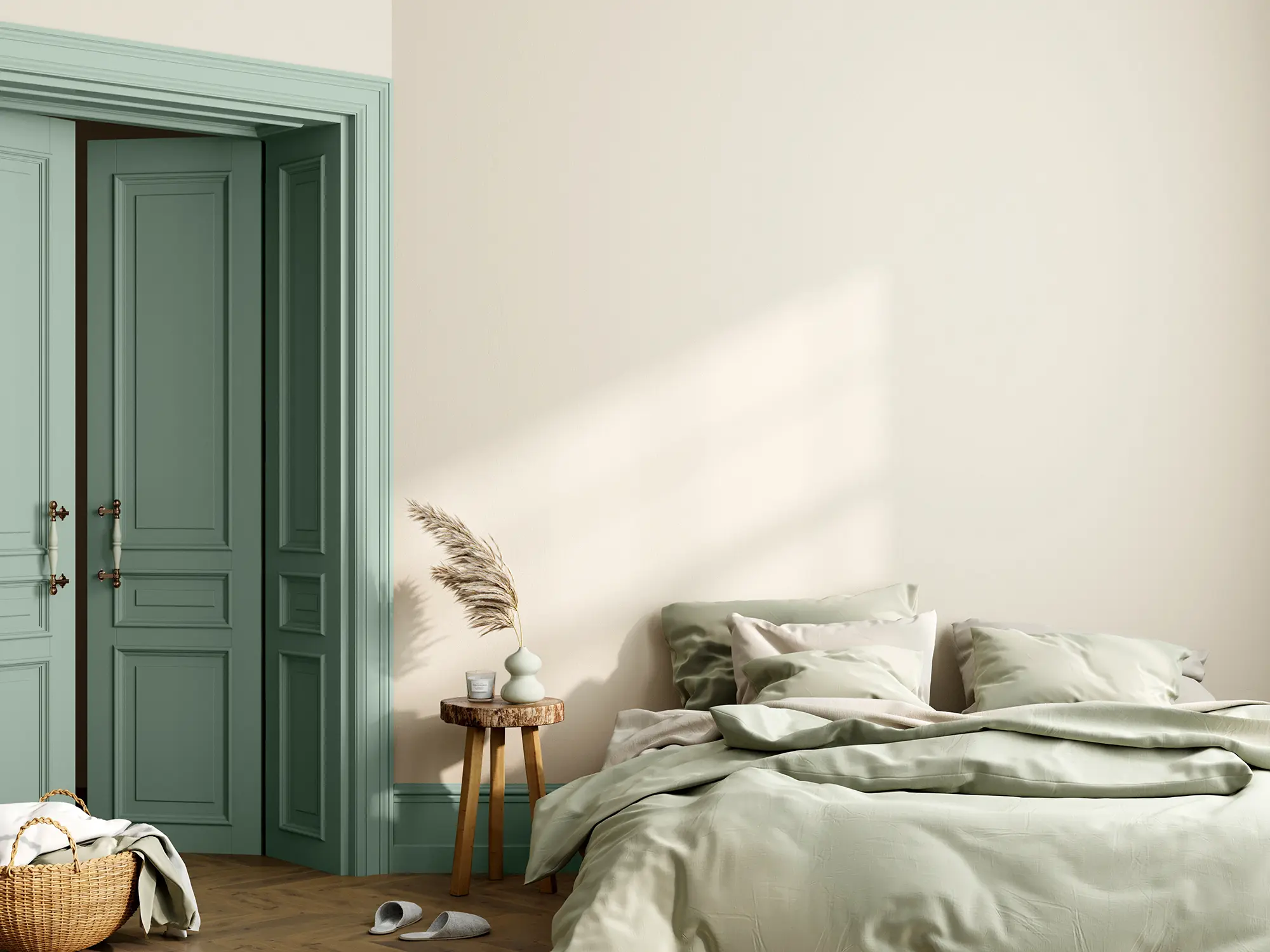 Caleo-Tipp: Verschiedenfarbige Möbelstücke lassen sich mit "Novembernebel" harmonisch vereinheitlichen. Dies unterstützt eine klare und beruhigende Raumwirkung und eignet sich besonders gut für minimalistisch oder skandinavisch inspirierte Einrichtungen.