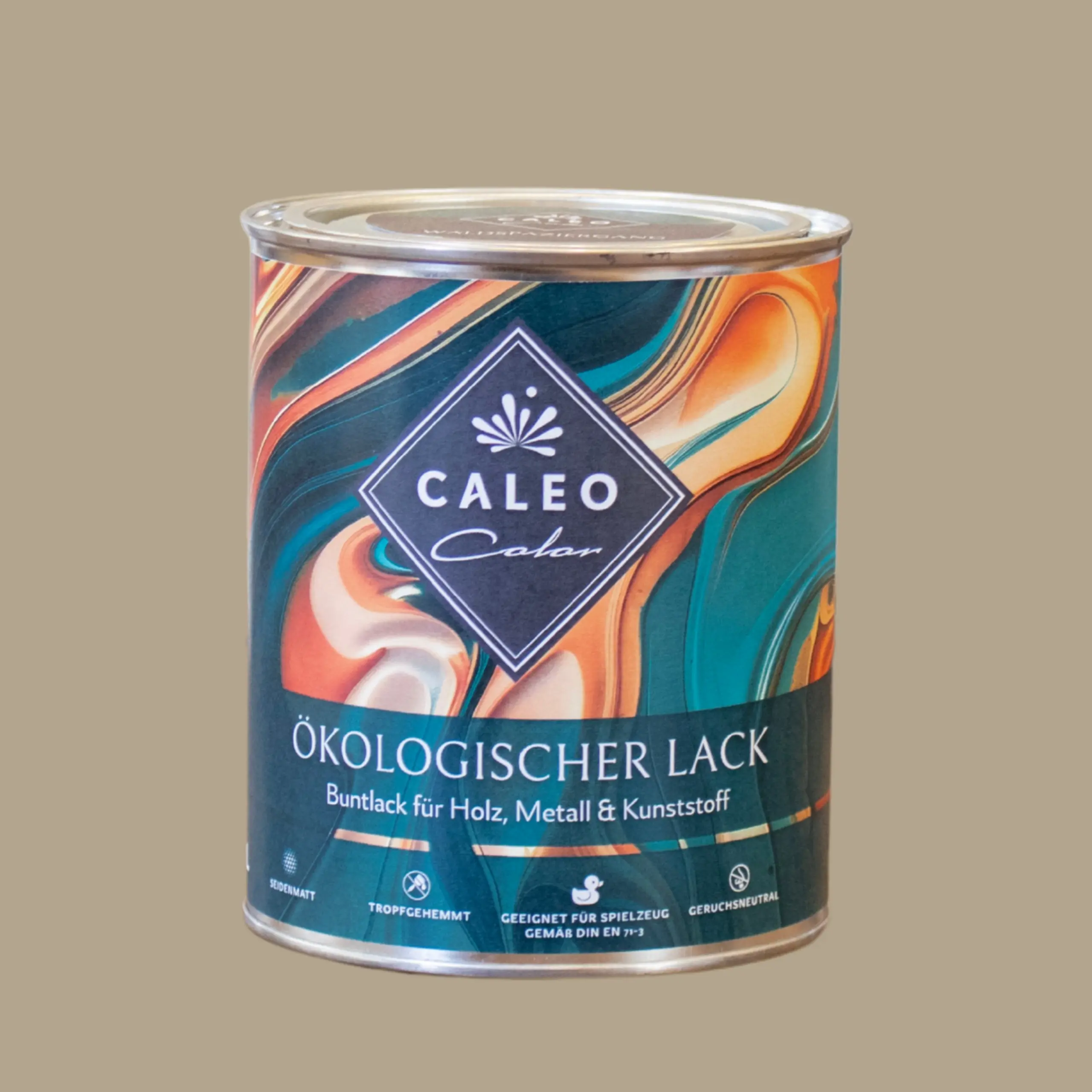 Mit dem ökologischen Lack in Graubeige von Caleo Color kannst du mit gutem Gewissen auch Dinge lackieren, die häufig berührt werden, denn die Bestandteile unserer Lacke sind speichelecht und spielzeugtauglich nach EN 71 Teil 3 (Sicherheit von Kinderspielzeugen). Unsere Lacke sind frei von chemischen Lösungsmitteln, basieren auf ungiftigen natürlichen Rohstoffen und setzen keine VOCs frei. Sie sind diffusionsoffen und antistatisch, was bedeutet, dass die Oberflächen diffusionsoffen bleiben und keinen Staub anziehen.