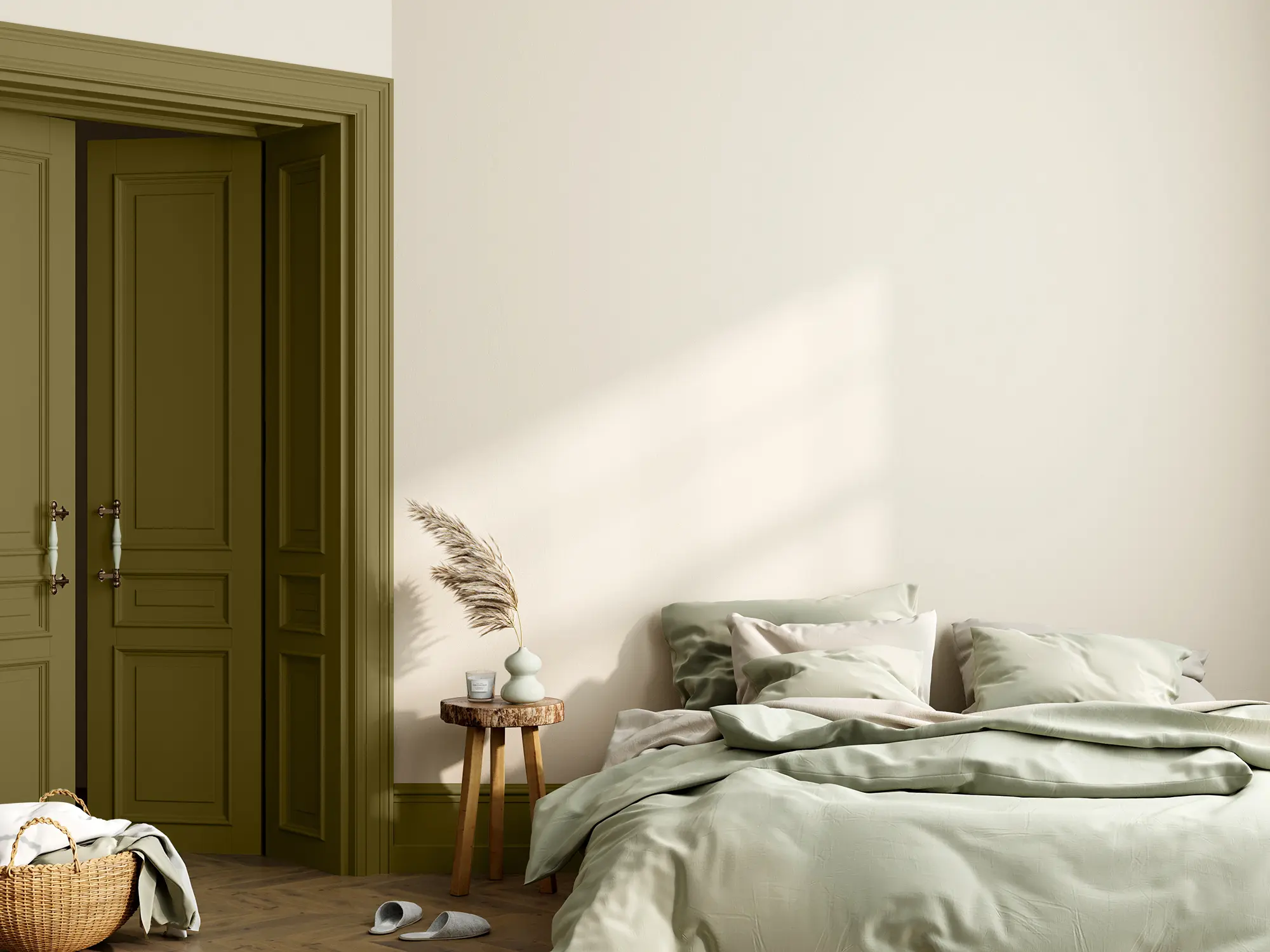 Der Lack „Pistazie“ ist ein Olivgrün, das besonders natürlich und erdend wirkt. Dieser Farbton passt wunderbar in Schlaf- und Wohnbereiche und harmoniert toll mit Holzmöbeln und Naturmaterialien. Nutze den olivgrünen Lack zum Beispiel, um tolle Akzente auf alten Holzmöbeln wie Kleiderschränke oder Kommoden zu setzen. Auch zum Auffrischen von kleinen Gegenständen wie Bilderrahmen oder Vasen eignet sich „Pistazie“ sehr schön.