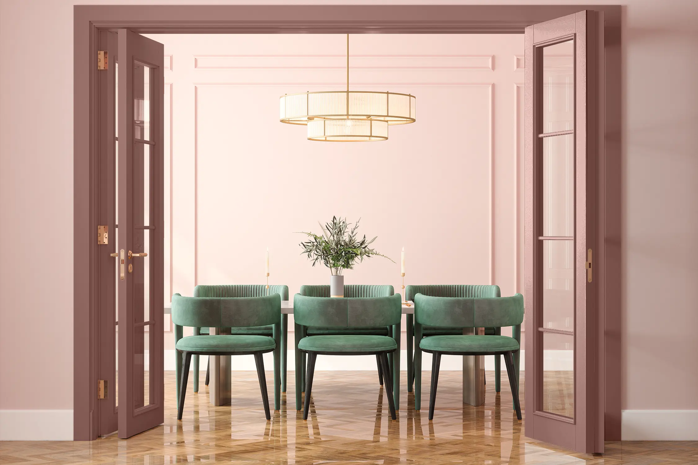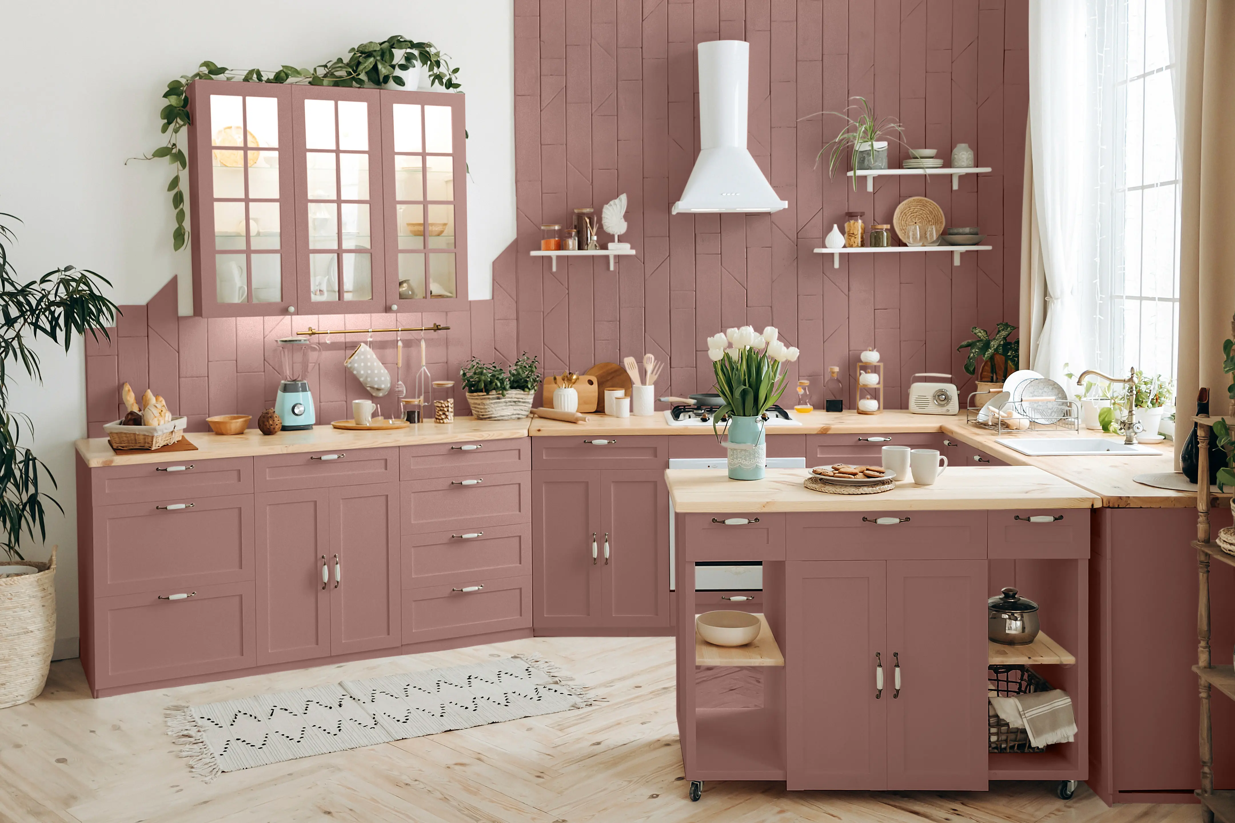 Das beste Ergebnis erhältst du, wenn du den altrosa Lack in zwei dünnen Schichten aufträgst. Eine Lackrolle mit Schaumstoffaufsatz oder ein weicher Pinsel sind ideal dafür, aber auch ein Auftrag mit einem Spritzgerät ist möglich.