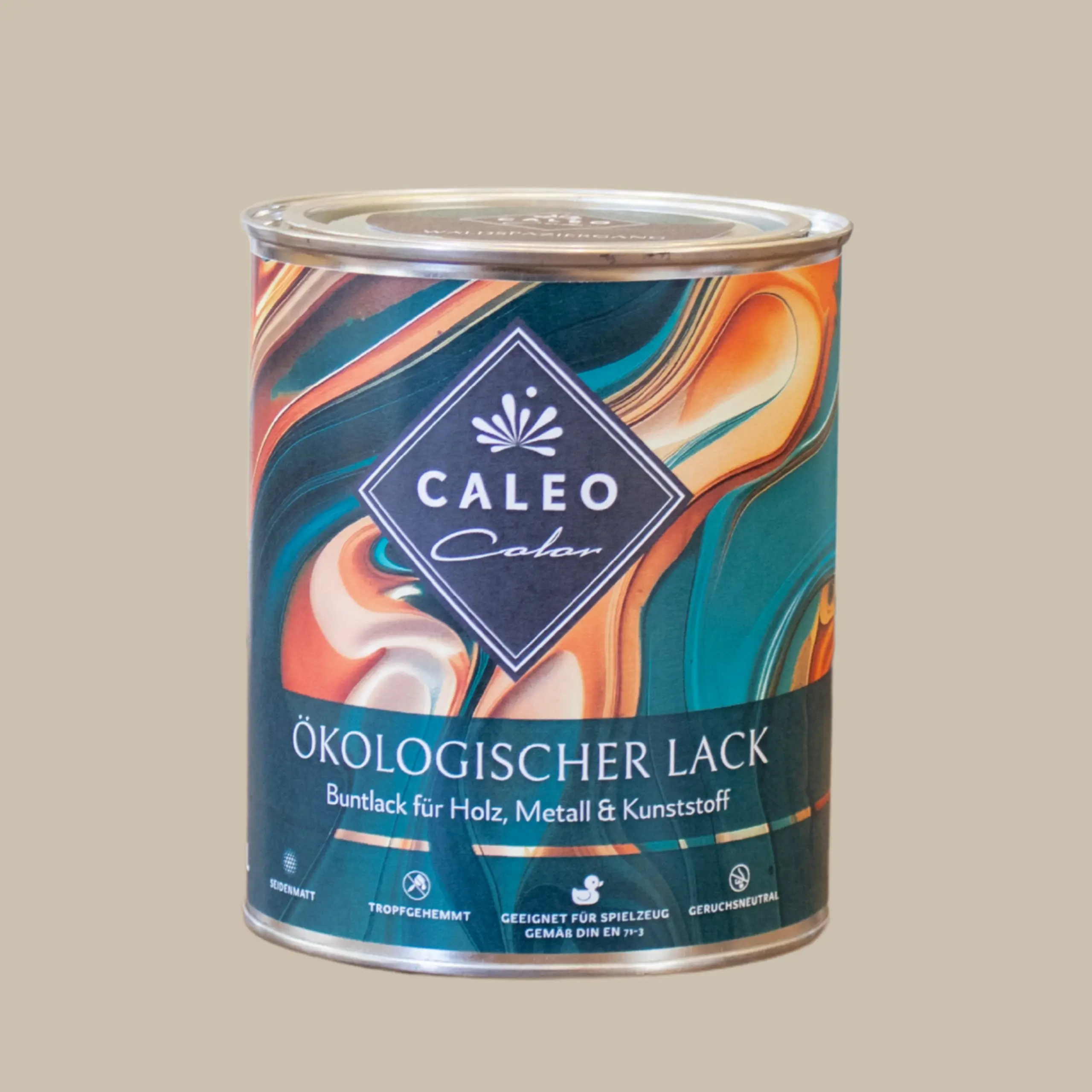 Mit dem ökologischen Lack in Graubeige von Caleo Color kannst du mit gutem Gewissen auch Dinge lackieren, die häufig berührt werden, denn die Bestandteile unserer Lacke sind speichelecht und spielzeugtauglich nach EN 71 Teil 3 (Sicherheit von Kinderspielzeugen). Unsere Lacke sind frei von chemischen Lösungsmitteln, basieren auf ungiftigen natürlichen Rohstoffen und setzen keine VOCs frei. Sie sind diffusionsoffen und antistatisch, was bedeutet, dass die Oberflächen diffusionsoffen bleiben und keinen Staub anziehen.