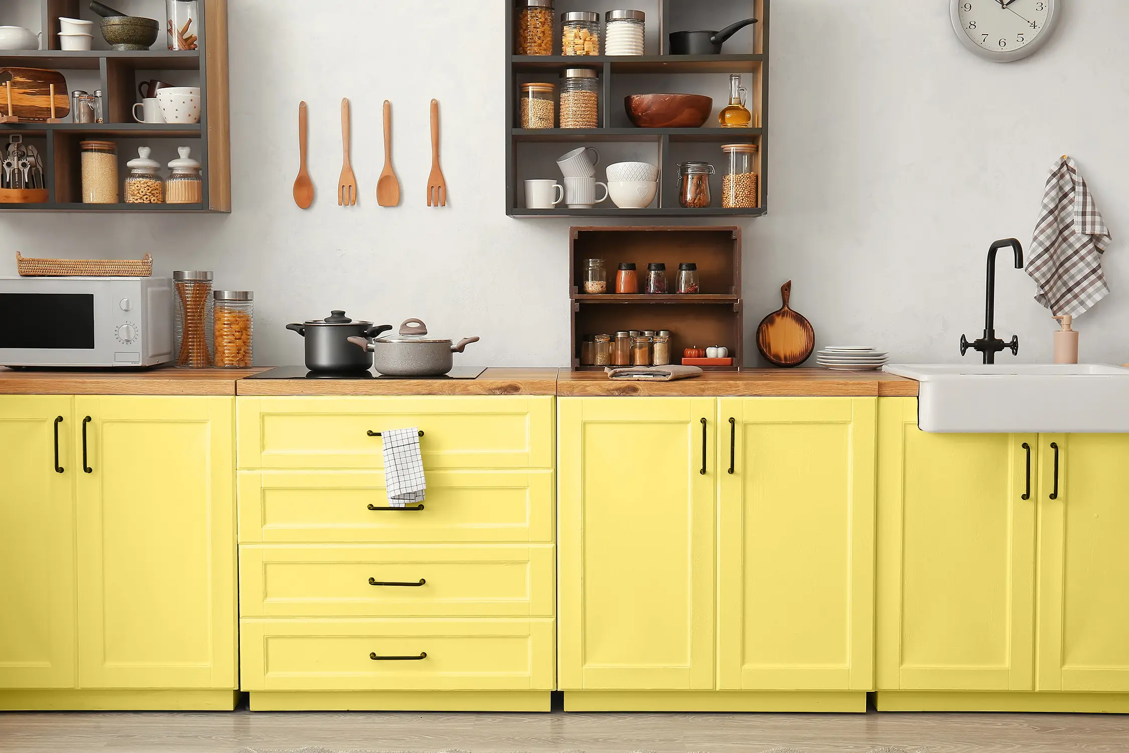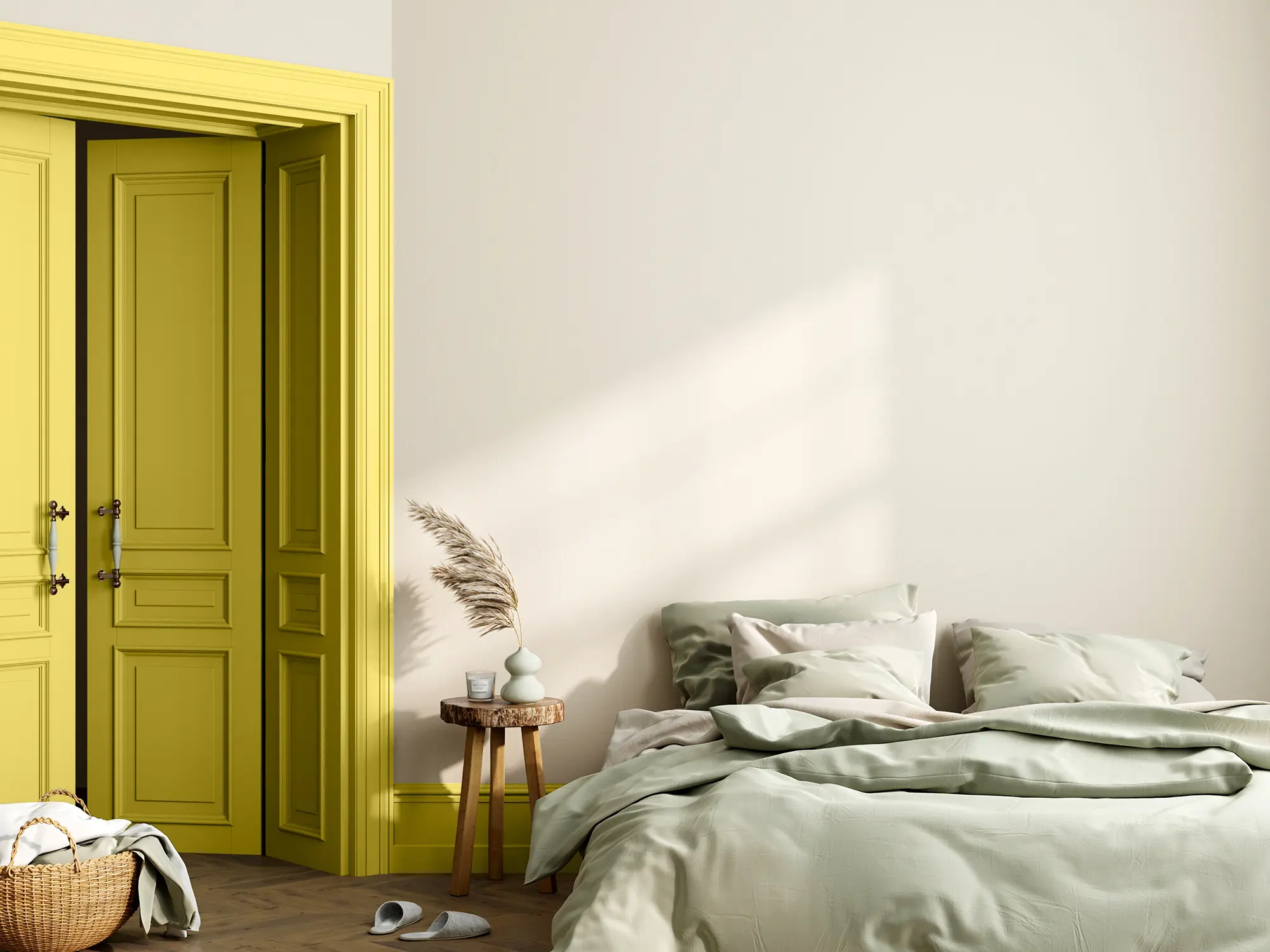 Caleo-Tipp: Hellgelber Lack wirkt in Kombination mit Holztönen besonders harmonisch und schafft eine warme, einladende Raumatmosphäre. Streiche ein besonderes Möbelstück mit dem "Sonnengruß" Lack und verwandle es so zum Blickfang! Die übrigen Möbelstücke bilden dank ihres natürlichen Holztons einen harmonischen Rahmen.