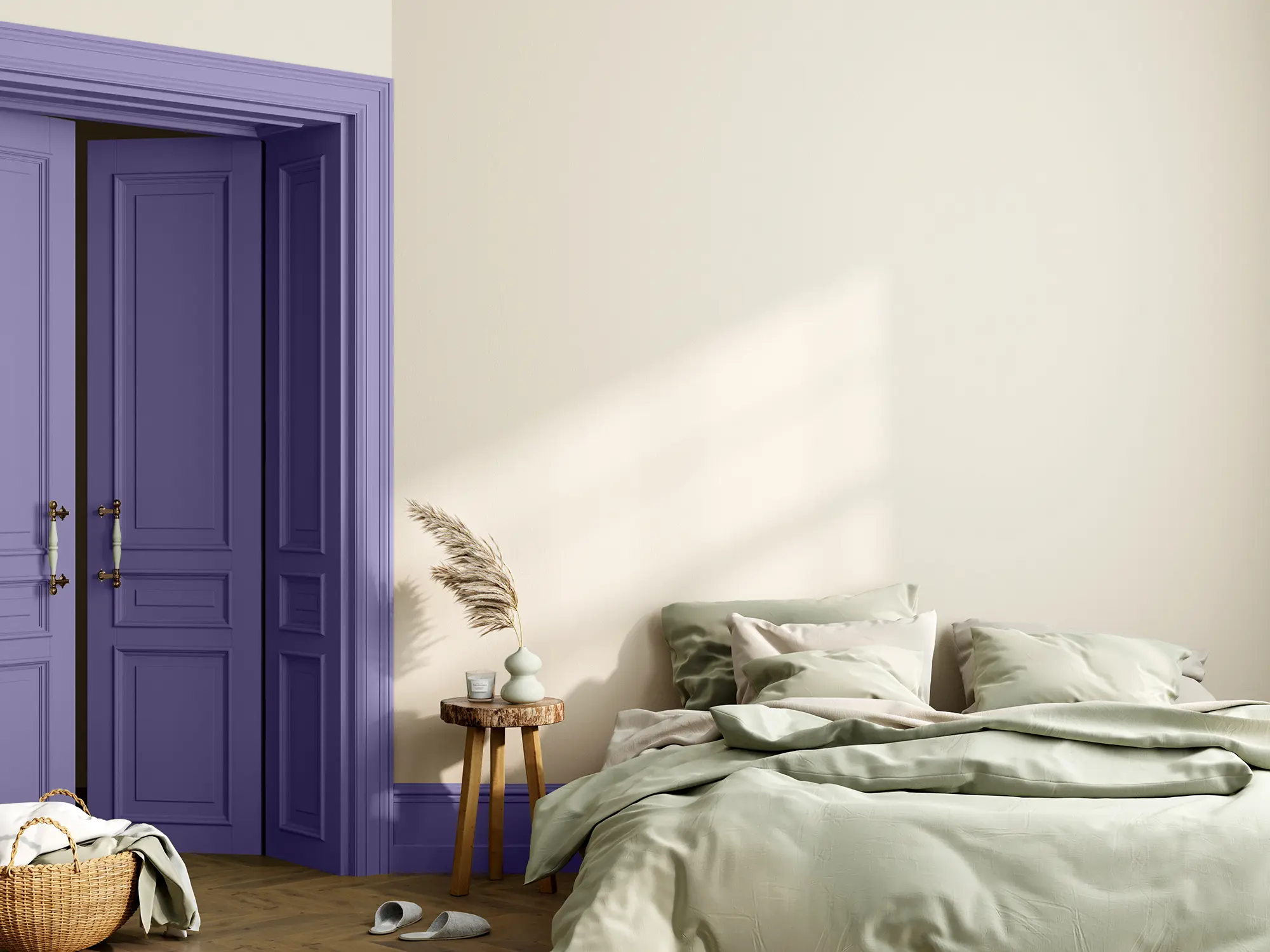 Caleo-Tipp: Die Intensität von Farben kann durch den Einsatz von Accessoires gedämpft werden. Streichst du zum Beispiel ein Möbelstück mit "Veilchenblüte" kannst du durch dezente Bettwäsche, Kissen oder Gardinen in neutralen Tönen einen harmonischen Ausgleich schaffen. Die intensive lila Farbe kommt so optimal zur Geltung.