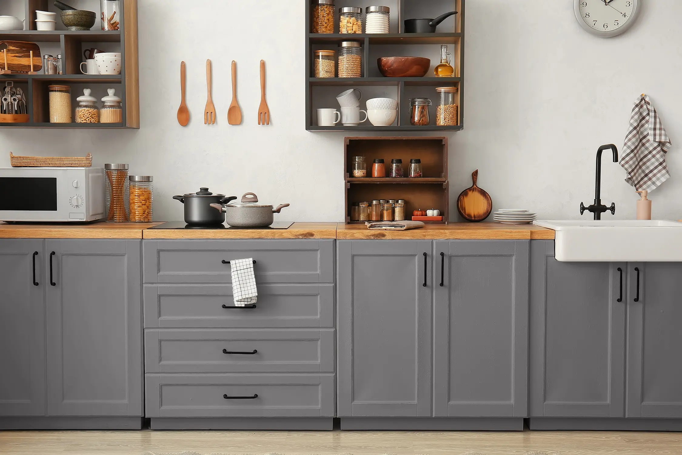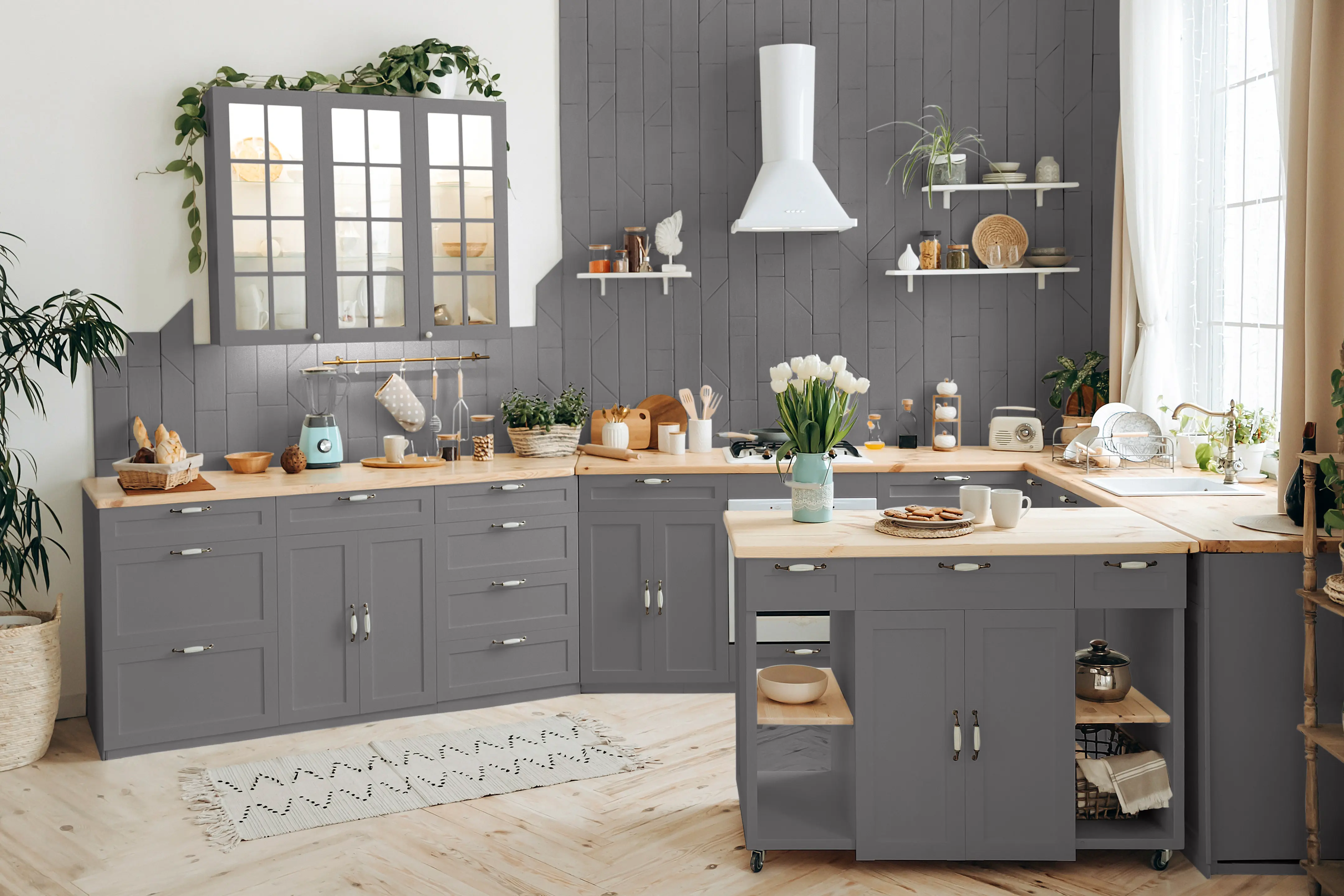 Das beste Ergebnis erhältst du, wenn du den mittelgrauen Lack in zwei dünnen Schichten aufträgst. Eine Lackrolle mit Schaumstoffaufsatz oder ein weicher Pinsel sind ideal dafür, aber auch ein Auftrag mit einem Spritzgerät ist möglich.