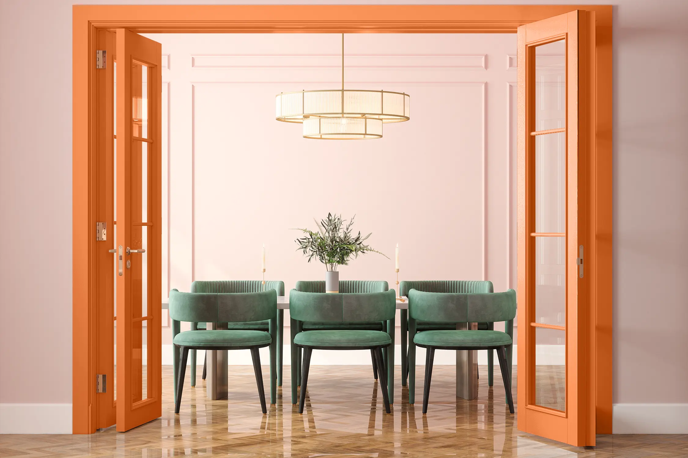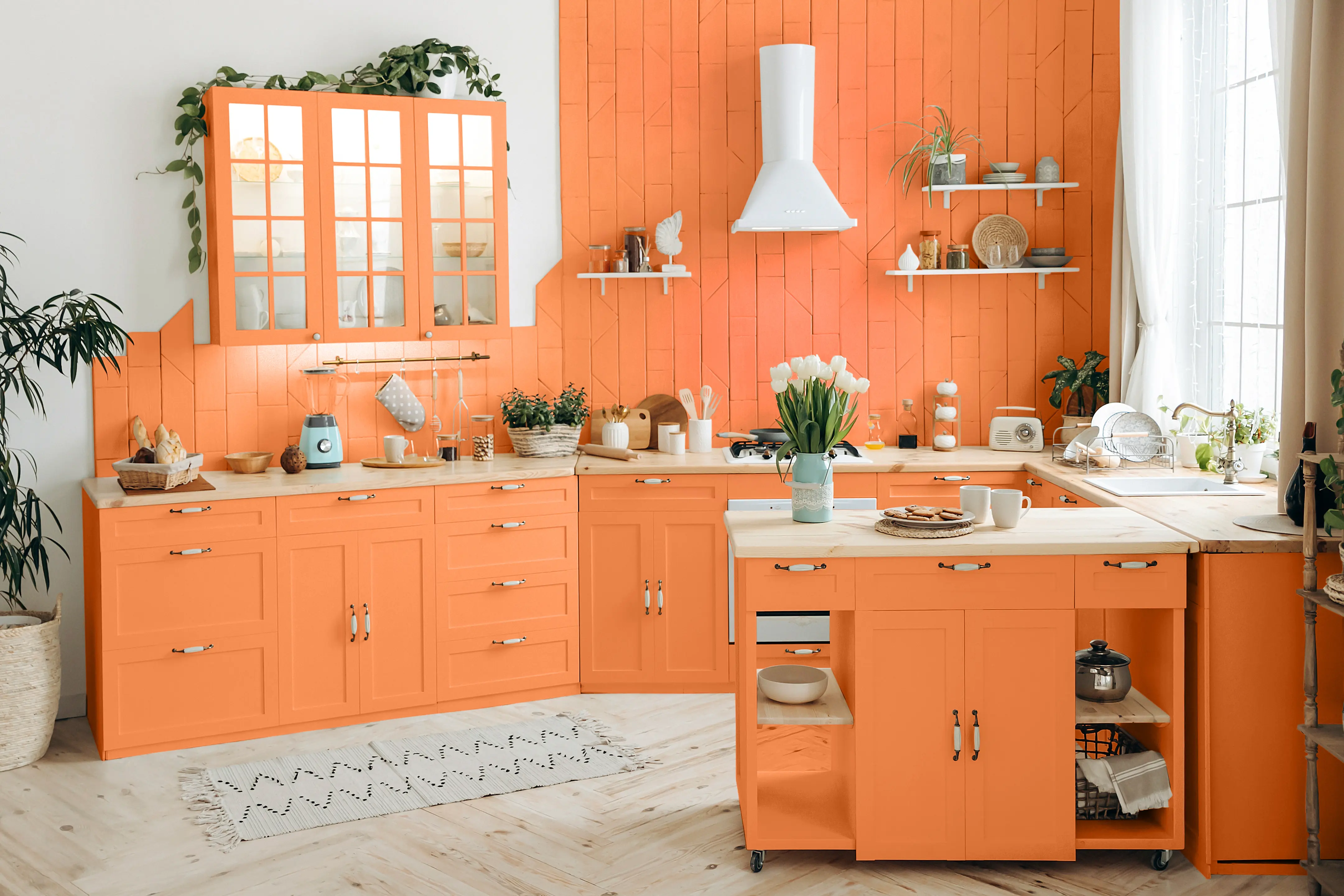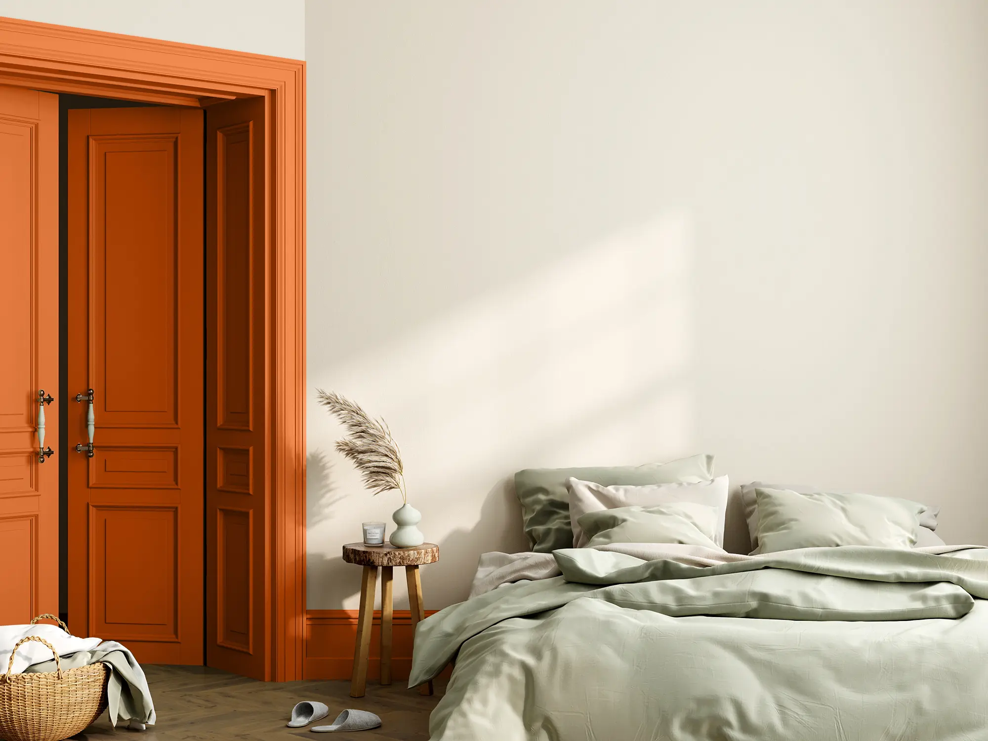 Caleo-Tipp: Der kräftige dunkelorangene Lack "Wüstenfuchs" wirkt in Kombination mit dezent gehaltenen Wänden und Möbeln besonders gut. So kommt dem satten Orangeton die gebührende Aufmerksamkeit zu. Achte bei der Kombination mit anderen Farben bei einem so kräftigen Ton wie diesem darauf, dass die Farben gut miteinander harmonieren. Weiter unten findest du Tipps und Anregungen dafür.