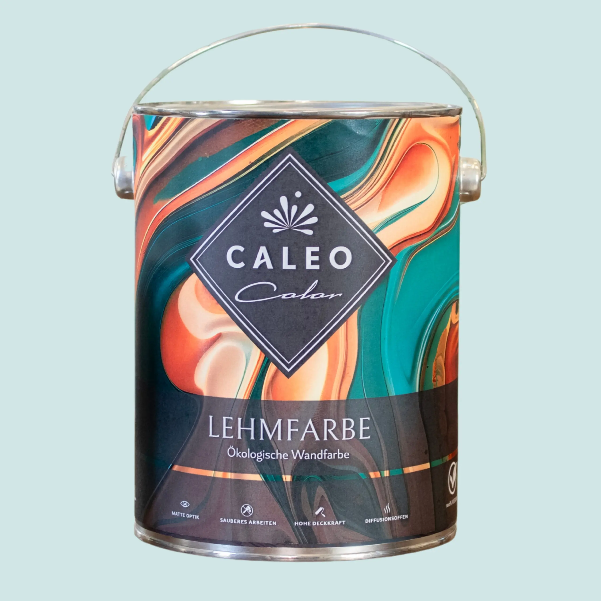 Die hellblaue Wandfarbe "Eisblume" von Caleo Color ist eine natürliche Lehmfarbe mit vielen positiven Eigenschaften. Mit ihr gestaltest du den Raum optisch ansprechend und unterstützt dabei sogar noch ein angenehmes Raumklima. Gegenüber konventionellen Wandfarben mit Kunststoffanteilen besitzt die streichfertige Lehmfarbe eine Reihe positiver Eigenschaften. In Verbindung mit einem atmungsaktiven Untergrund wie Lehmputz kann die Caleo Color-Lehmfarbe feuchteregulierend wirken und das Raumklima positiv beeinflussen. Zudem binden die enthaltenen Tonmehle schlechte Gerüche und neutralisieren diese. Außerdem verzichten wir in unseren Lehmfarben auf chemische Lösemittel und Weichmacher.