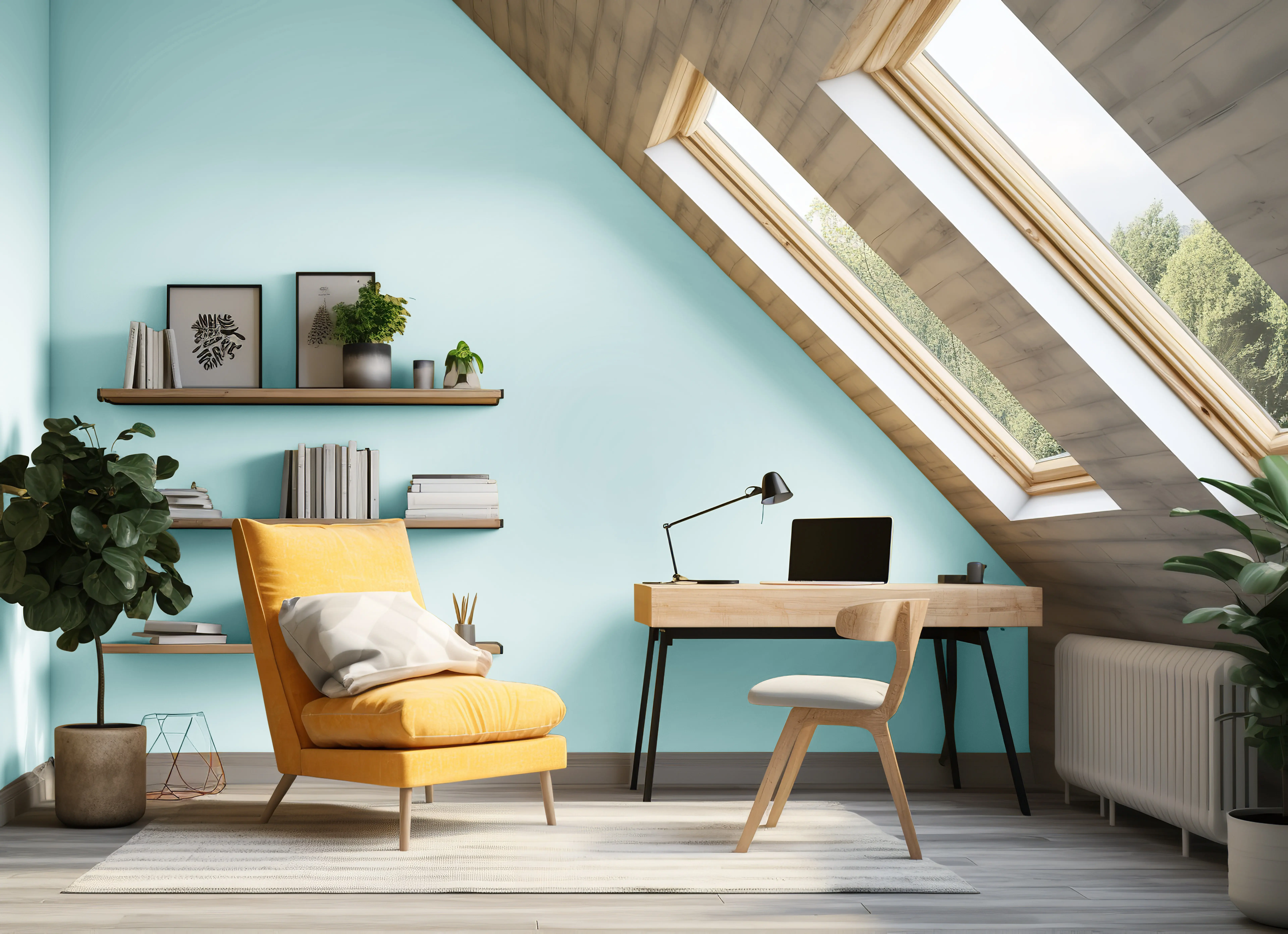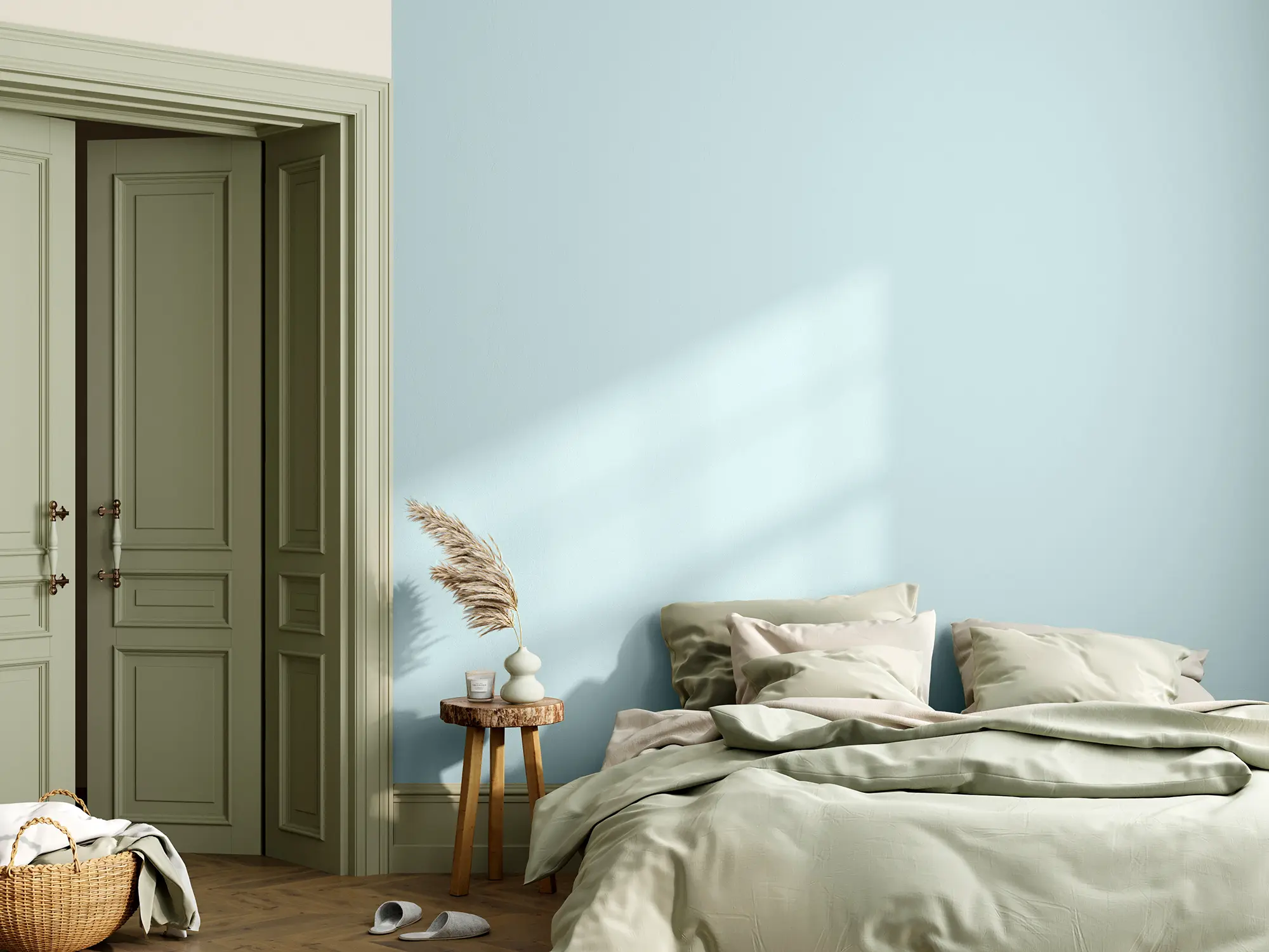 Caleo-Tipp: In Kombination mit dunkleren Farbtönen wird "Eisblume" zum echten Hingucker und schafft eine spannende Farbgestaltung im Raum.