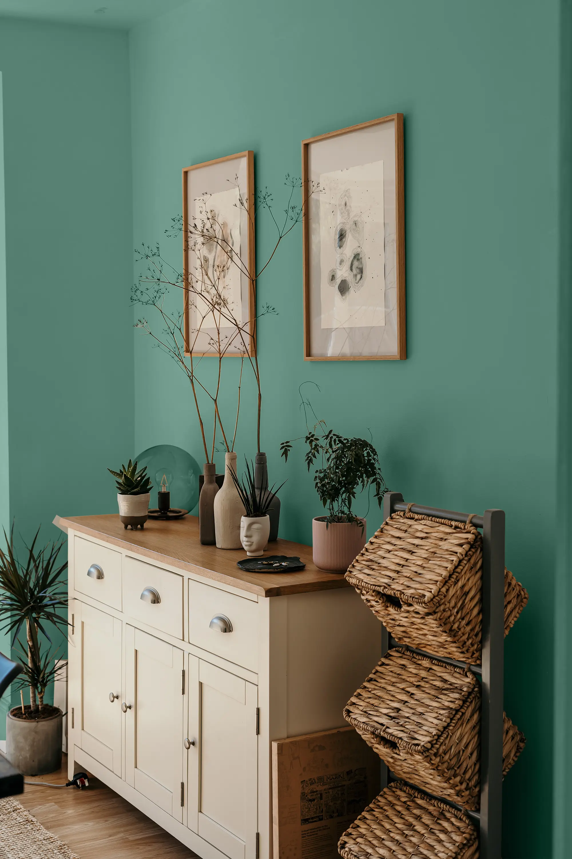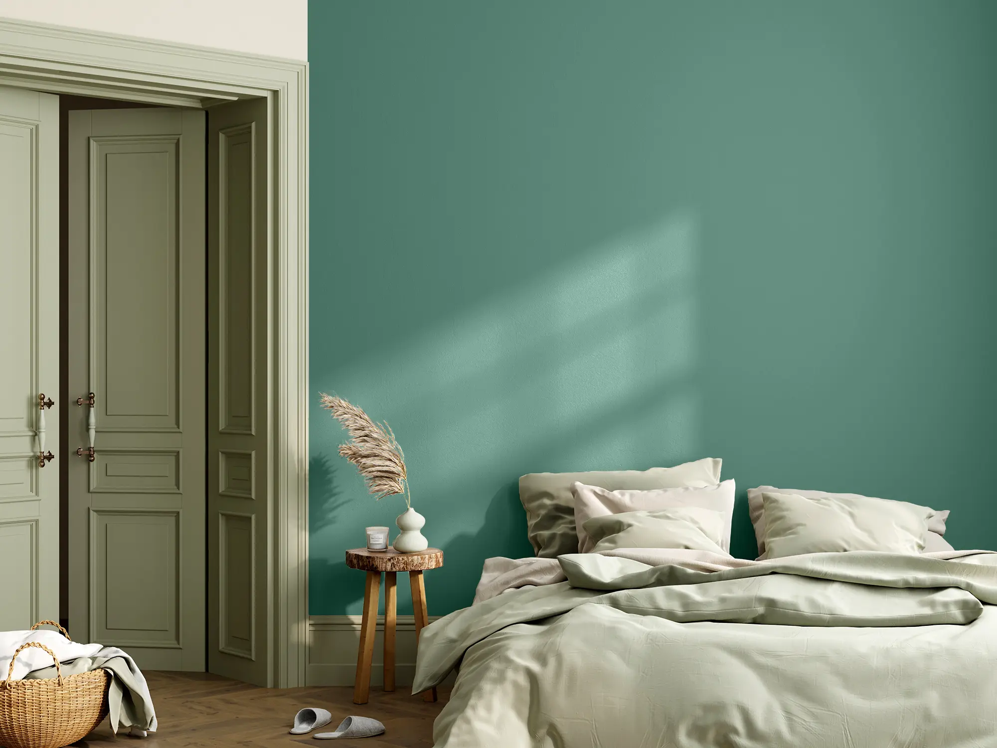 Die Lehmfarbe "Elbling" in Dunkelgrün bringt die mystische Atmosphäre eines dichten Waldes direkt in deine vier Wände. Mit seinem leicht kühlen Unterton strahlt das kräftige Dunkelgrün eine ausgleichende und dennoch spannende Stimmung aus. Ist dein Raum lichtdurchflutet, kannst du "Elbling" großflächig auf mehreren Wänden verstreichen. Für kleine oder eher dunkle Räume bietet sich der gezielte Einsatz in einzelnen Bereichen oder die Kombination mit einer helleren Wandfarbe an.