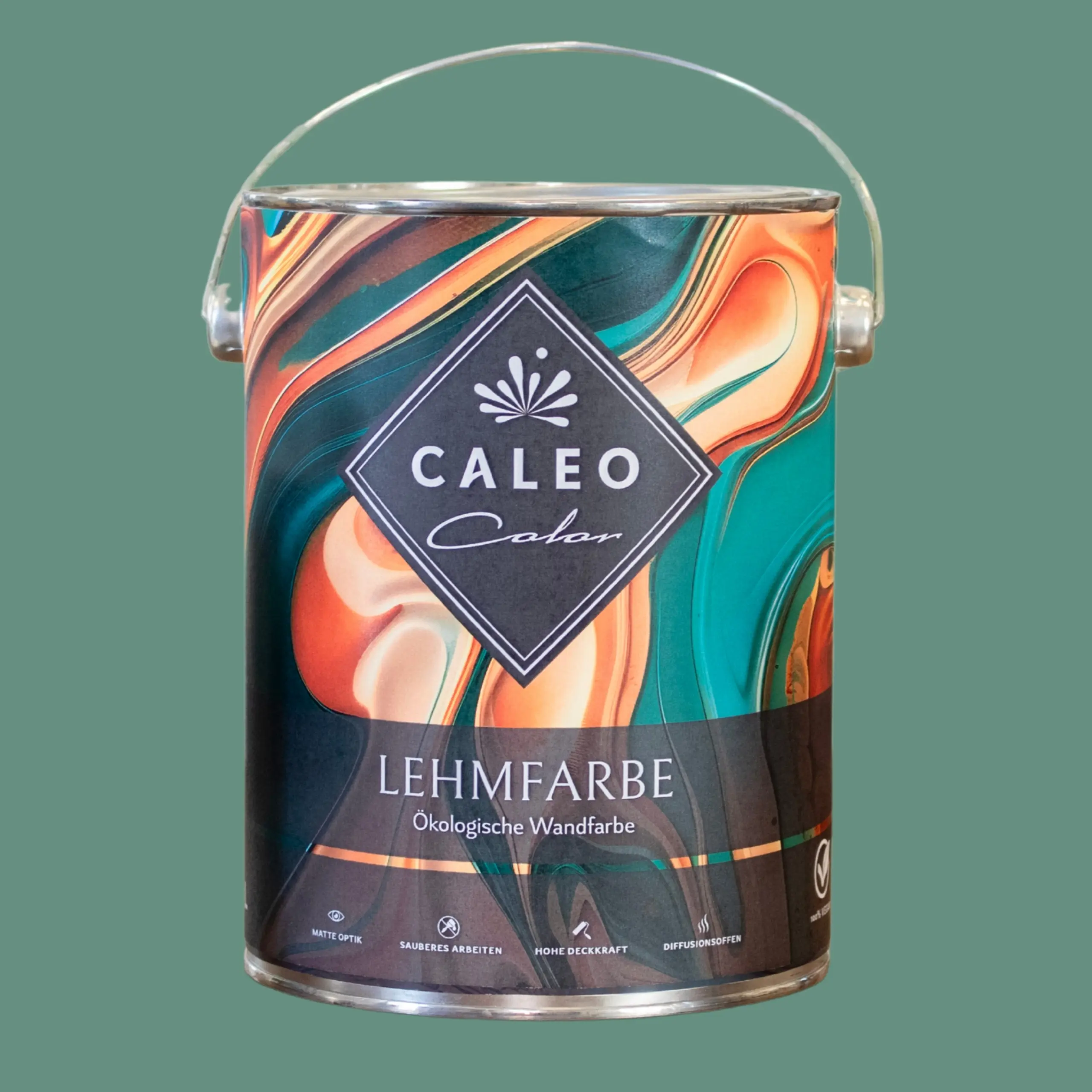 Die dunkelgrüne Wandfarbe "Elbling" von Caleo Color ist eine natürliche Lehmfarbe mit vielen positiven Eigenschaften. Mit ihr gestaltest du den Raum optisch ansprechend und unterstützt dabei sogar noch ein angenehmes Raumklima. Gegenüber konventionellen Wandfarben mit Kunststoffanteilen besitzt die streichfertige Lehmfarbe eine Reihe positiver Eigenschaften. In Verbindung mit einem atmungsaktiven Untergrund wie Lehmputz kann die Caleo Color-Lehmfarbe feuchteregulierend wirken und das Raumklima positiv beeinflussen. Zudem binden die enthaltenen Tonmehle schlechte Gerüche und neutralisieren diese. Außerdem verzichten wir in unseren Lehmfarben auf chemische Lösemittel und Weichmacher.