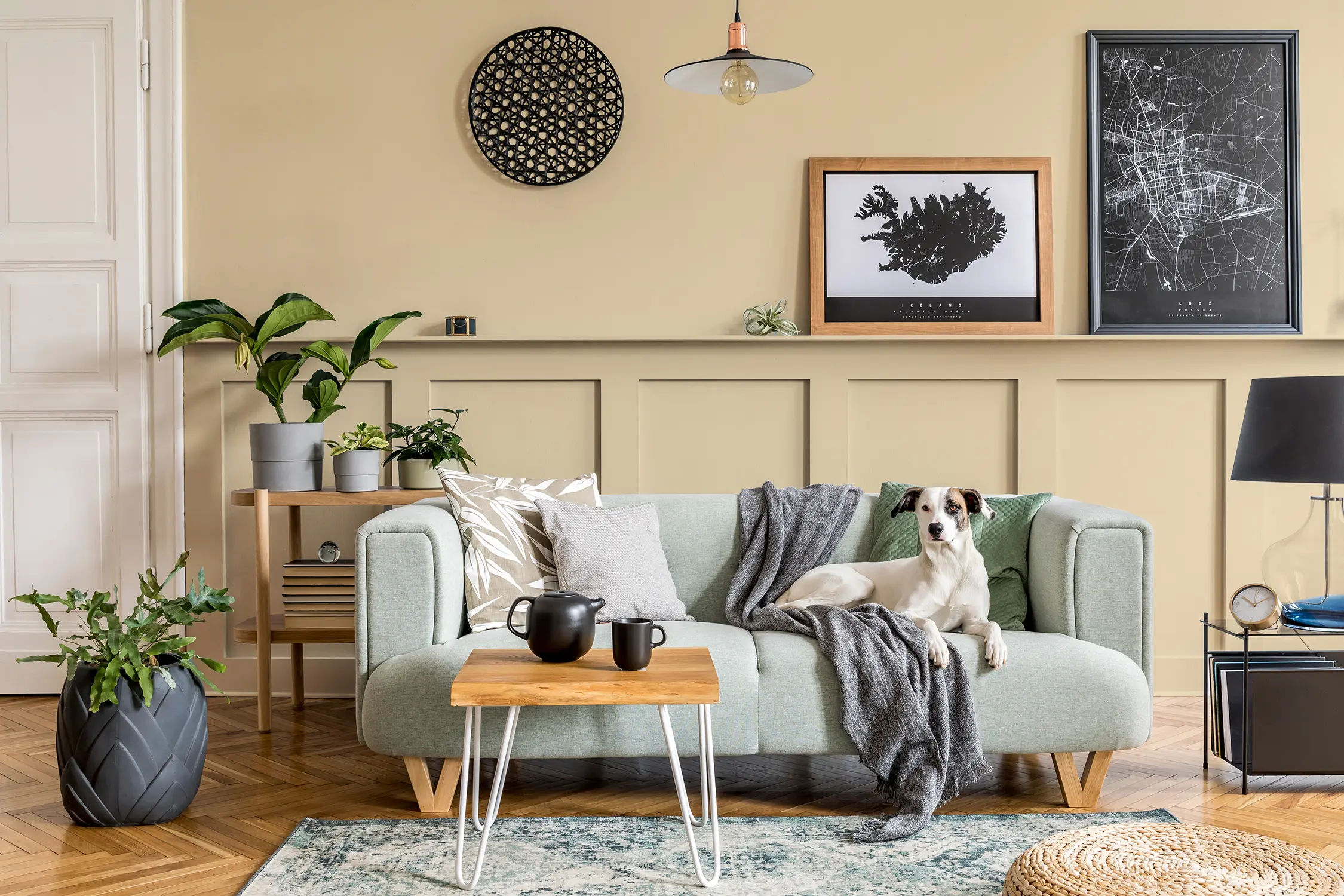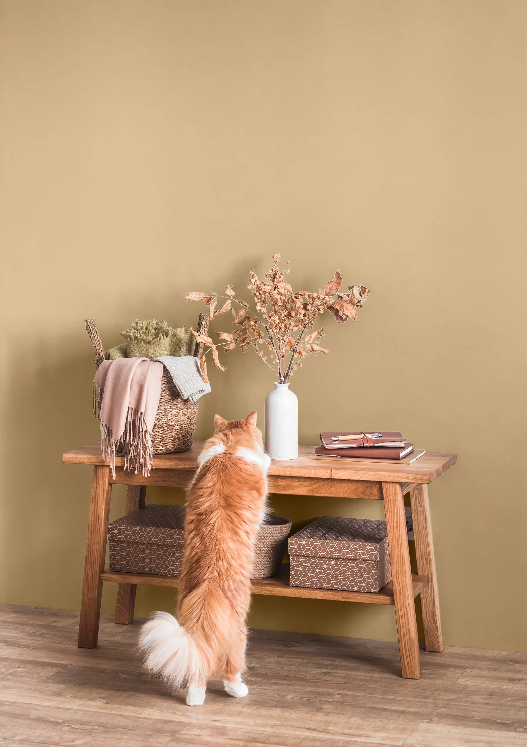 Caleo-Tipp: Natürliche Brauntöne wie das Ocker "Elbsandstein" wirken zusammen mit einer natürlichen Einrichtung aus Holzmöbeln und Dekoelementen aus Naturmaterialien besonders stimmig.