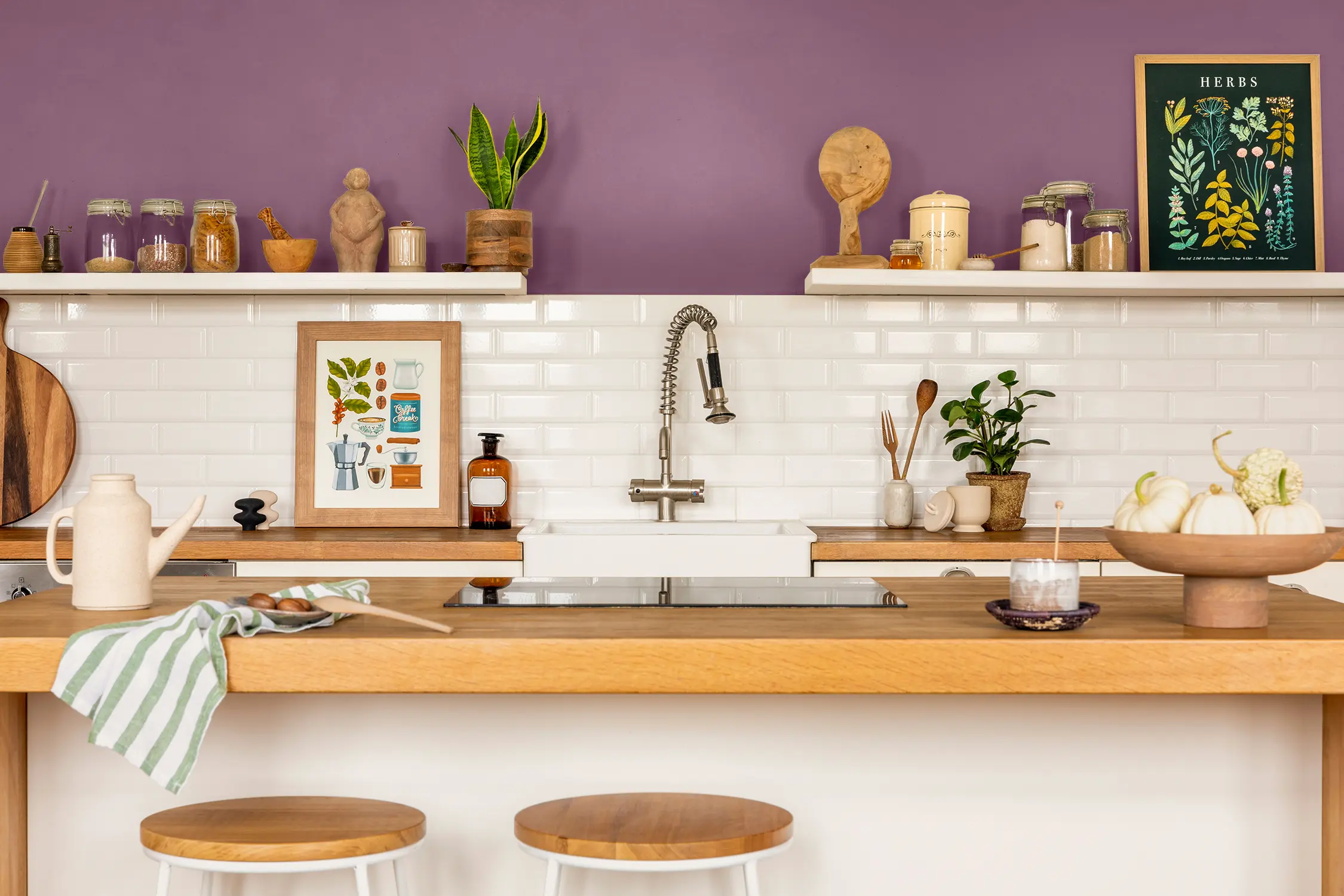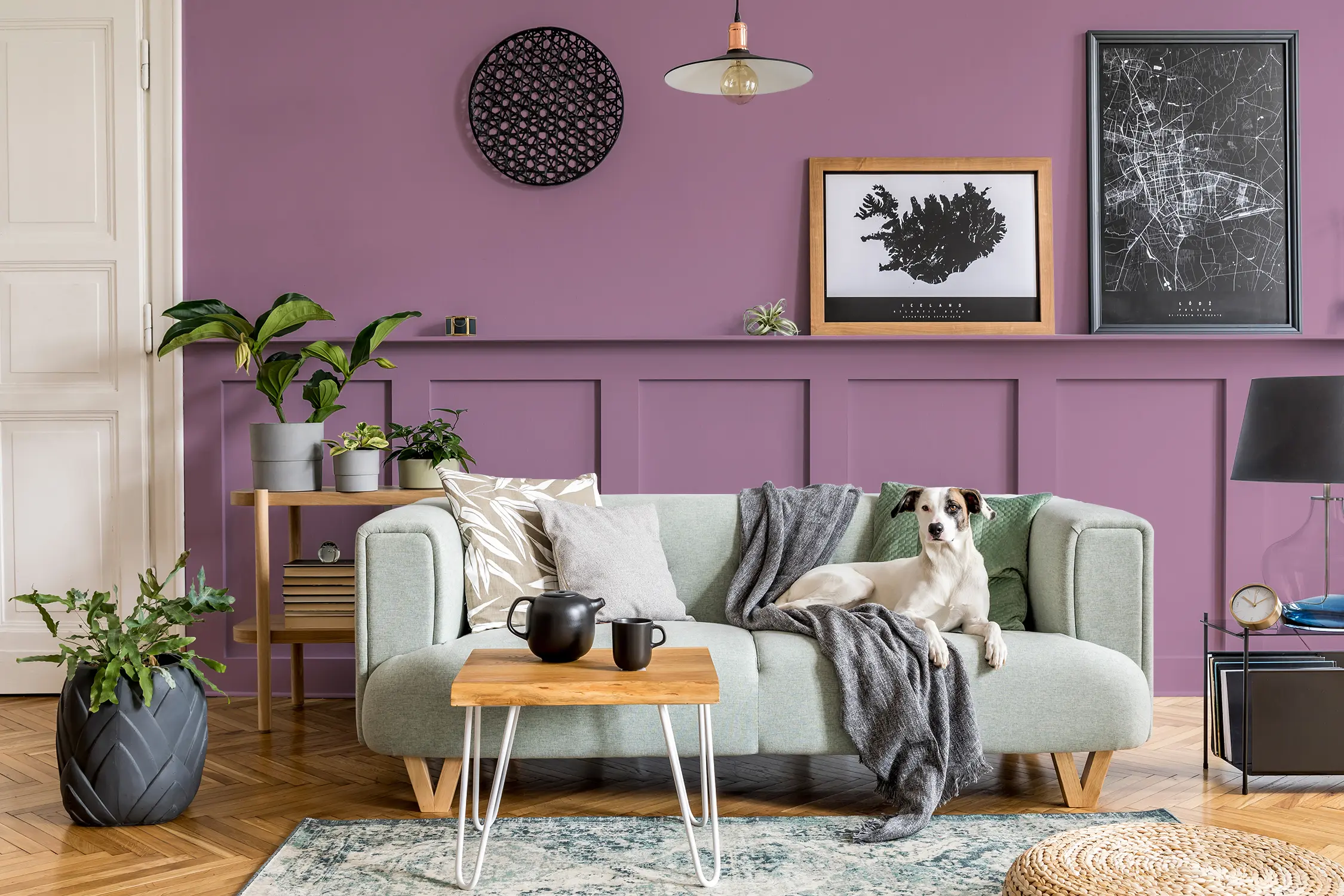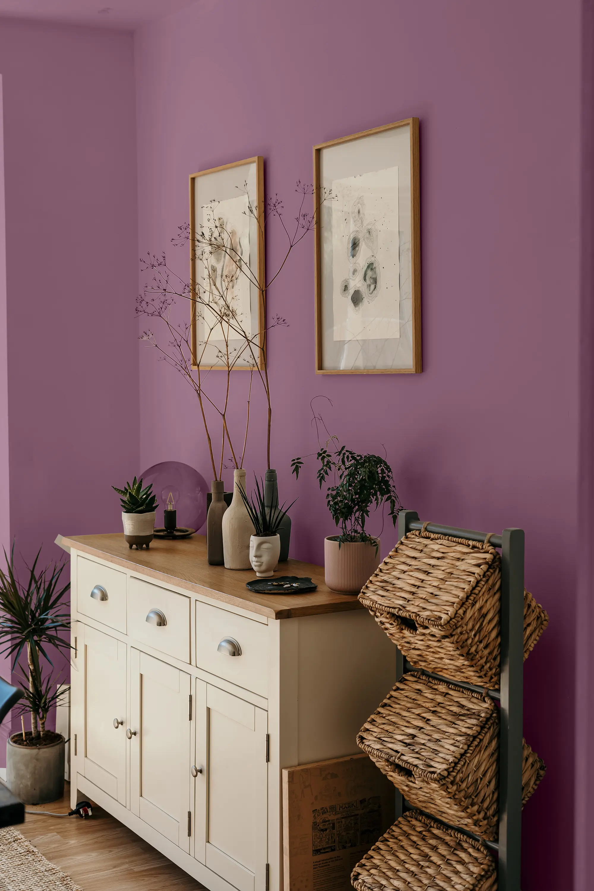 Tiefe Farbtöne wie das Rotlila „Heidekraut“ lassen sich hervorragend mit Akzenten in Gold oder Silber kombinieren, um eine aufregende Wand- oder auch Raumgestaltung zu schaffen. Nutze beispielsweise unseren „Wandzauber“ in Kombination mit dem goldenen „Sternenglitzer“ oder dem silbernen „Feenglitzer“, um deiner Wand in Rotlila einen aufregenden Schimmer zu verleihen.