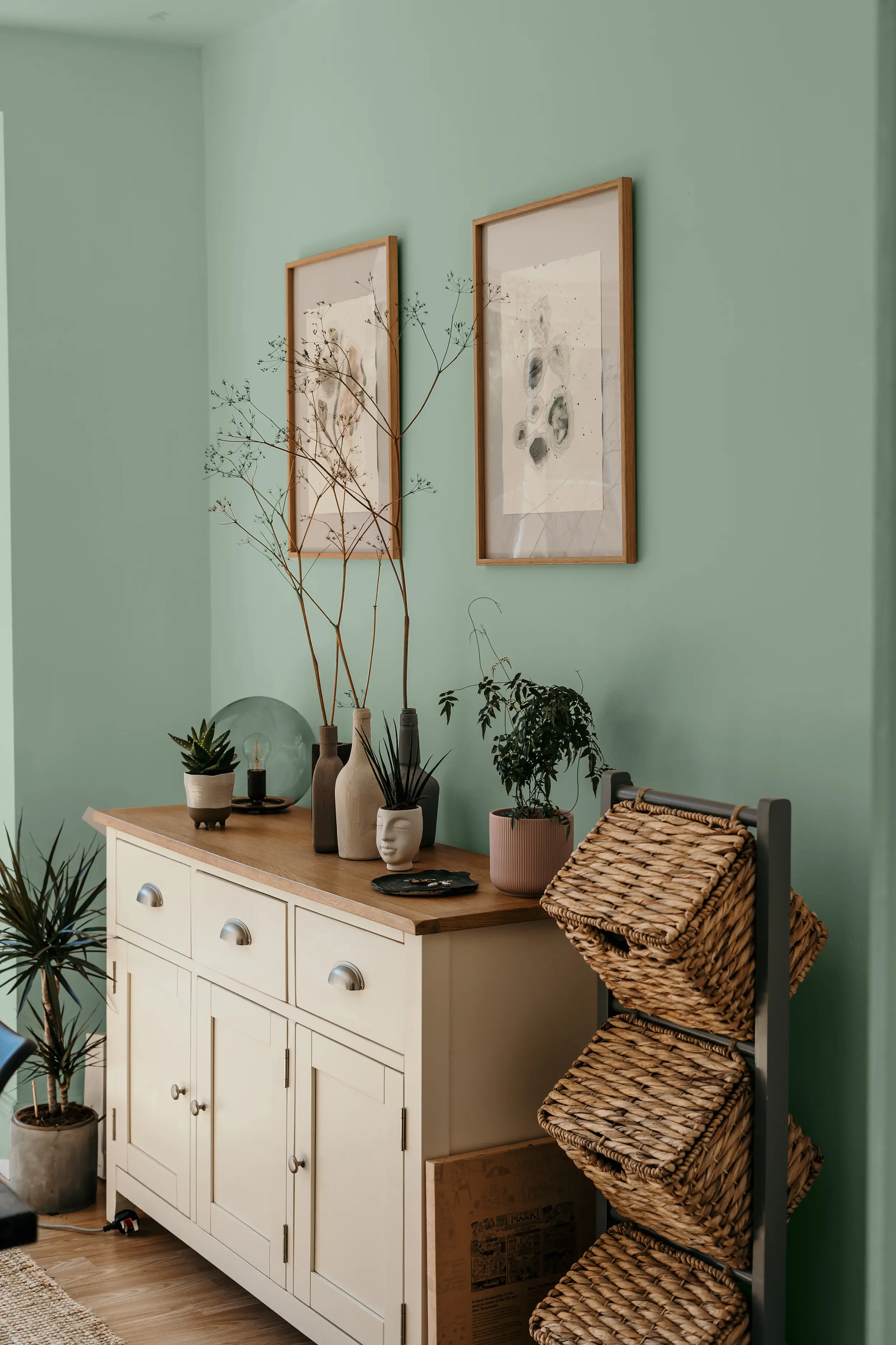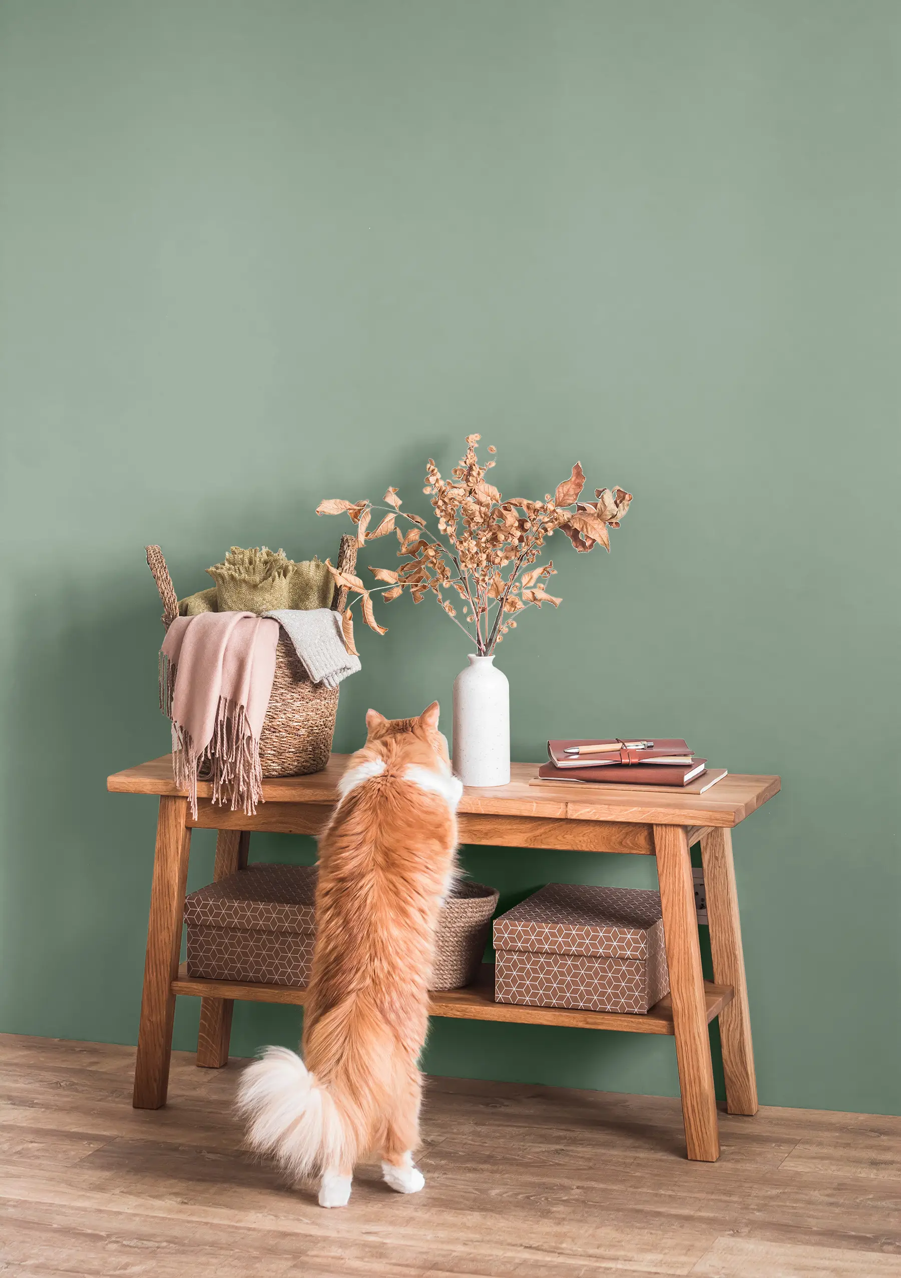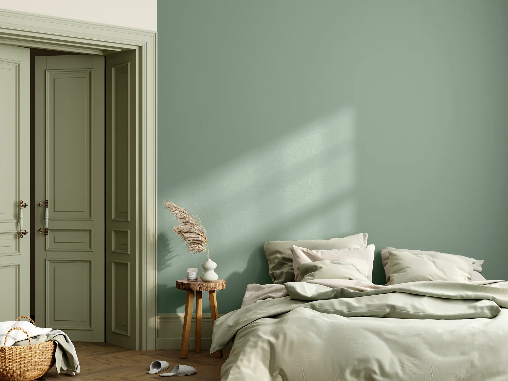 Caleo-Tipp: Grüntöne schaffen eine wunderbar natürliche Atmosphäre im Raum. Kombiniere sie mit hellen Holzmöbeln, um die naturnahe Farbwirkung noch zu unterstreichen.