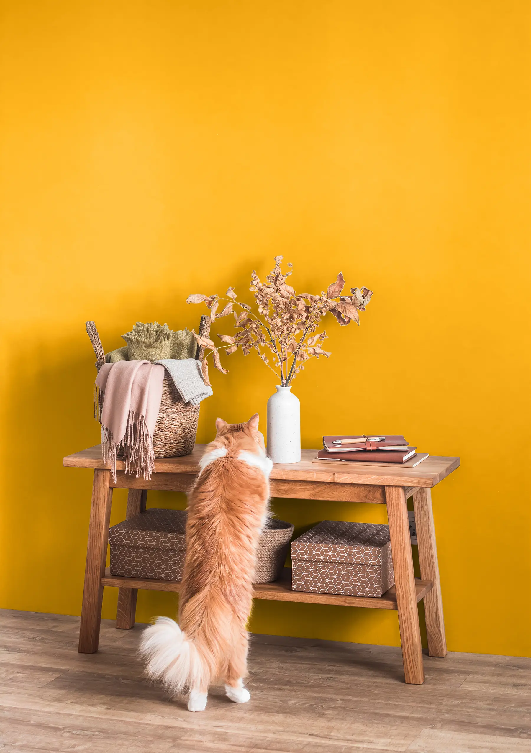 Caleo-Tipp: Orangetöne sind fröhlich und aufgeweckt und spiegeln Lebhaftigkeit wider. Auf großen Flächen kann ein solch intensiver Farbton jedoch schnell aufdringlich wirken. Setze ihn also dosiert ein und kombiniere ihn mit dezenten, ausgleichenden Farbtönen.