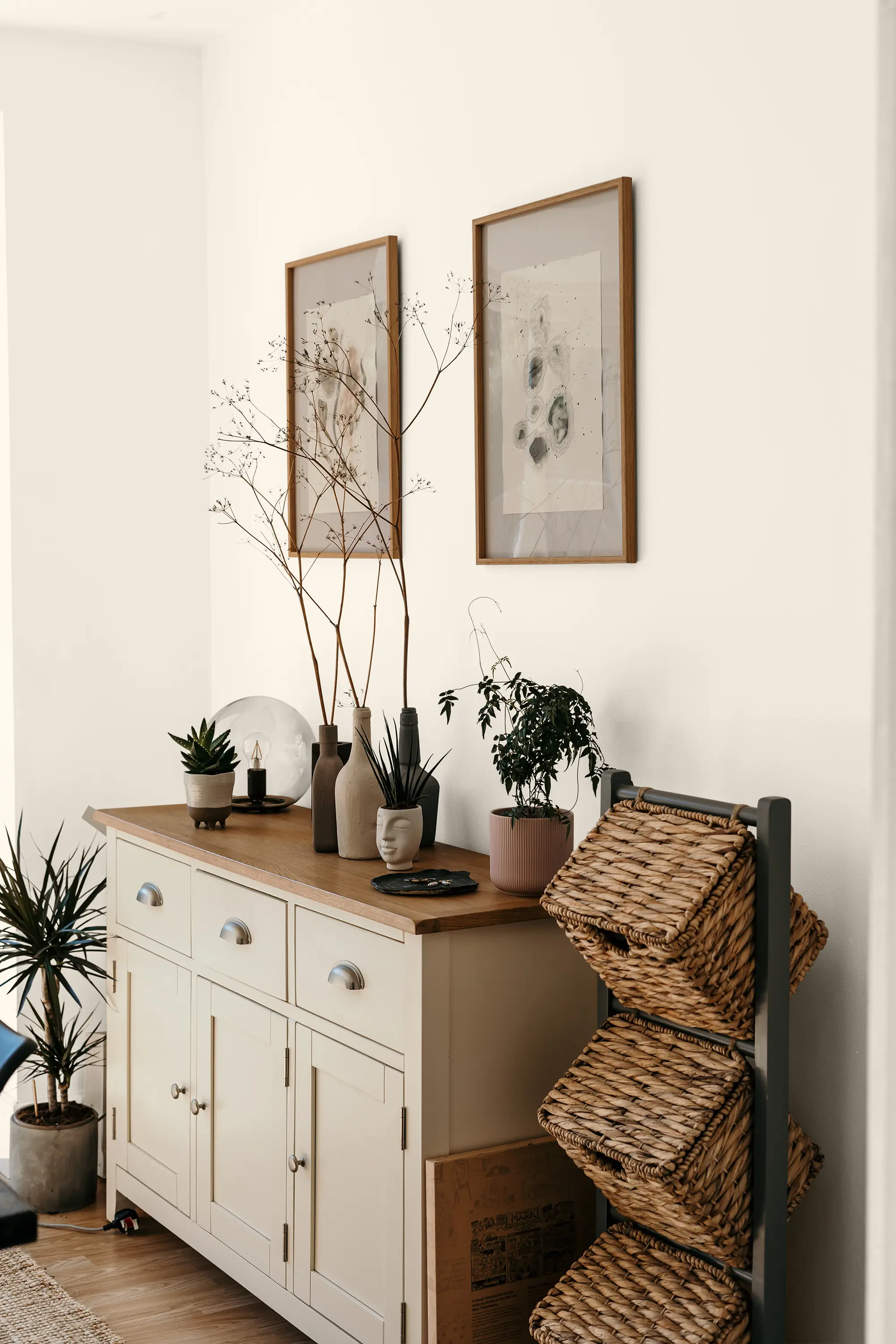Die Lehmfarbe "Lammwolle" in Beige schafft mit ihrer warmen Note eine dezente und heimische Atmosphäre. Das Beige eignet sich hervorragend als Grundfarbton, der großflächig aufgetragen werden kann. Du kannst "Lammwolle" mit farbintensiveren Elementen auflockern, sei es durch bunte Dekorationen oder durch weitere Wandfarben. Klare Kontraste mit einer oder zwei weiteren Farben lassen den Raum belebt und wohnlich wirken.
