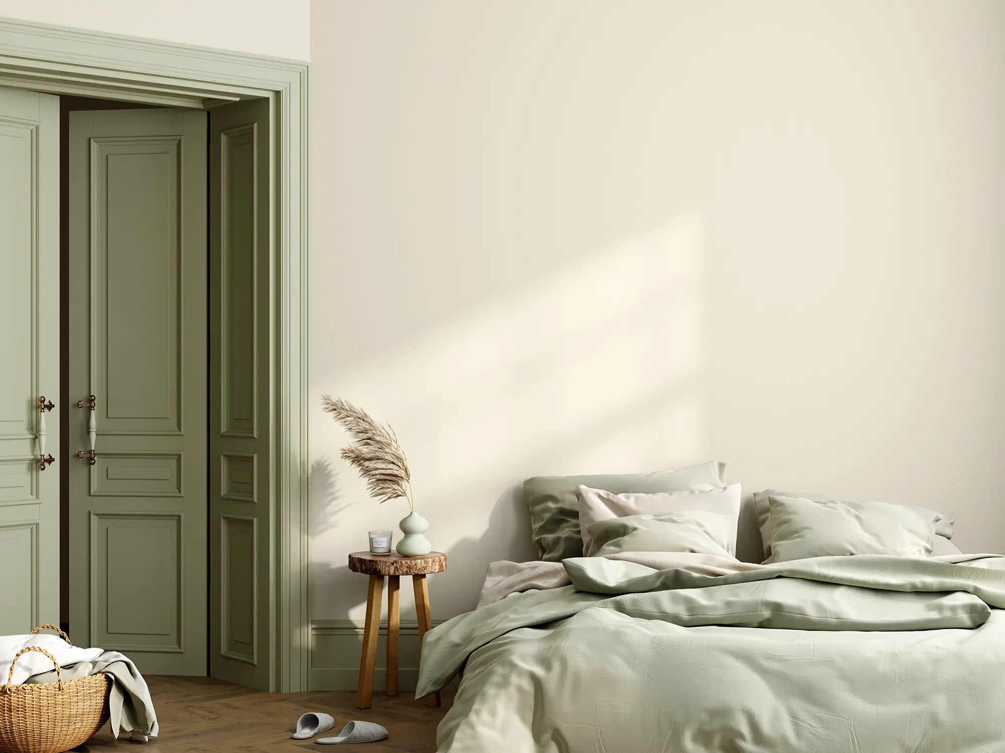 Caleo-Tipp: Helle Beige-Töne wie "Muschelherz" halten die Farbstimmung eines Raumes in der Balance und bieten ein optimales Gegengewicht zu kräftigeren Farbakzenten. Auch zum Aufhellen von eher dunklen, kleinen Räumen eignet sich der freundliche Cremeton optimal.