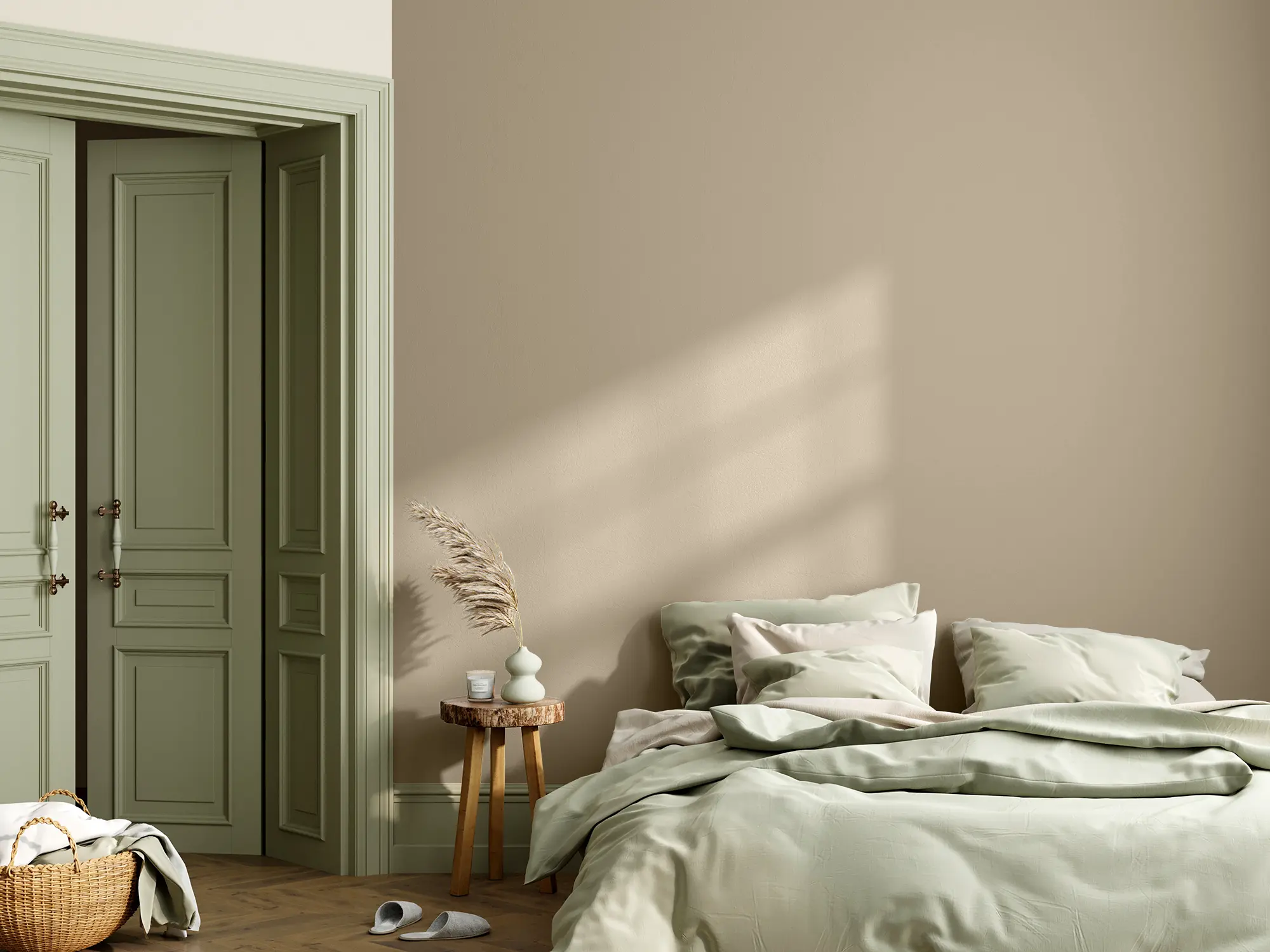 Caleo-Tipp: Beachte bei deiner Farbwahl, dass Farbtöne je nach Lichteinfall sehr unterschiedlich wirken können. Sanfte, helle Töne können in direktem Lichteinfall fast weiß aussehen, während sie an der "Schattenseite" des Raumes – meist an der Fensterseite – deutlich dunkler wirken. Kräftigere Farben kannst du dagegen etwas auffangen, indem du sie an die Wand gegenüber des bzw. der Fenster verstreichst, wo sie durch den direkten Lichteinfall etwas heller wirken.