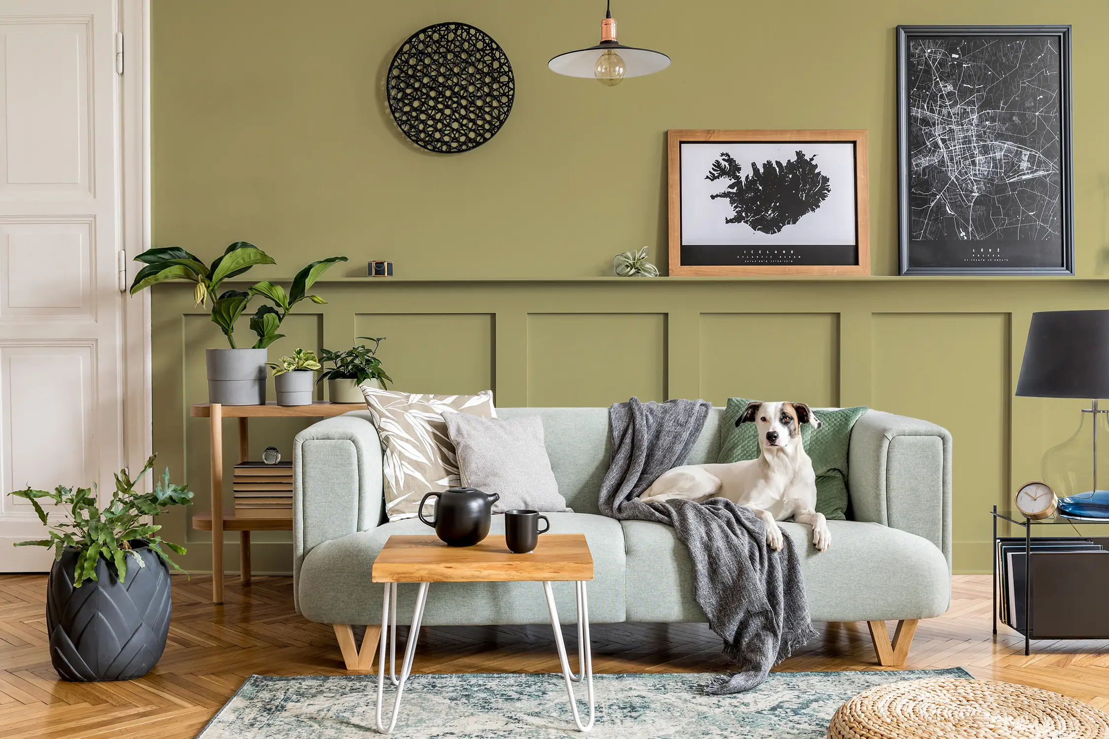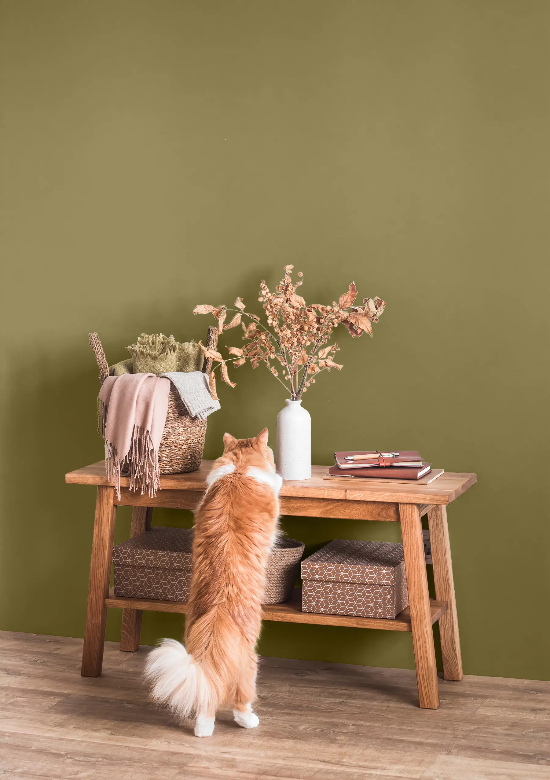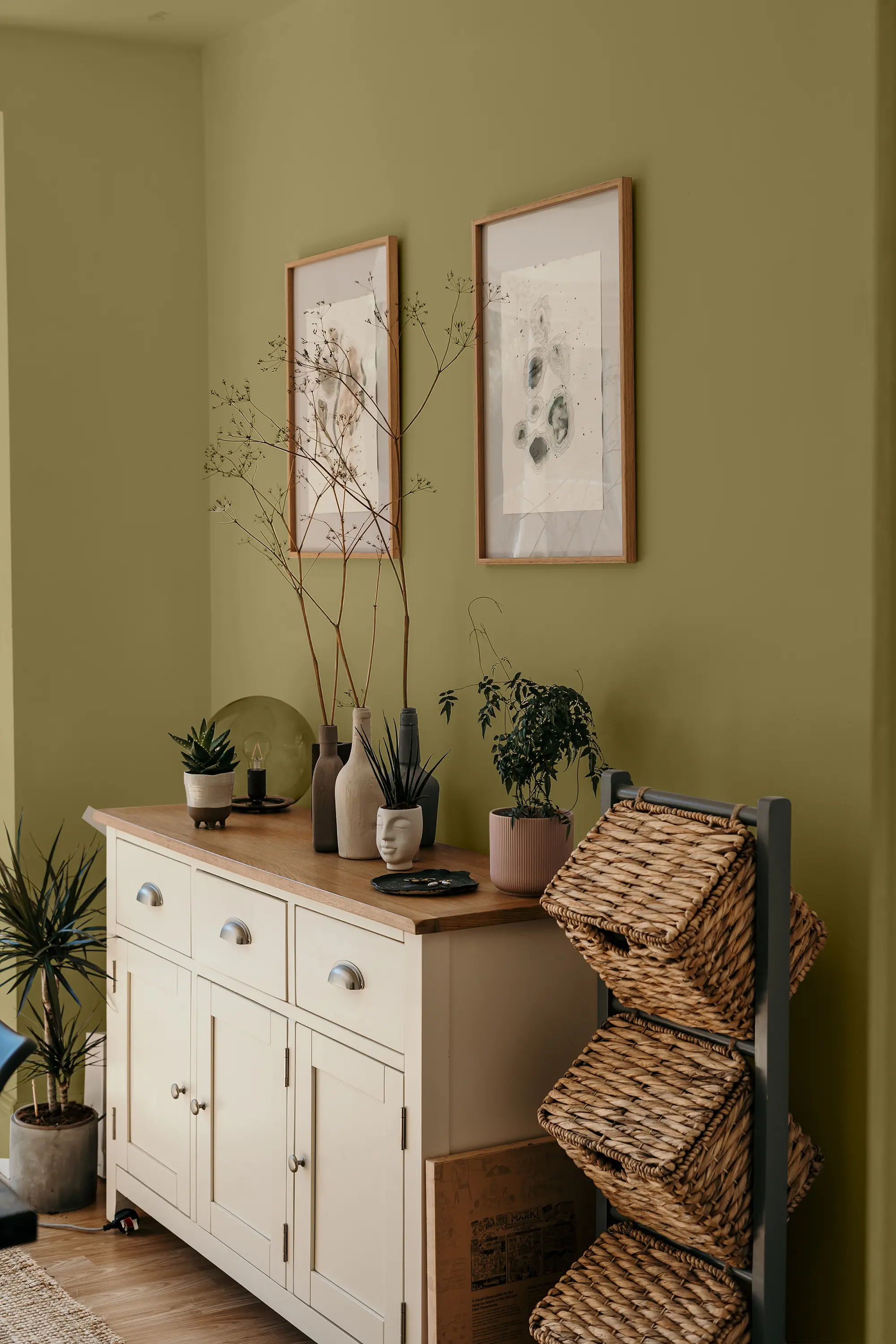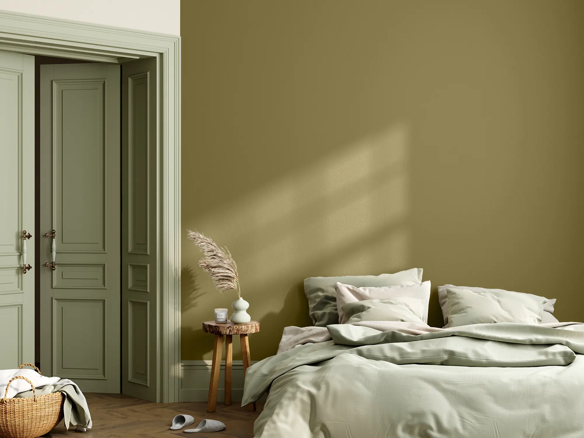 Kombiniert mit Holzmöbeln, Naturfasern oder erdigen Tönen entfalten erdige Farbtöne wie "Pistazie" ihre volle Wirkung und verwandeln den Raum in eine harmonische und stilvolle Wohlfühloase.