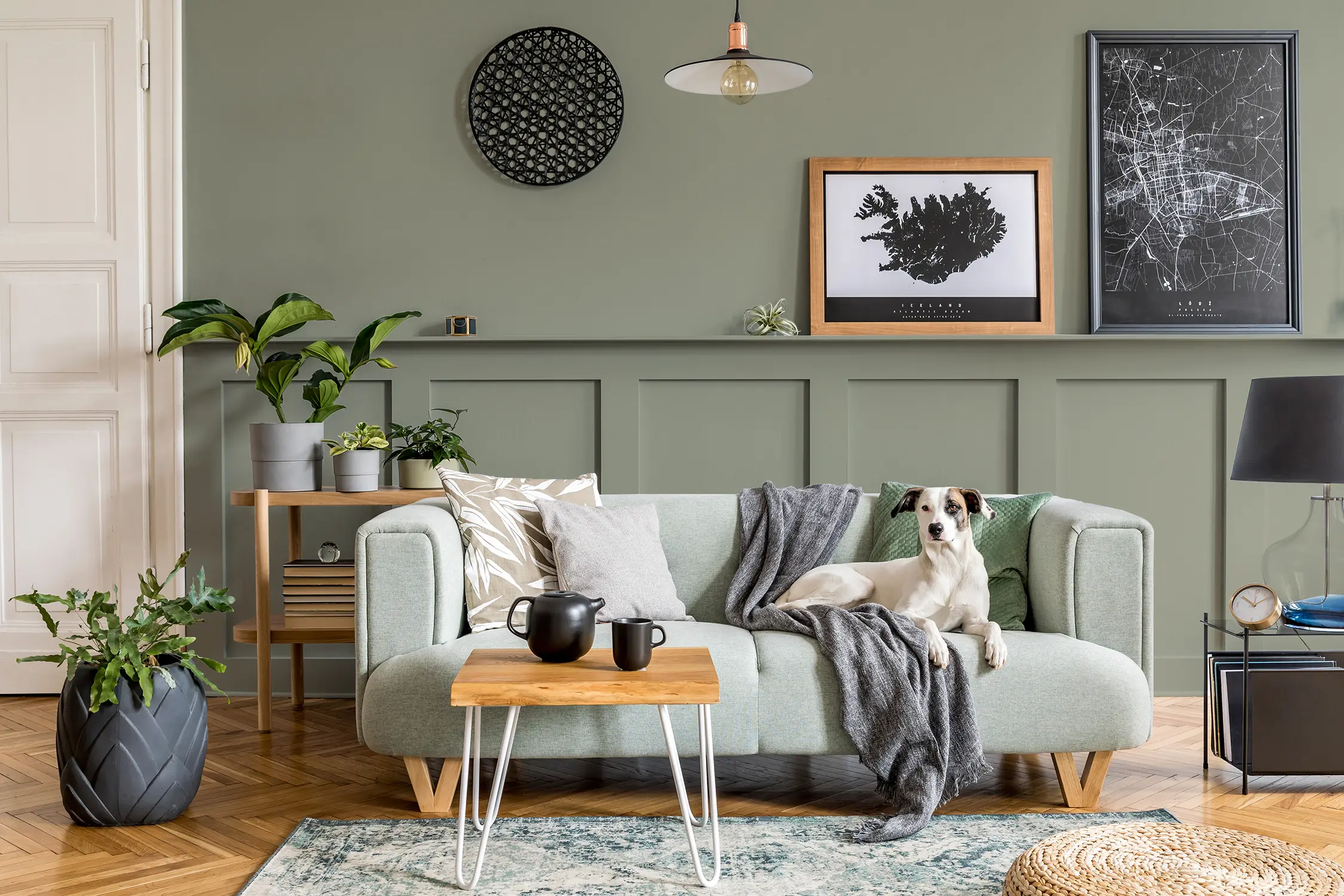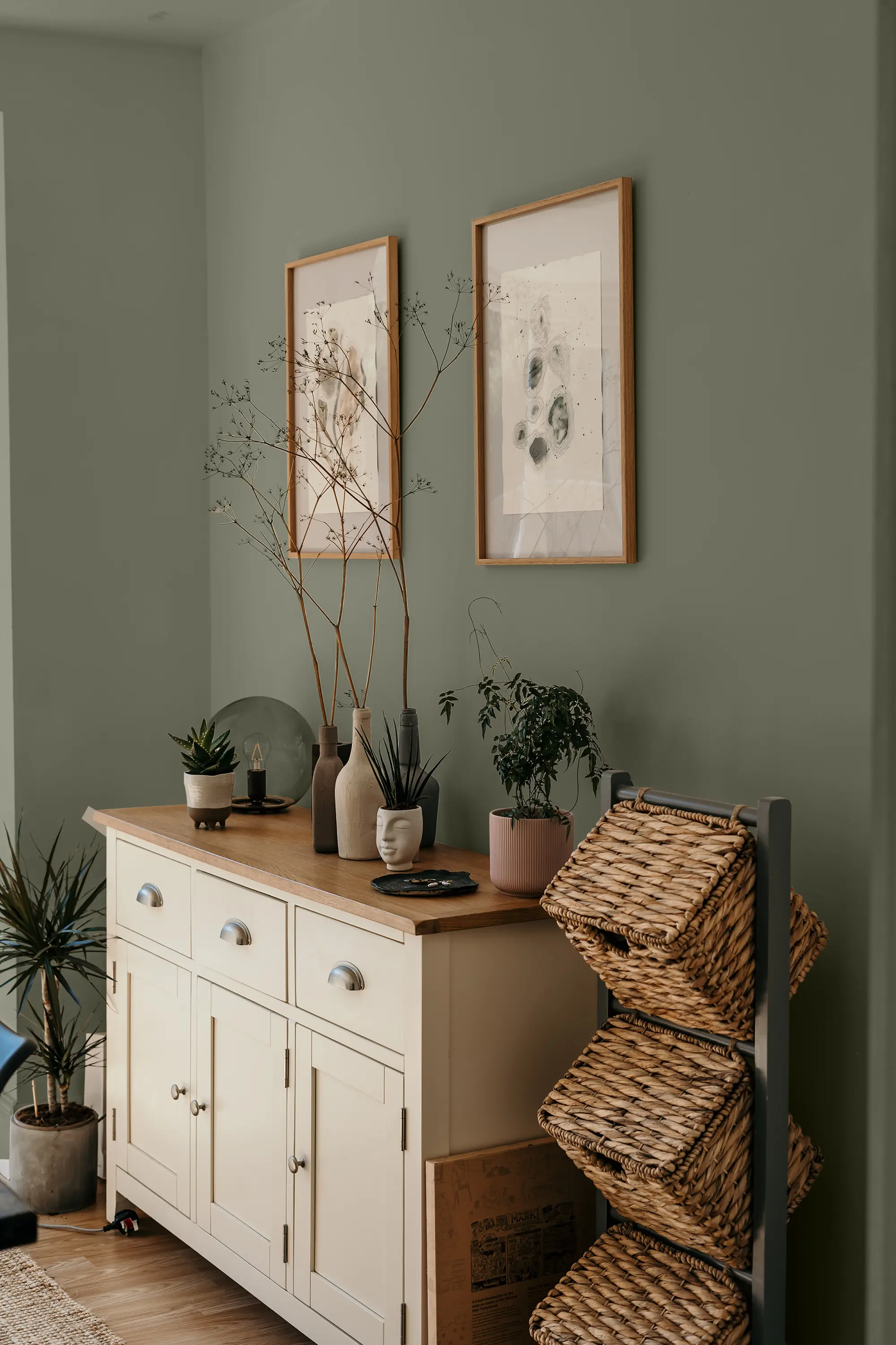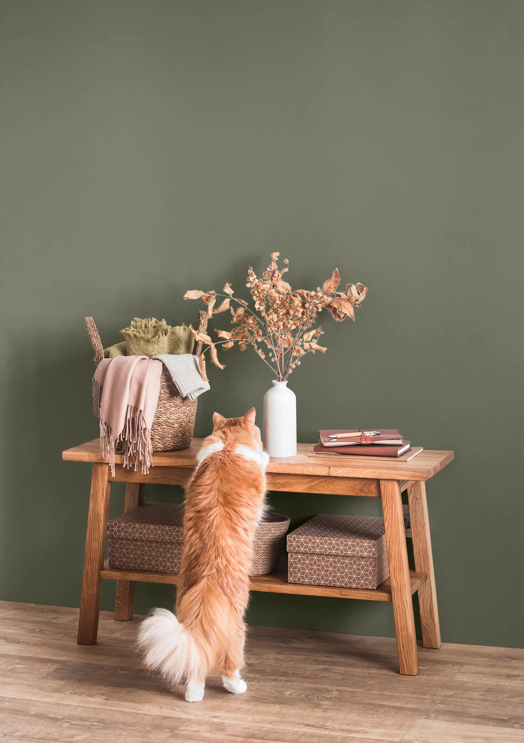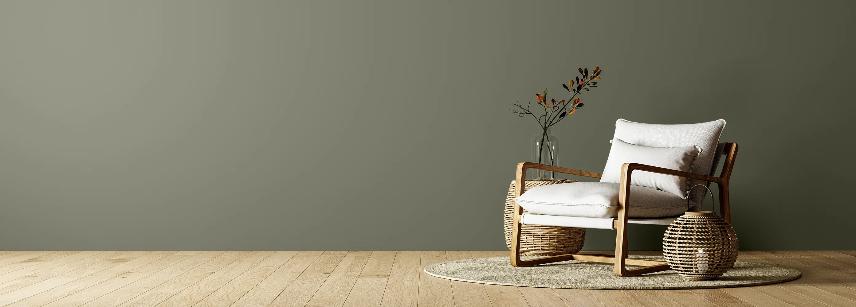 Kombiniere Holzmöbel, Naturfasern und Ähnliches zu „Rosmarin“, um eine moderne und gemütliche Raumgestaltung zum Wohlfühlen zu schaffen.