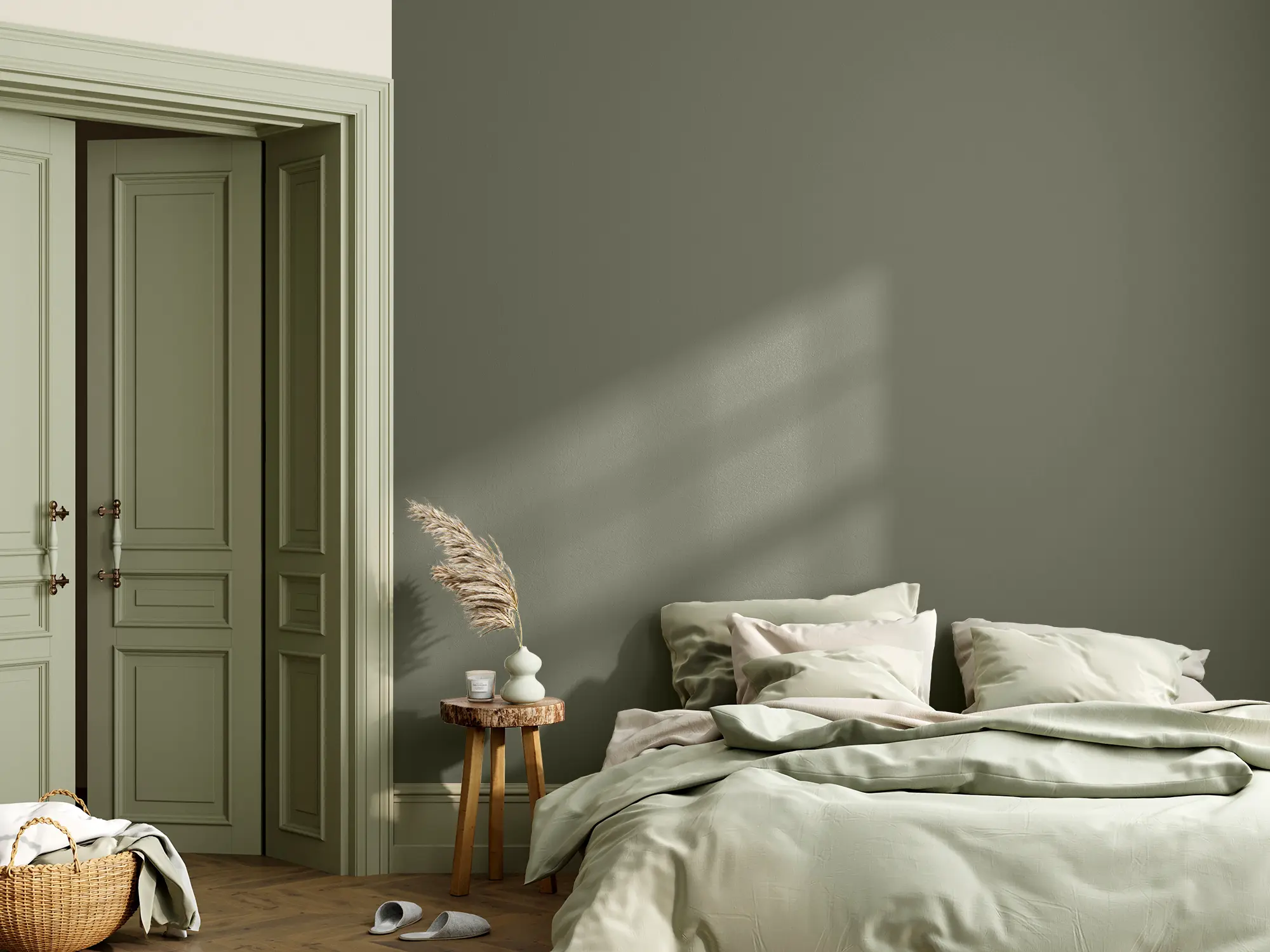 Die Lehmfarbe „Rosmarin" ist ein tiefes Grüngrau, das deinen Räumen eine edle und beruhigende Atmosphäre verleiht. Dieser dunkle, raffinierte Farbton erinnert an die Blätter des Rosmarinstrauchs in schattigen Gärten und bringt eine natürliche, zugleich geheimnisvolle Note in den Raum. Das Zusammenspiel von Grün und Grau macht "Rosmarin" zu einem vielseitigen Ton, der sowohl eine kühle Eleganz als auch eine warme Geborgenheit ausstrahlt. "Rosmarin" eignet sich daher besonders gut für Wohn- und Schlafzimmer. Gezielt eingesetzt, kannst du mit „Rosmarin“ aber auch eine konzentrationsfördernde Atmosphäre in deinem Arbeitszimmer schaffen. Auch in Fluren und Eingangsbereichen wirkt "Rosmarin" äußerst stilvoll und setzt markante Akzente.