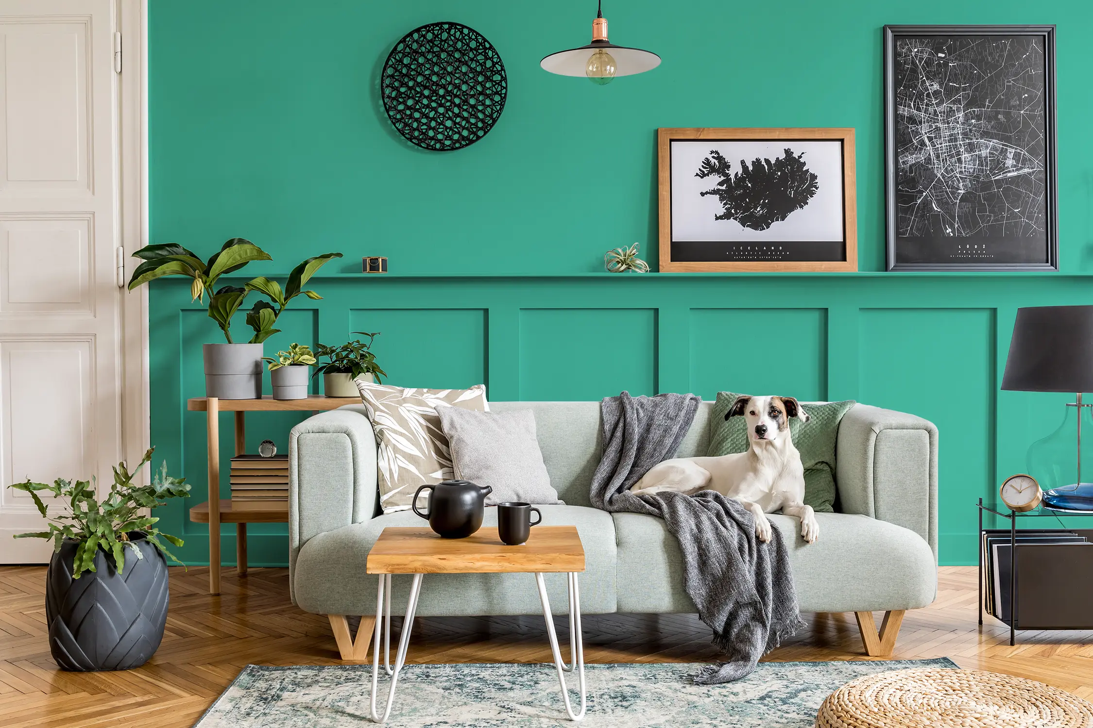 Caleo-Tipp: Bei Kontrastfarben gilt "Weniger ist mehr": Nutze Schablonen oder klebe geometrische Muster wie Kreise, Dreiecke oder Rauten ab, um kräftige Akzente zu setzen. Als Untergrund eignen sich helle, dezente Farben sowie Weiß oder Cremetöne.