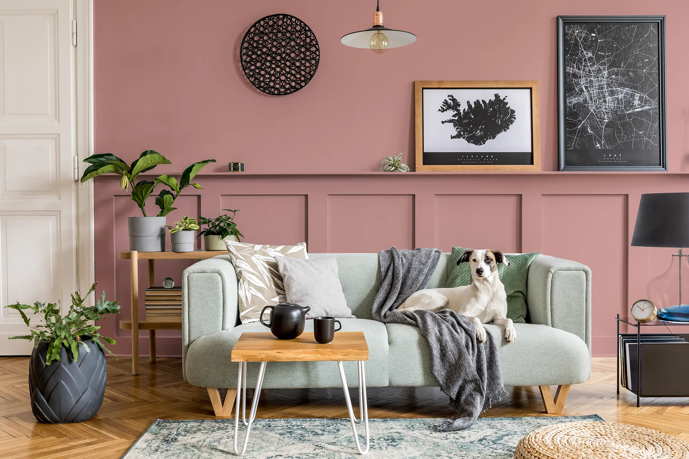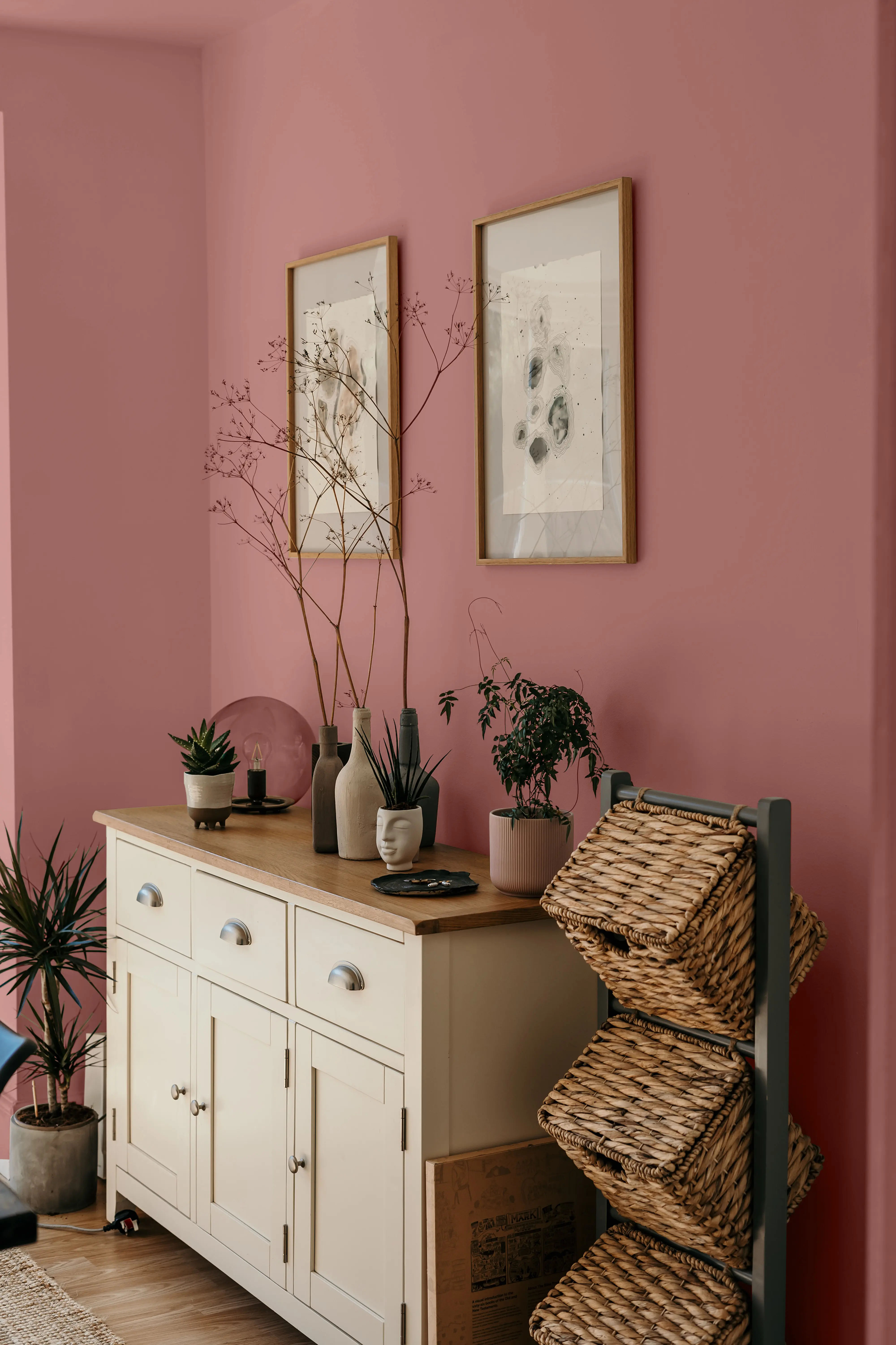 Kräftige, dunklere Farbtöne kannst du besonders schön zur Geltung bringen, indem du die gestrichene Wand mit einem weißen Rahmen versiehst.