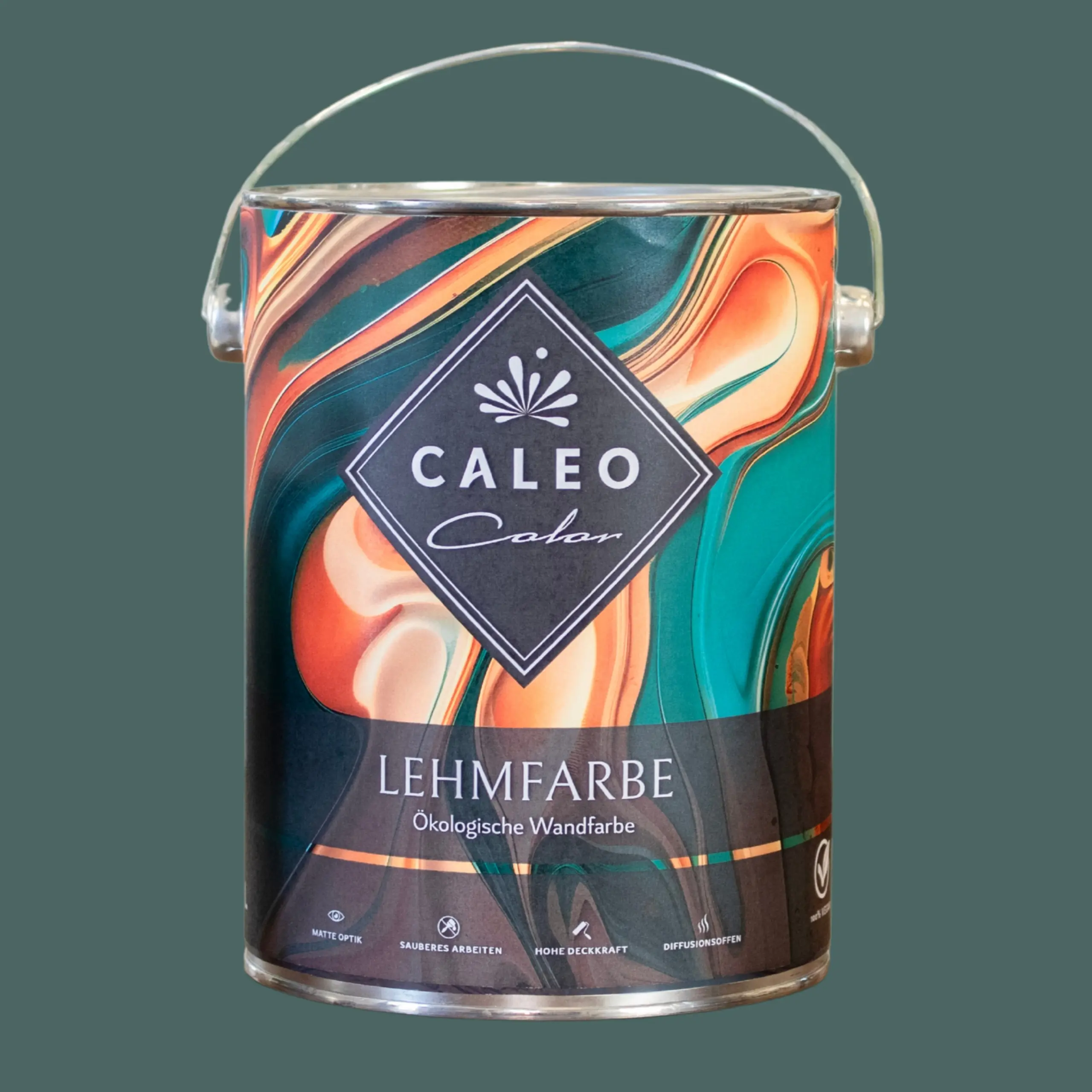 Die dunkelgrüne Wandfarbe „Waldspaziergang“ von Caleo Color ist eine natürliche Lehmfarbe mit vielen positiven Eigenschaften. Mit ihr gestaltest du den Raum optisch ansprechend und unterstützt dabei sogar noch ein angenehmes Raumklima. Gegenüber konventionellen Wandfarben mit Kunststoffanteilen besitzt die streichfertige Lehmfarbe eine Reihe positiver Eigenschaften. In Verbindung mit einem diffusionsoffenen Untergrund wie Lehmputz kann die Caleo Color-Lehmfarbe feuchteregulierend wirken und das Raumklima positiv beeinflussen. Zudem binden die enthaltenen Tonmehle schlechte Gerüche und neutralisieren diese. Außerdem verzichten wir in unseren Lehmfarben auf chemische Lösemittel und Weichmacher.