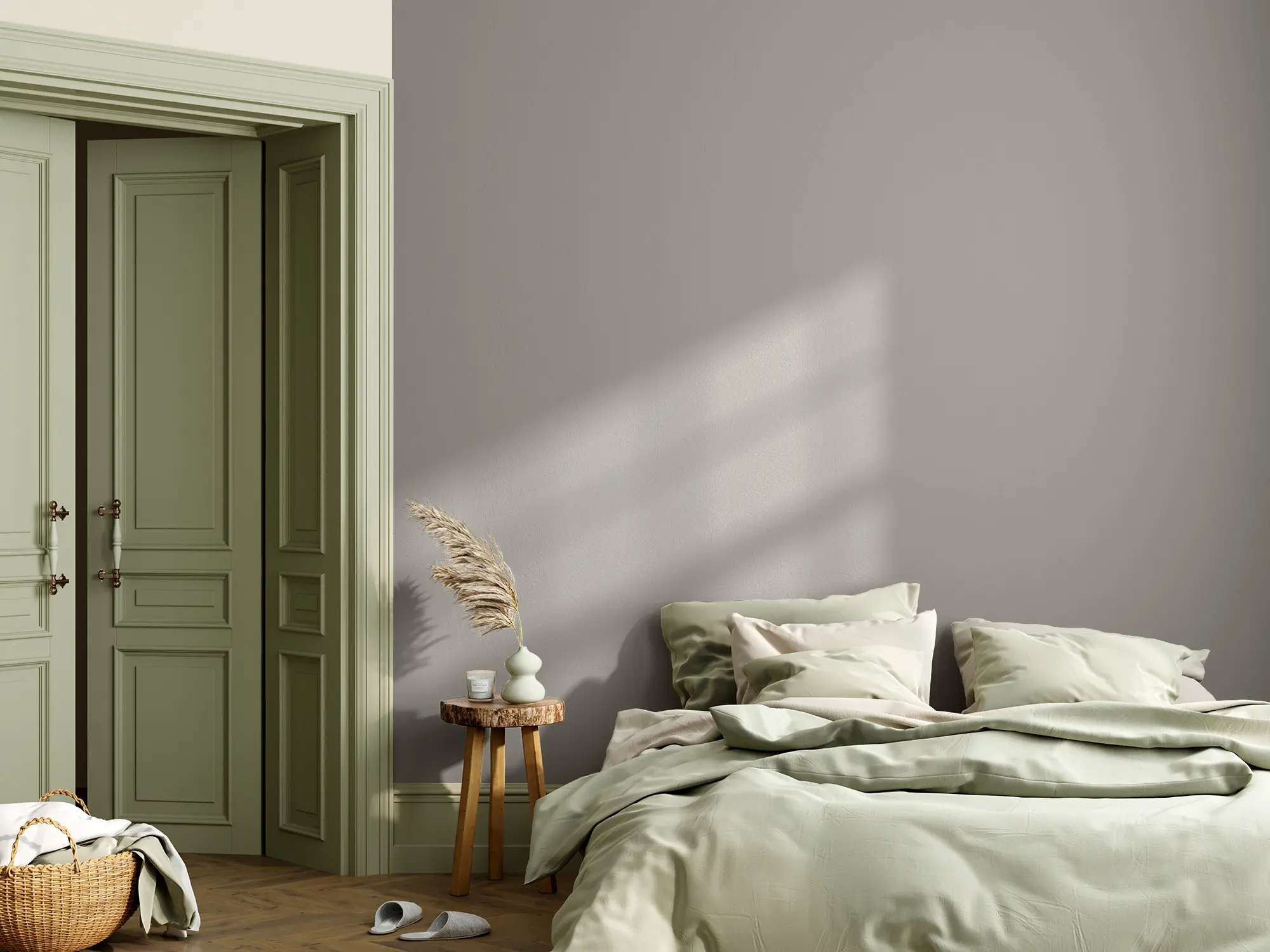 Die Lehmfarbe „Wildkatze" ist ein Steingrau mit warmer Nuance. Der neutrale Farbton strahlt Klarheit und Ruhe aus, weshalb er sich für verschiedenste Räume in deiner Wohnung eignet. Seine einladende Wirkung kannst du wunderbar im Eingangsbereich und Wohnzimmer einsetzen. Im Schlafzimmer sorgt das Steingrau dank seiner braunen Note für eine gemütliche und beruhigende Atmosphäre.