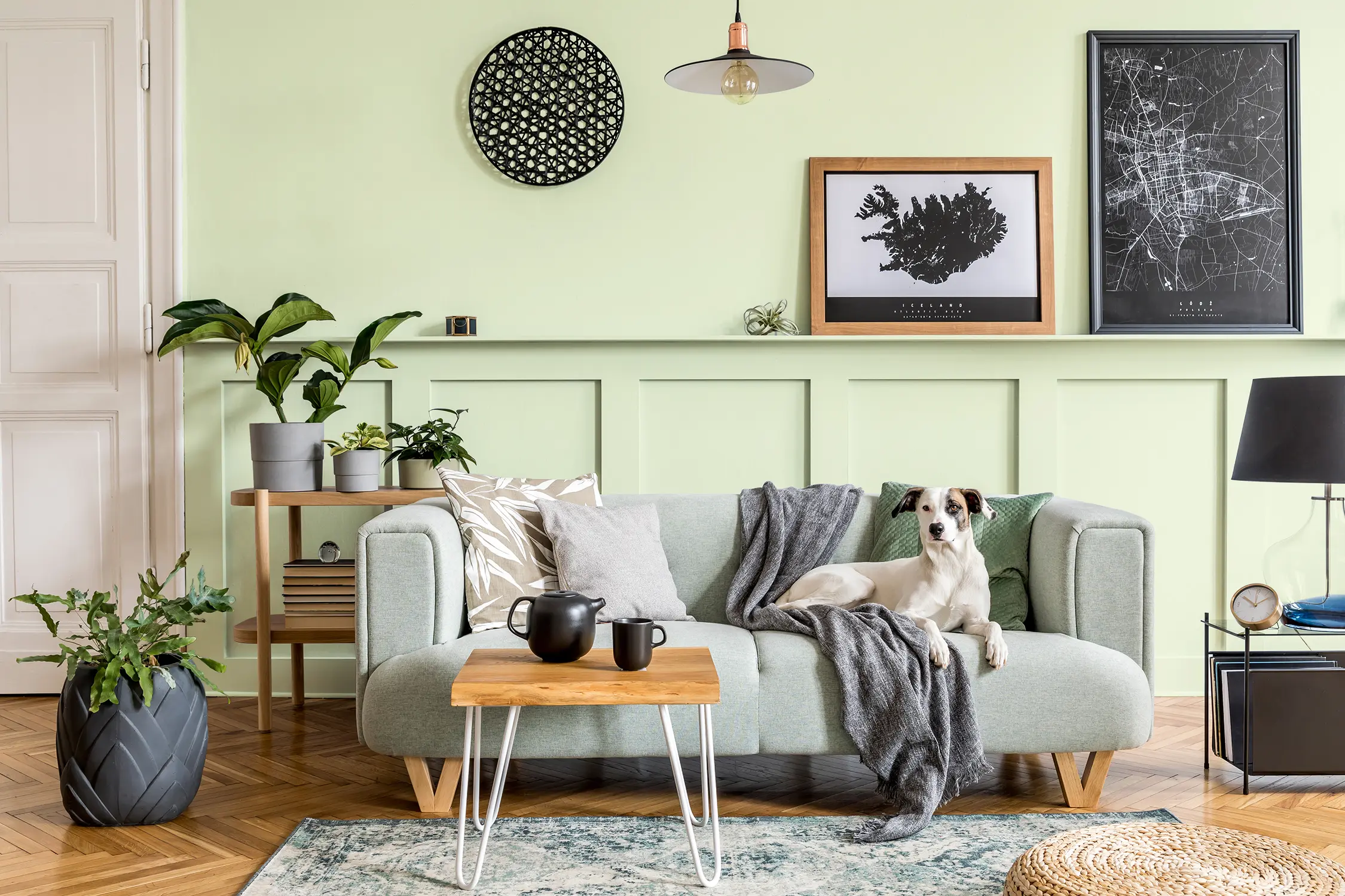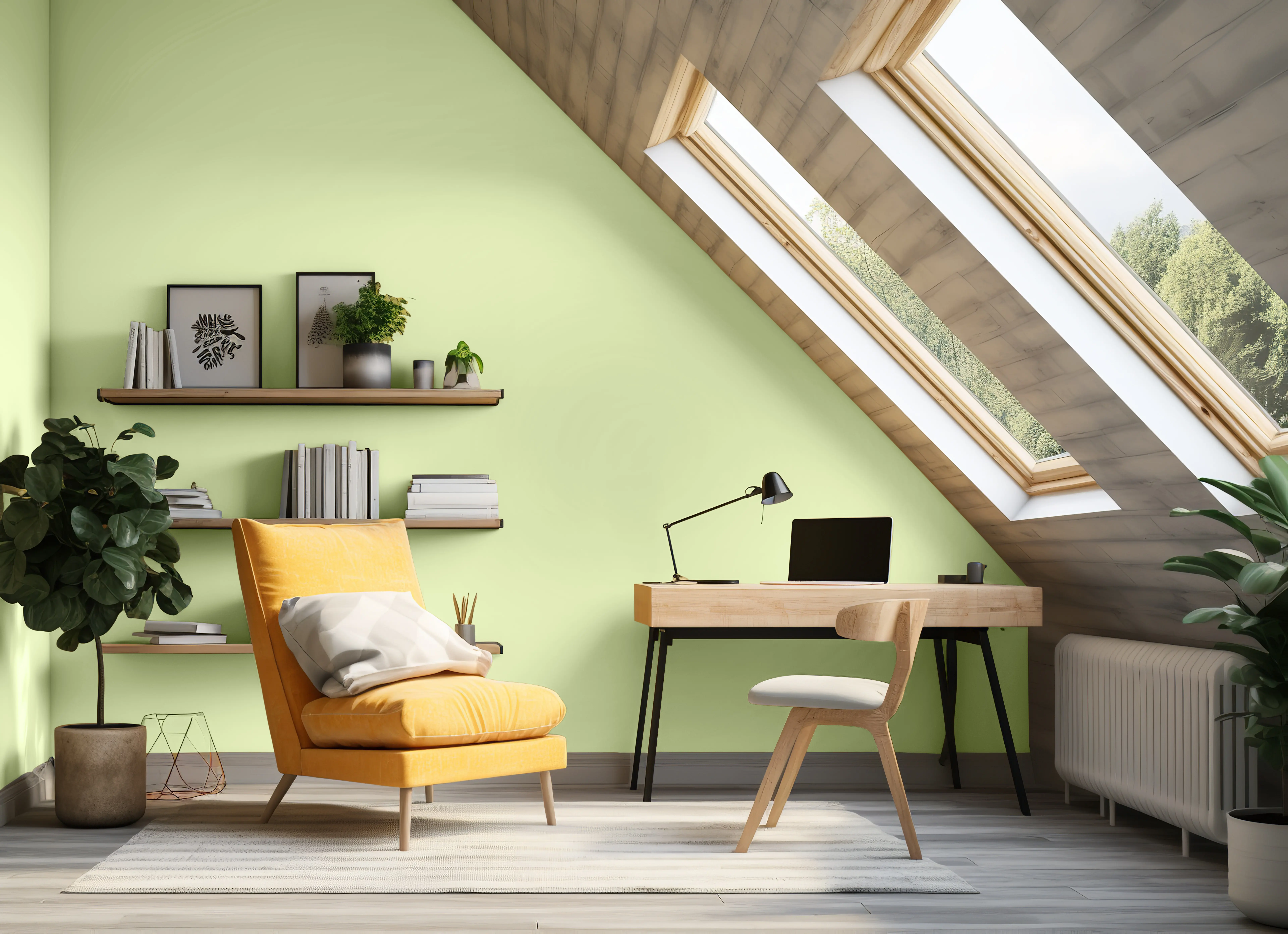 Caleo-Tipp: Ein weißer Rahmen um die mit "Zauberwald" gestrichene Wand hebt das zarte Hellgrün hervor und lässt die natürliche Farbnuance noch besser wirken. Dieser Trick eignet sich besonders bei niedrigen Decken, da der weiße Streifen zur ebenfalls weißen Decke den Raum nach oben offener wirken lässt.
