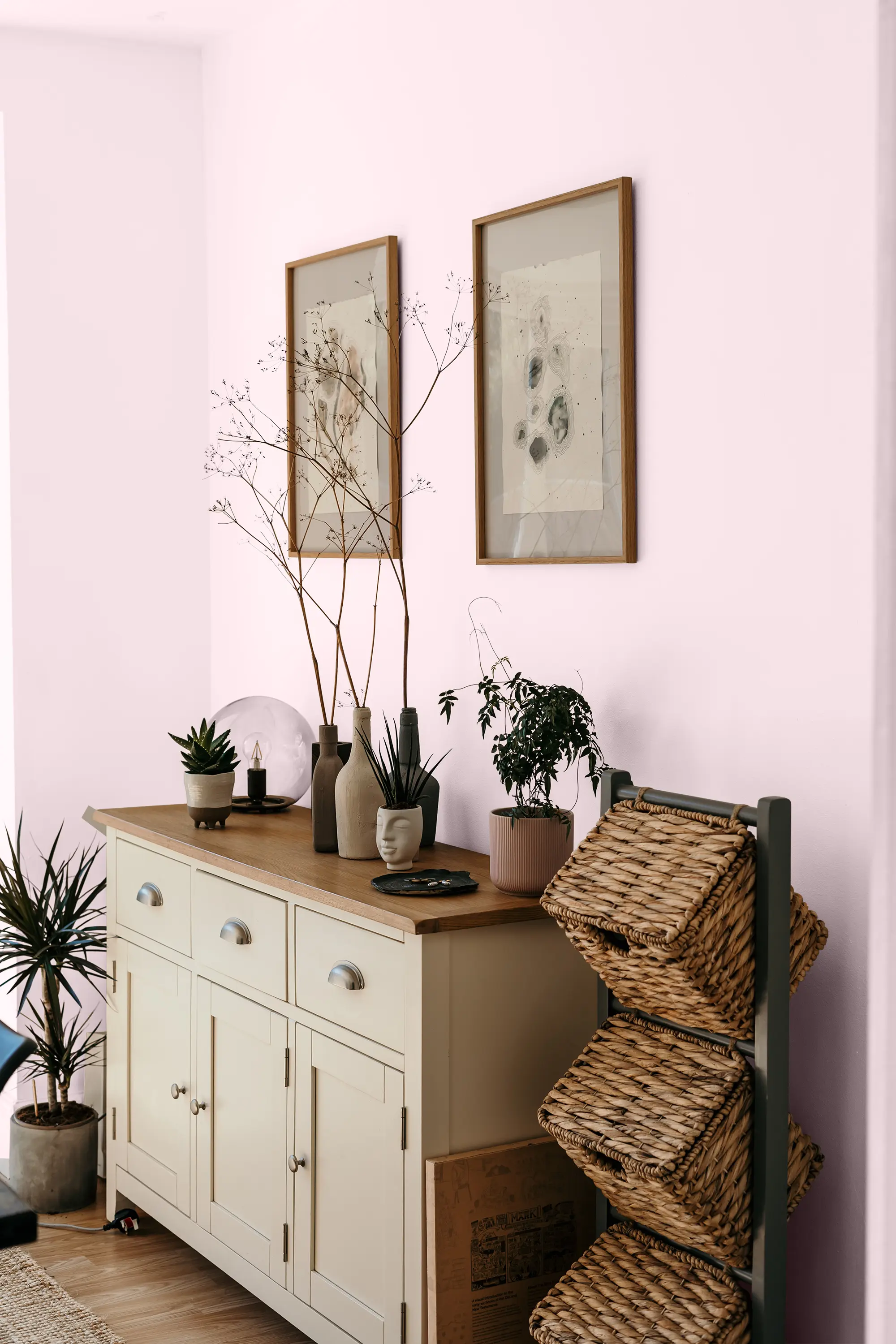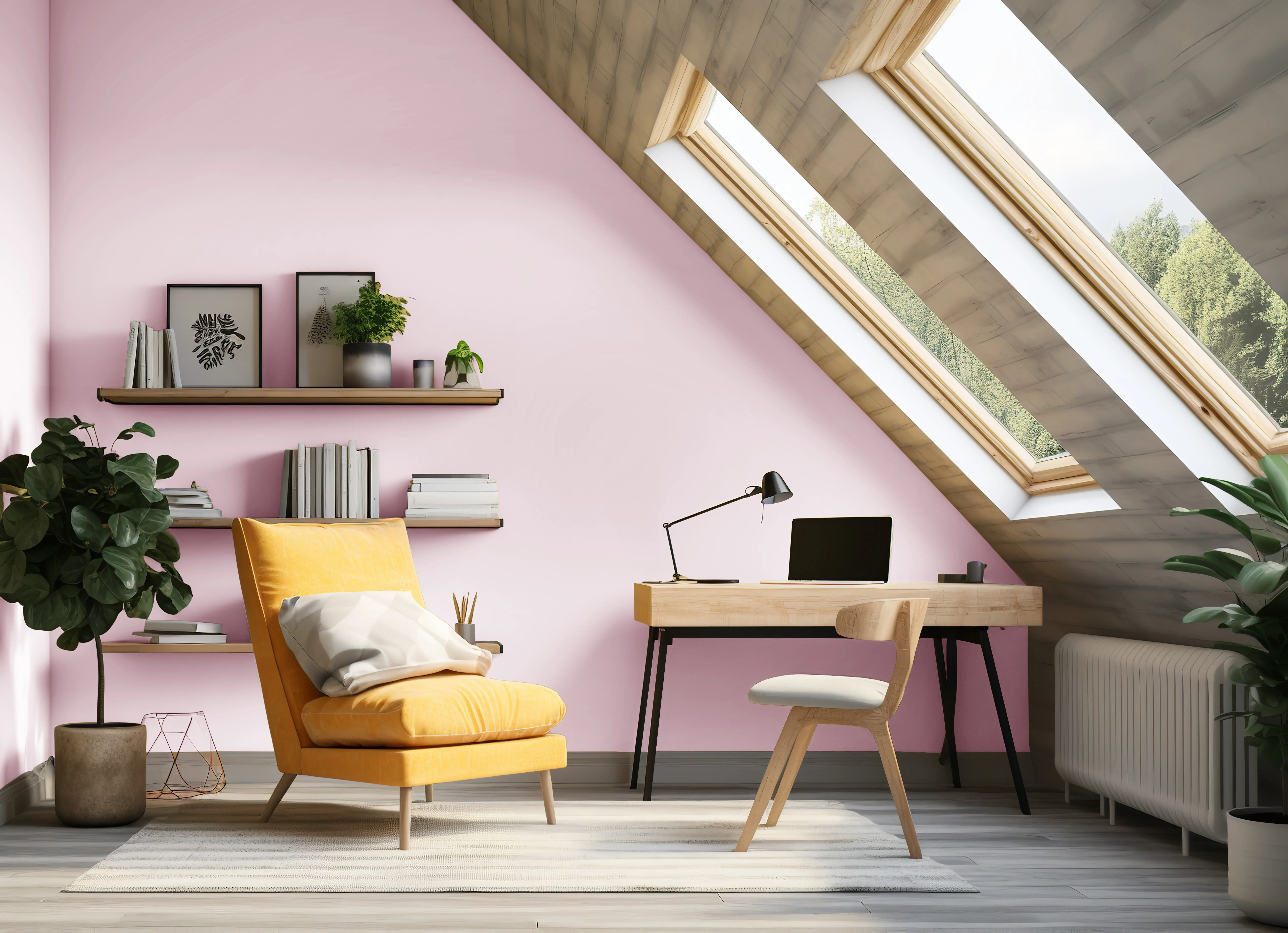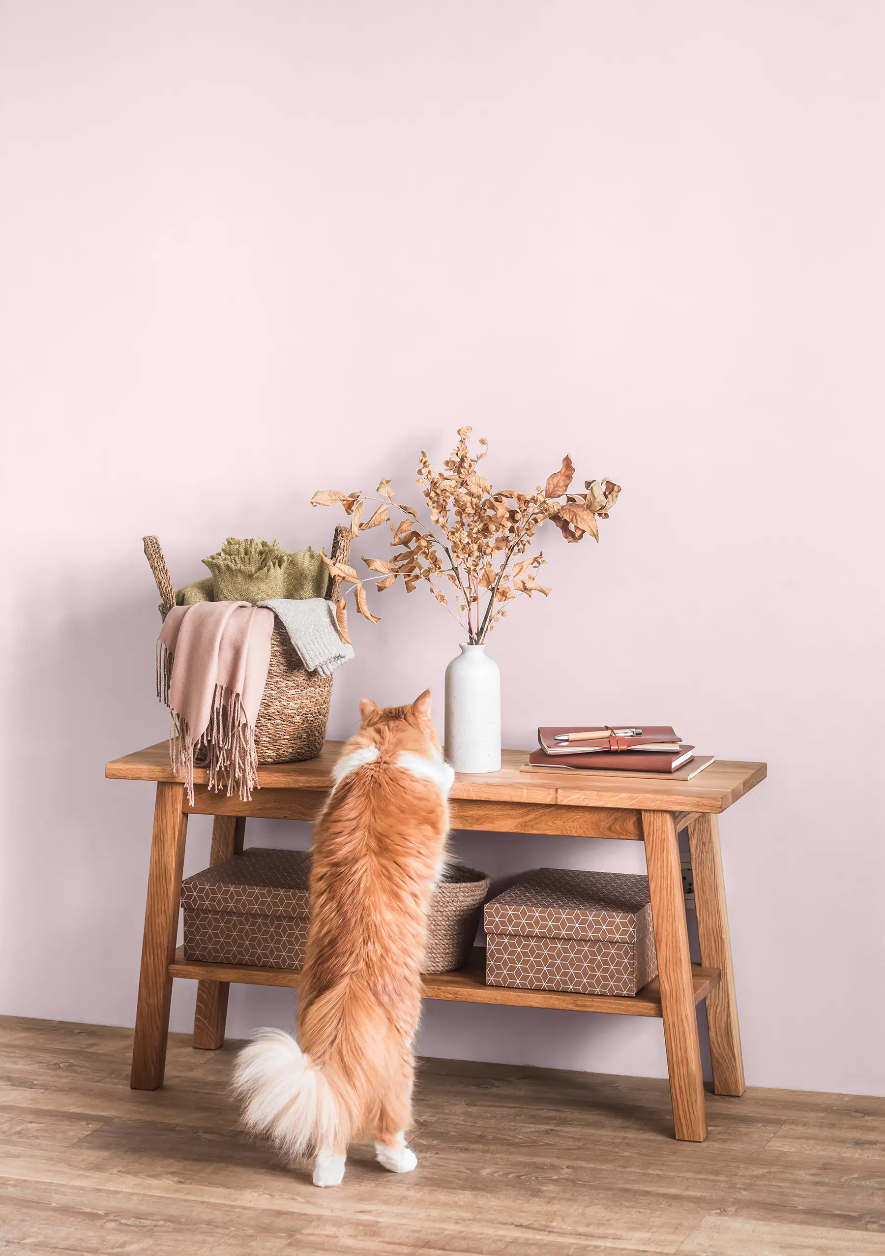 Caleo-Tipp: "Zuckerwatte" ist ein sehr angenehmer und heller Rosaton, mit dem du sogar die Decke mitstreichen kannst. So sorgst du für ein einheitliches Bild und kannst kleine Räume etwas größer wirken lassen.