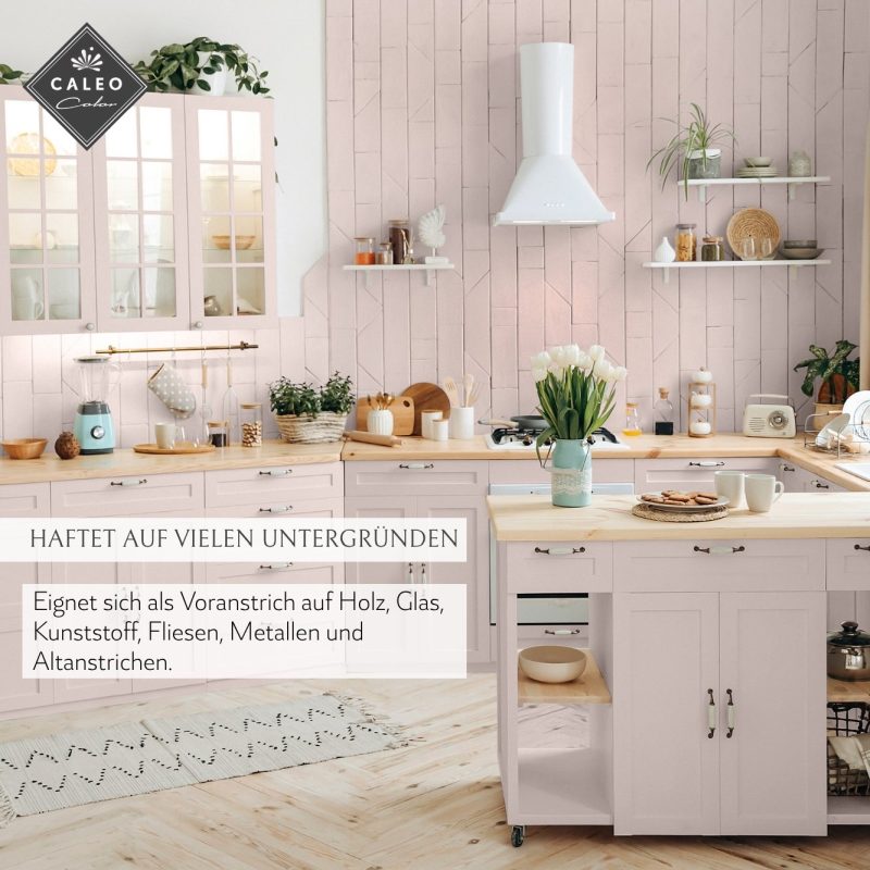 Entdecke auch unsere Caleo Color Wandgrundierung. Sie ist ein effektiver Haftvermittler und ein Grundanstrich und verhilft damit zu einem füllenden und sehr deckenden Ergebnis.