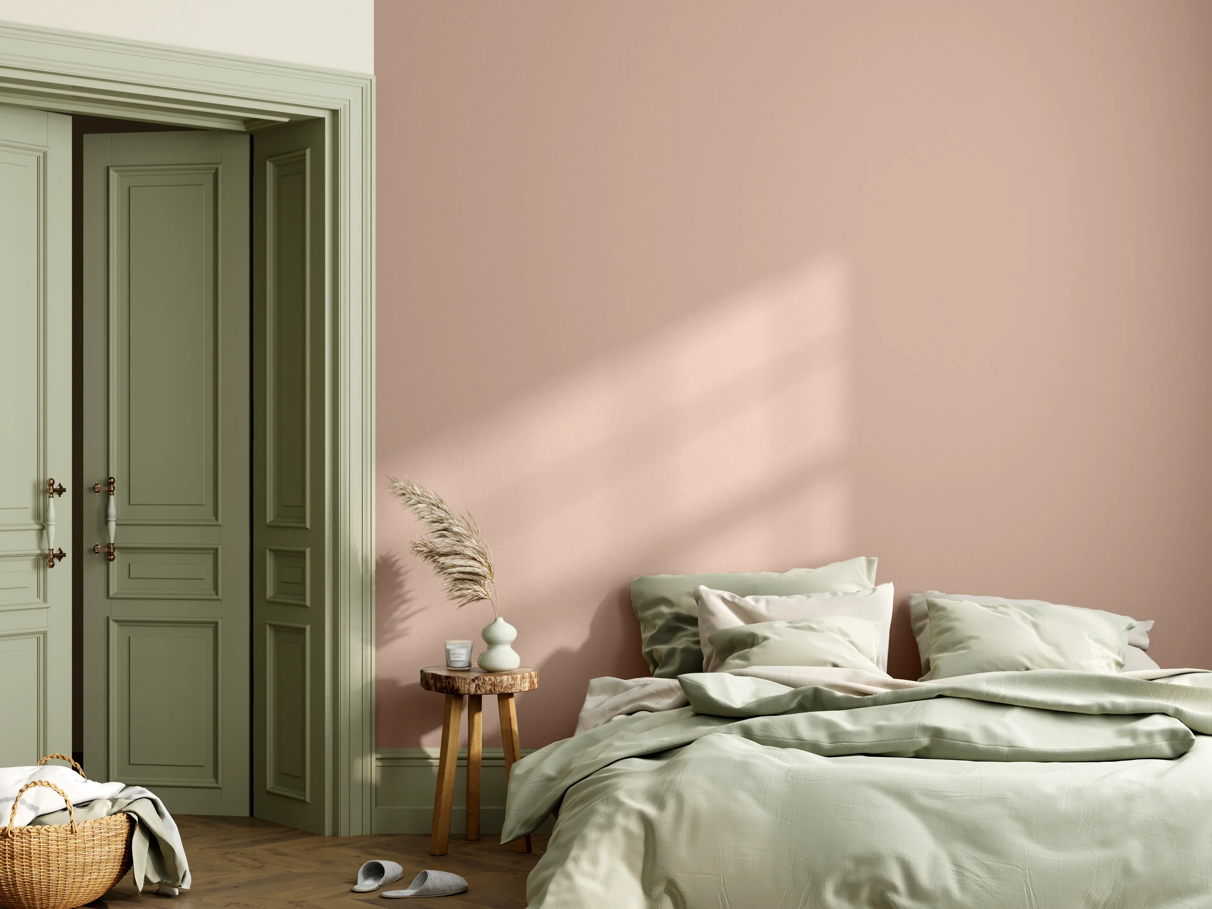 Im Schlafzimmer sind warme Weiß- und Beigetöne besonders beliebt, da sie eine entspannende Wirkung haben. „Altweiß“ oder „Naturweiß“ sind unaufdringlich, vermitteln ein Gefühl von Geborgenheit und lassen sich wunderbar mit Naturmaterialien wie Leinen und Holz kombinieren.