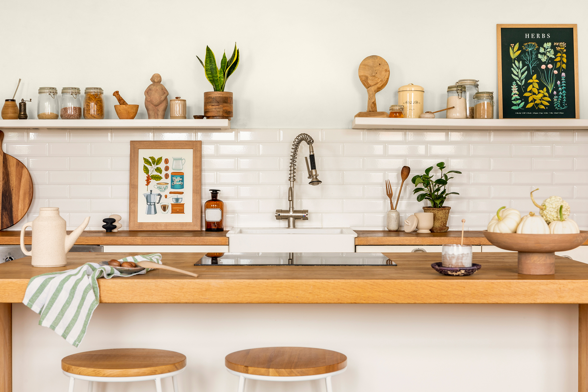 Weiße und beige Wandfarben in der Küche