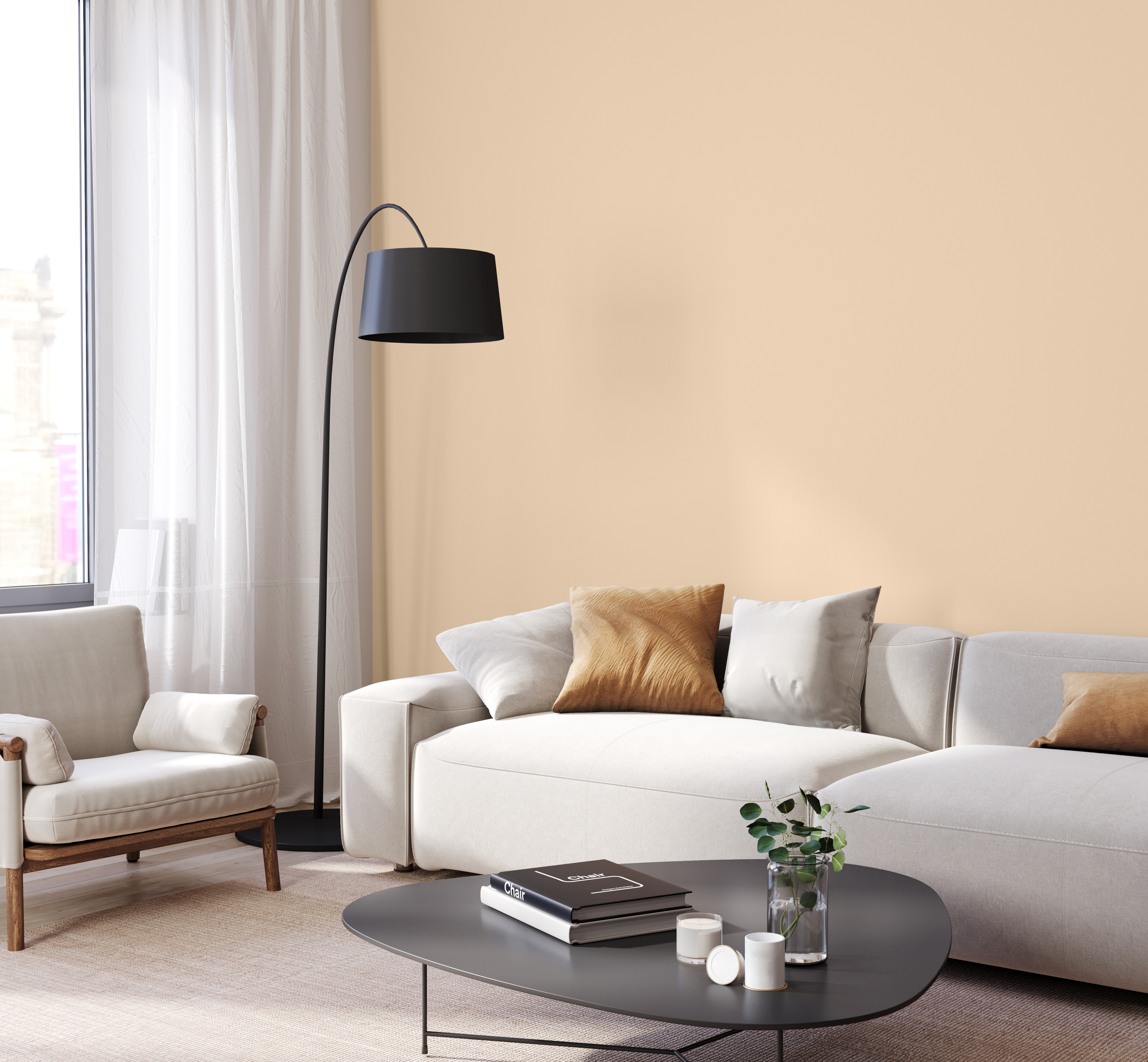Harmonisch kombinieren kannst du sie mit kräftigeren, warmen Farbtönen und Erdtönen. Sonnige, fröhliche Gelb- und Orangetöne bringen Energie und Lebendigkeit in den Raum. Besonders in Wohn- und Essbereichen kann eine Wand in einem warmen Ton mit weißen Wänden kombiniert werden, um einen gemütlichen, aber dennoch modernen Raum zu gestalten.