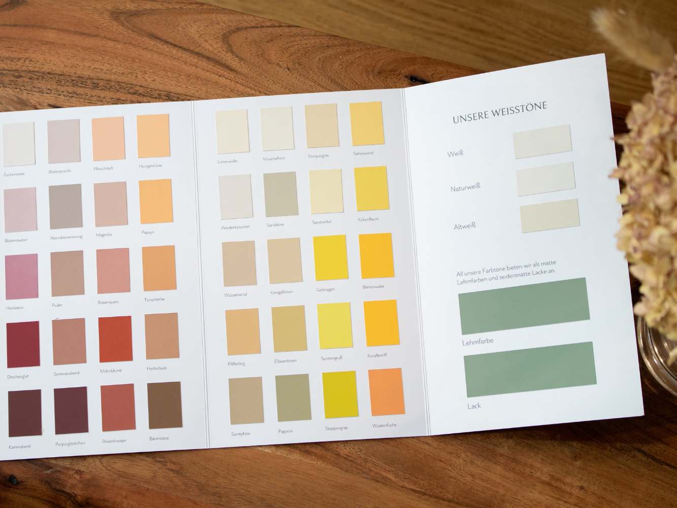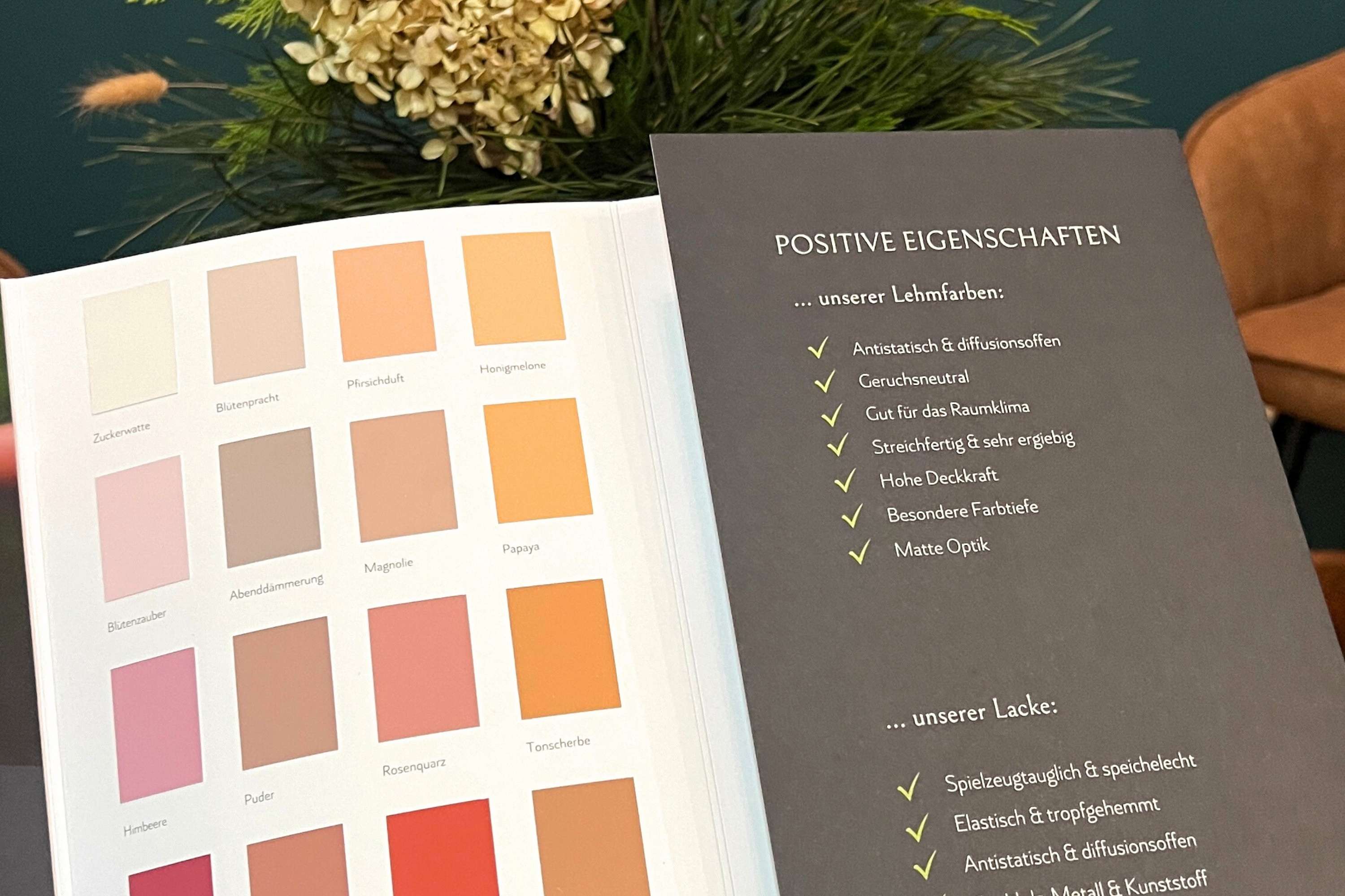 Damit erhältst du einen ersten Eindruck, wie unsere Lehmfarben aussehen, wie sich die matte Haptik anfühlt und du kannst prüfen, wie deine Wunschfarben in verschiedenen Lichtverhältnissen wirken.