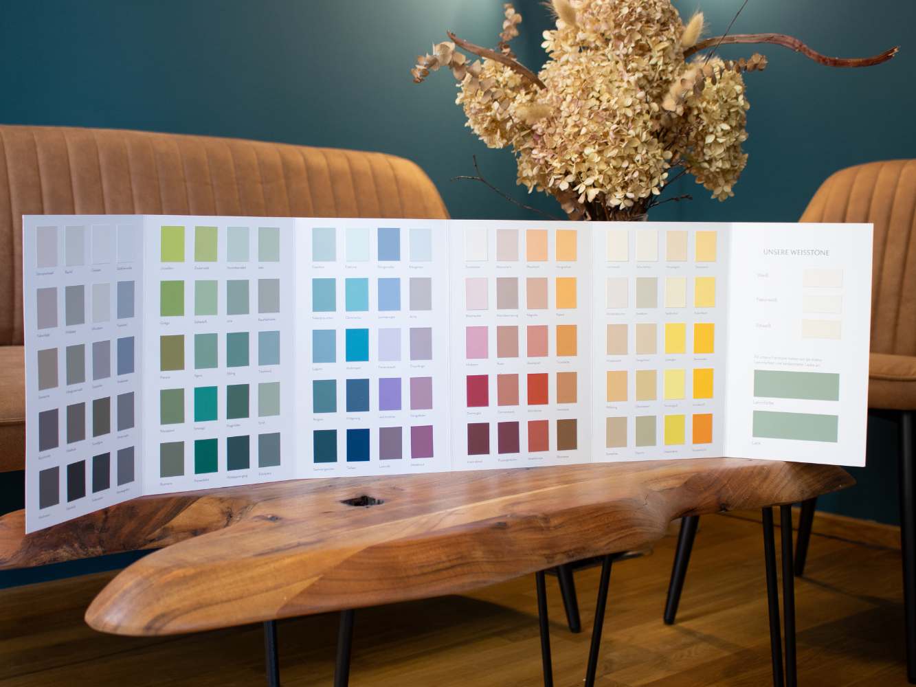 Um dir die Suche nach dem passenden Farbton zu erleichtern und dir einen realistischen Eindruck unserer lösemittelfreien ökologischen Farben zu ermöglichen, haben wir unsere Farbkarte mit Echtanstrichen für dich.