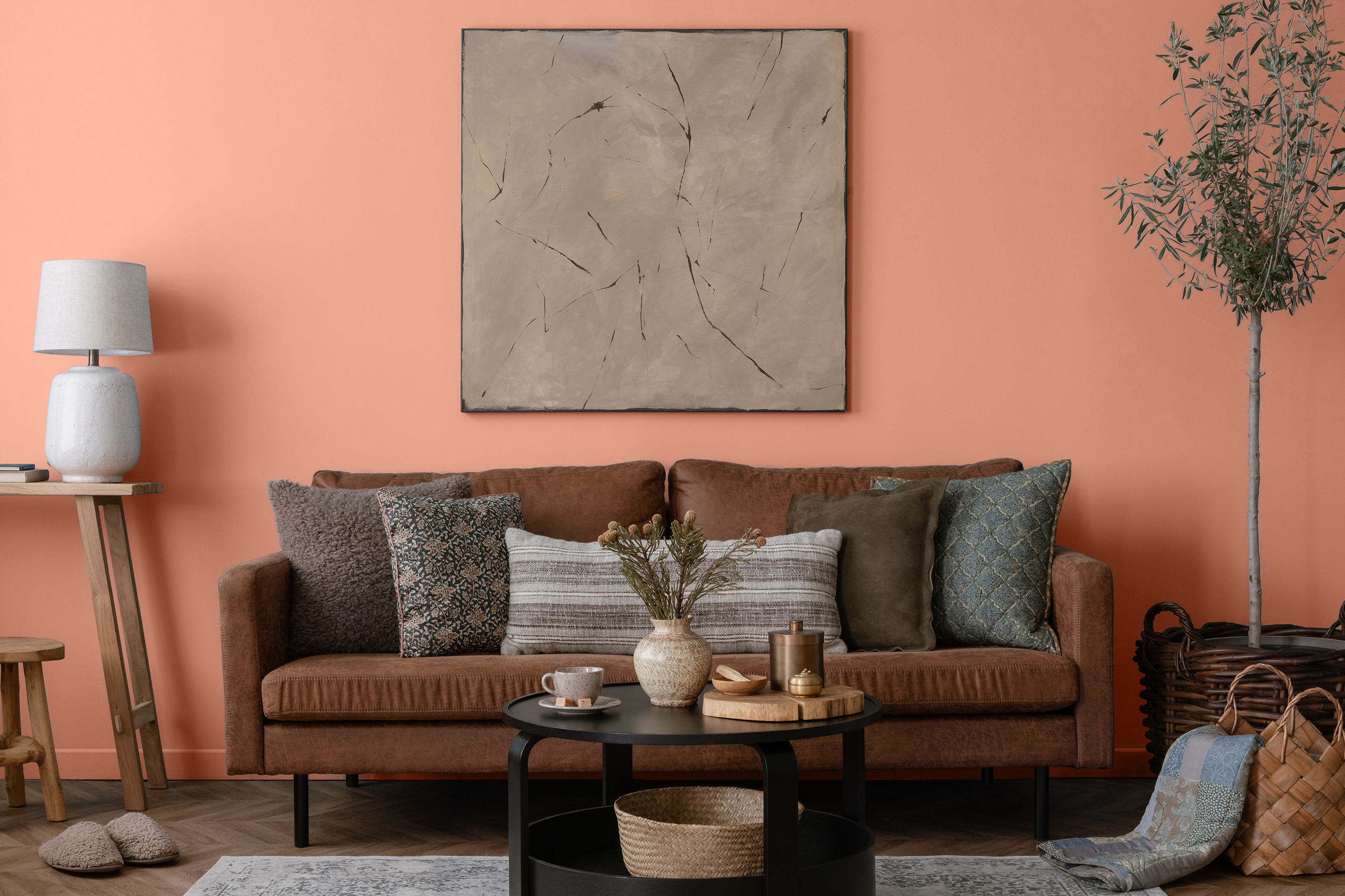 Verwandle dein Wohnzimmer in eine gemütliche Wohlfühloase: Im Artikel „Wohnzimmer streichen“ geben wir viele Tipps für die Wandgestaltung und zum Streichen mit Lehmfarben.