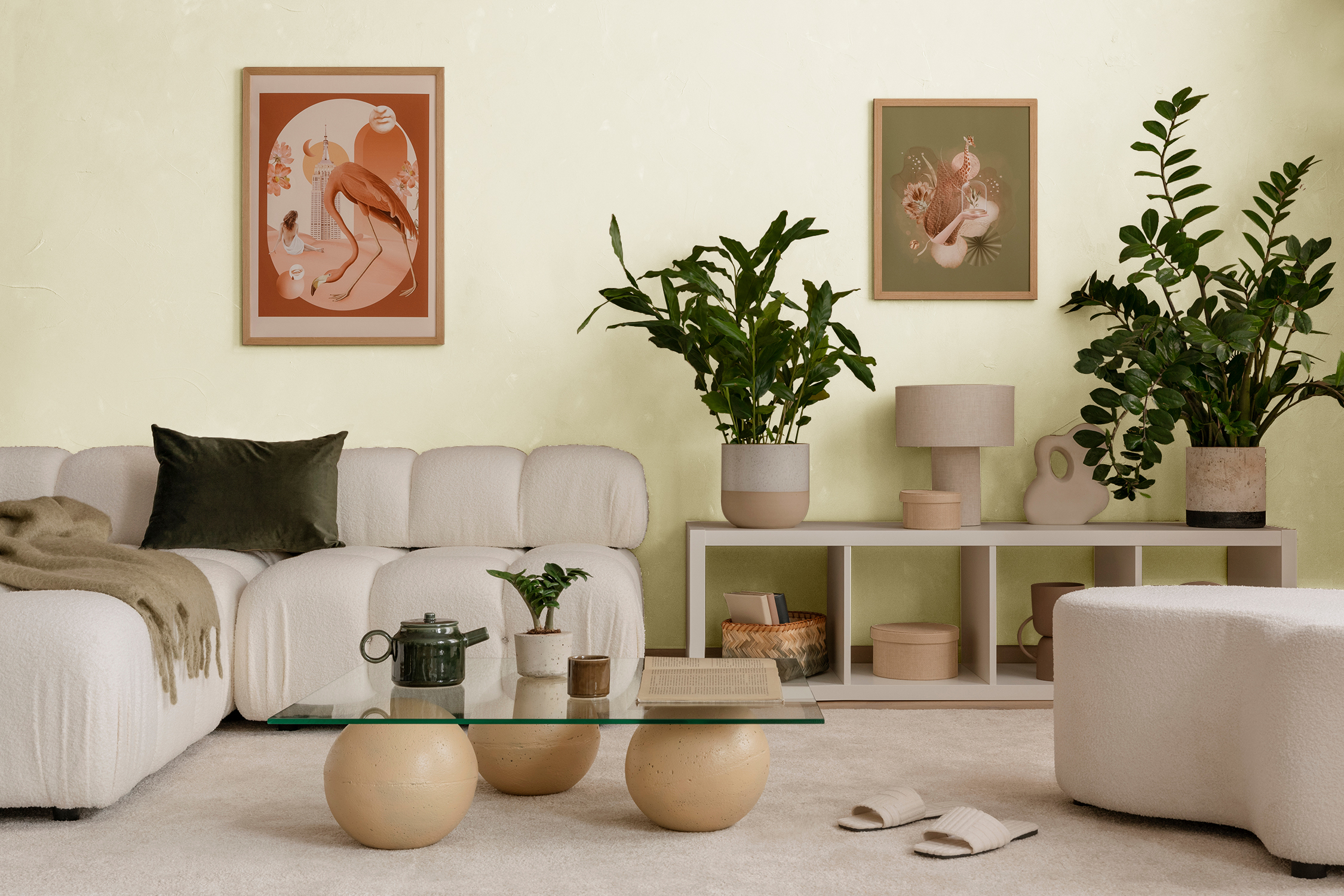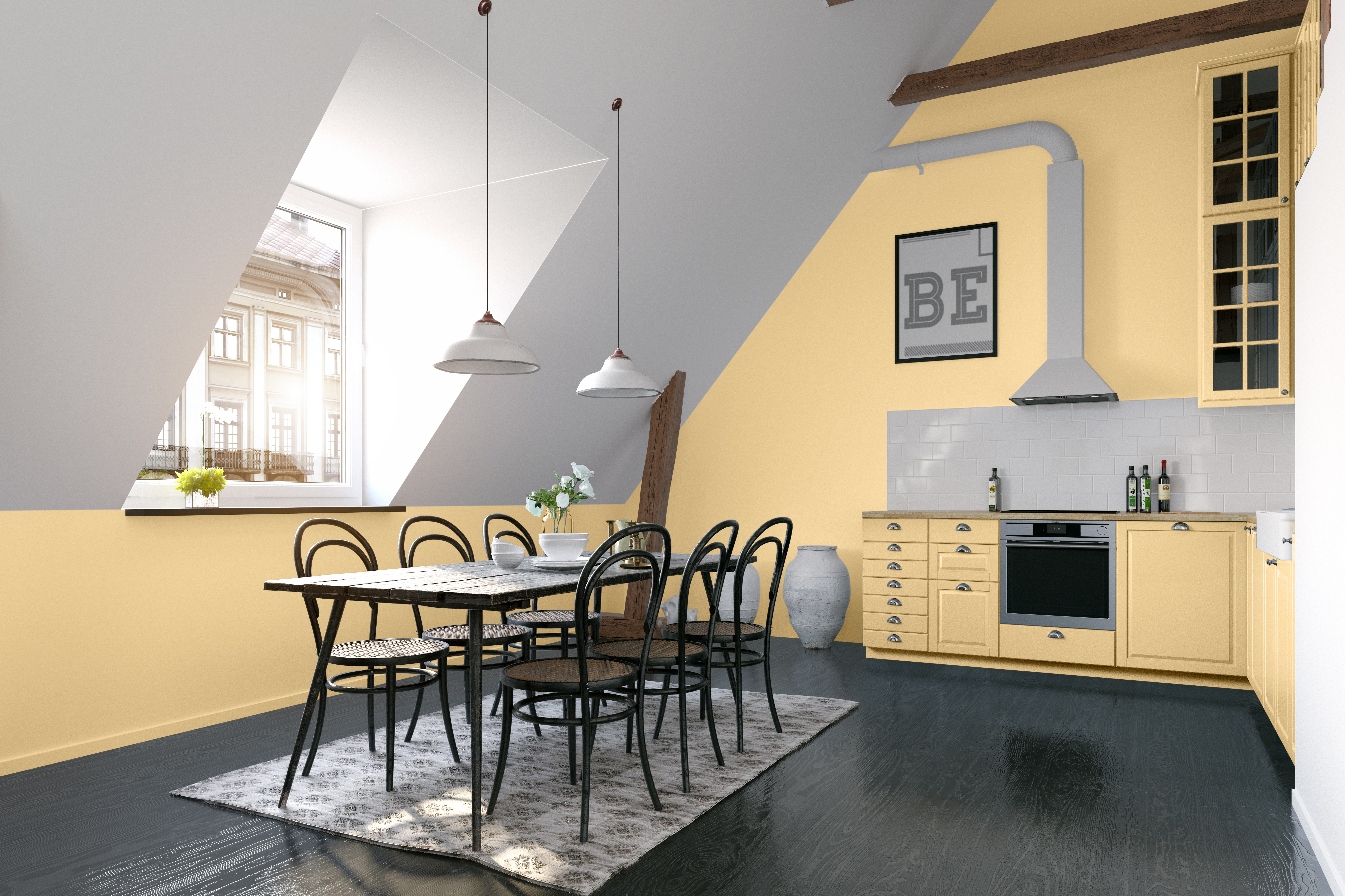 - Pastellgelb strahlt eine sanfte Wärme aus, die an Sonnenlicht erinnert. Zartgelbe, warme Farbtöne wie „Sandwirbel“ oder „Saharawind“ verleihen Räumen eine lebendige und fröhliche Atmosphäre, wodurch sie sich vor allem für Wohnzimmer, Esszimmer, Küchen oder Kinderzimmer eignen.