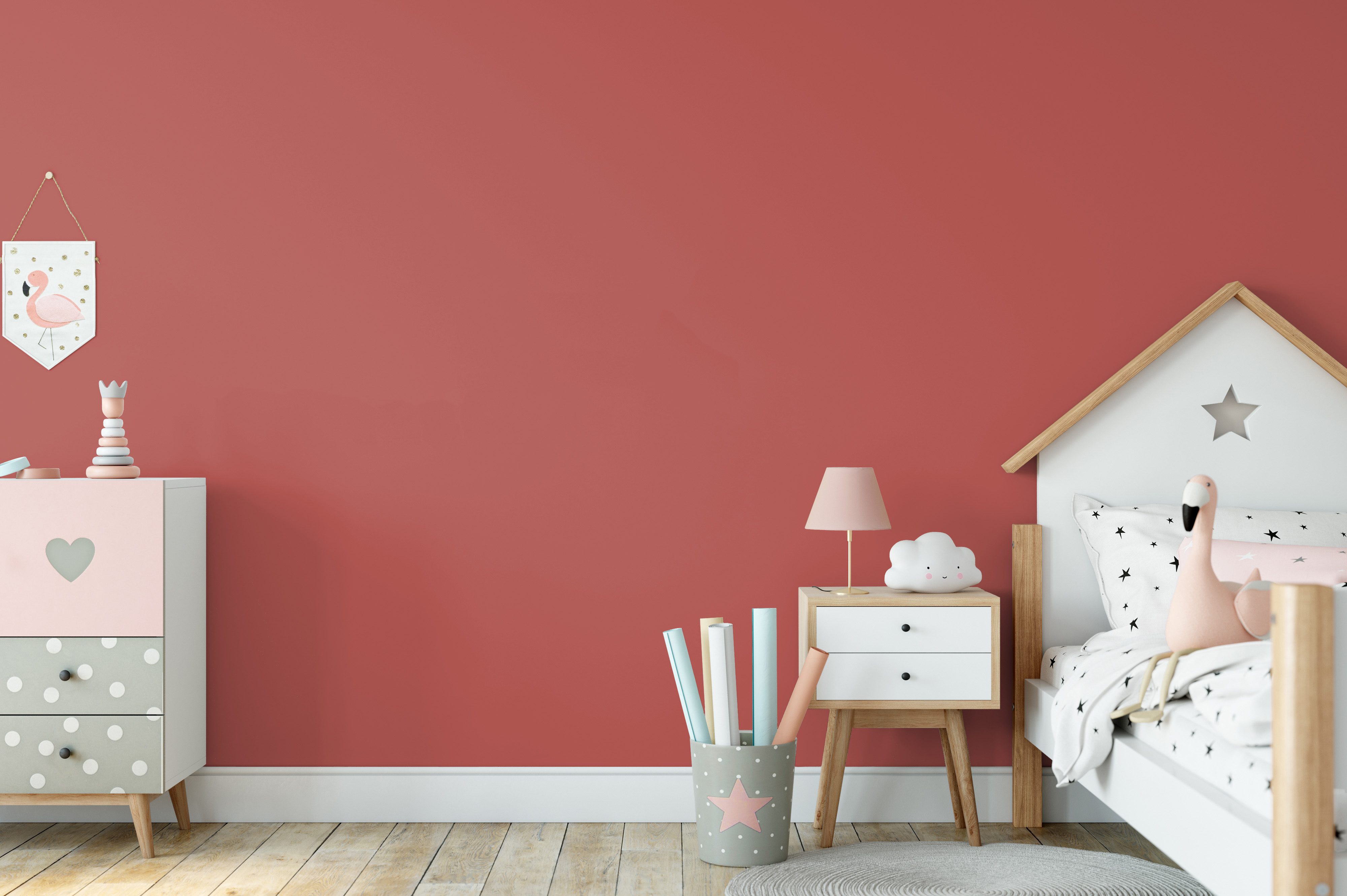 Rote und Rosa Wandfarbe im Kinderzimmer