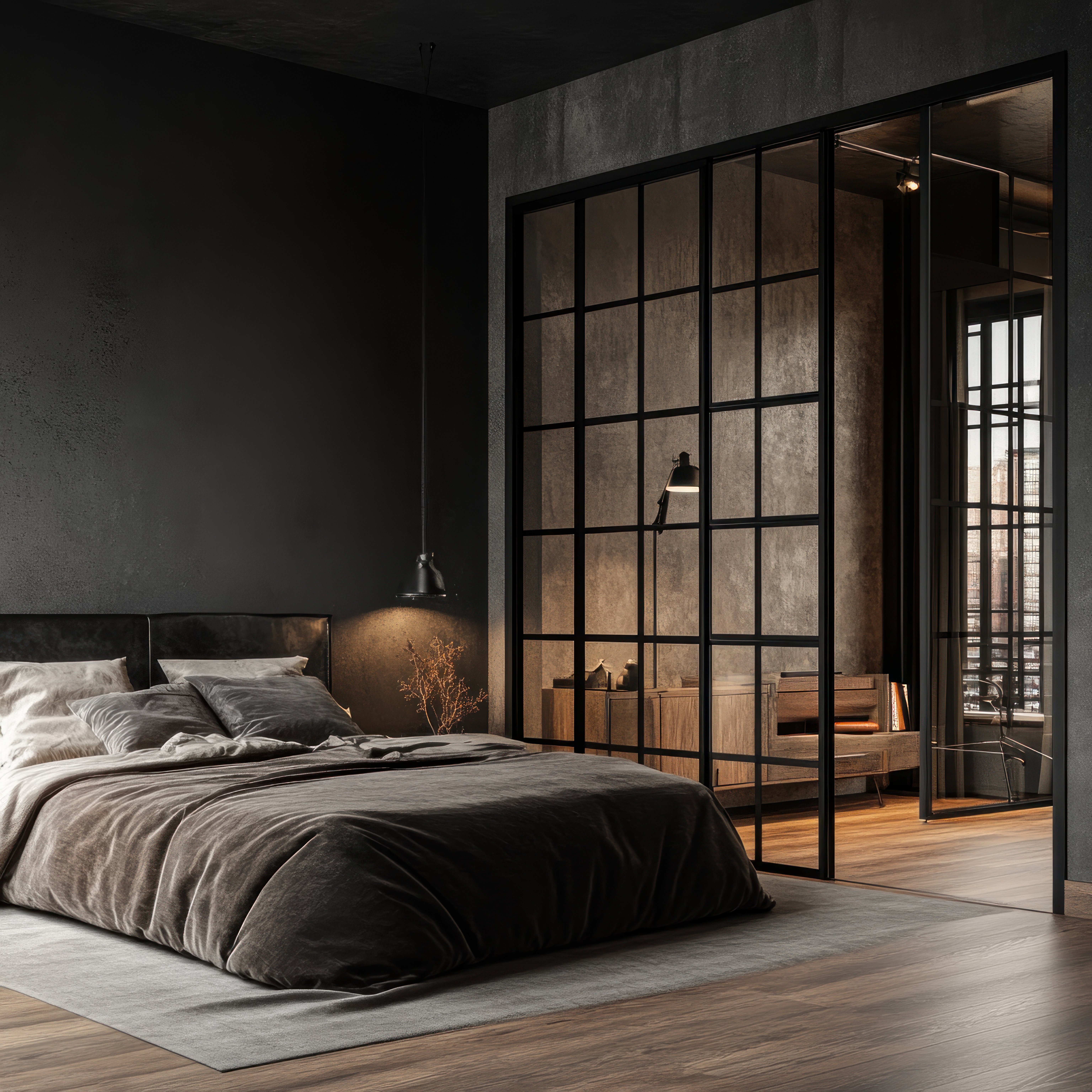 Im Schlafzimmer sorgt der Industrial Style durch seine klaren Linien und das reduzierte Dekor für eine entspannte, gemütliche Atmosphäre. Mit dunklen Farben und markanten Materialien kannst du den Raum in einen Rückzugsort mit Charakter verwandeln: