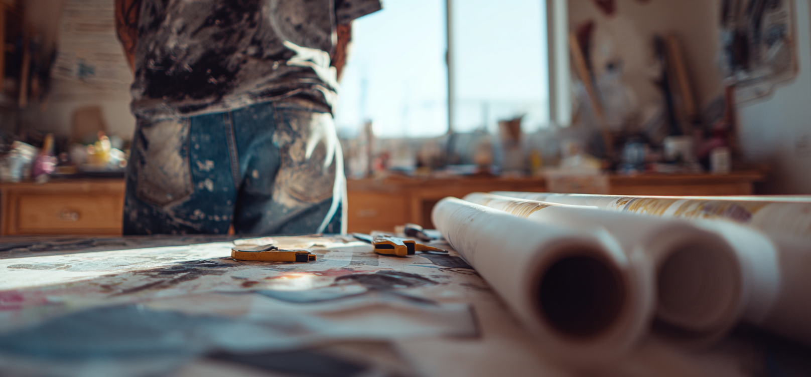 Tapezieren erfordert meist etwas Feingefühl und Übung. Besonders bei dünnen Tapeten oder bei solchen mit großflächigen Mustern solltest du auf einen Fachmann zurückgreifen, der sich mit Ansatz, Versatz und Rapport auskennt. Um die Bahnen zu bestreichen, benötigst du etwas mehr Platz als beim Streichen und am besten einen Tapeziertisch.