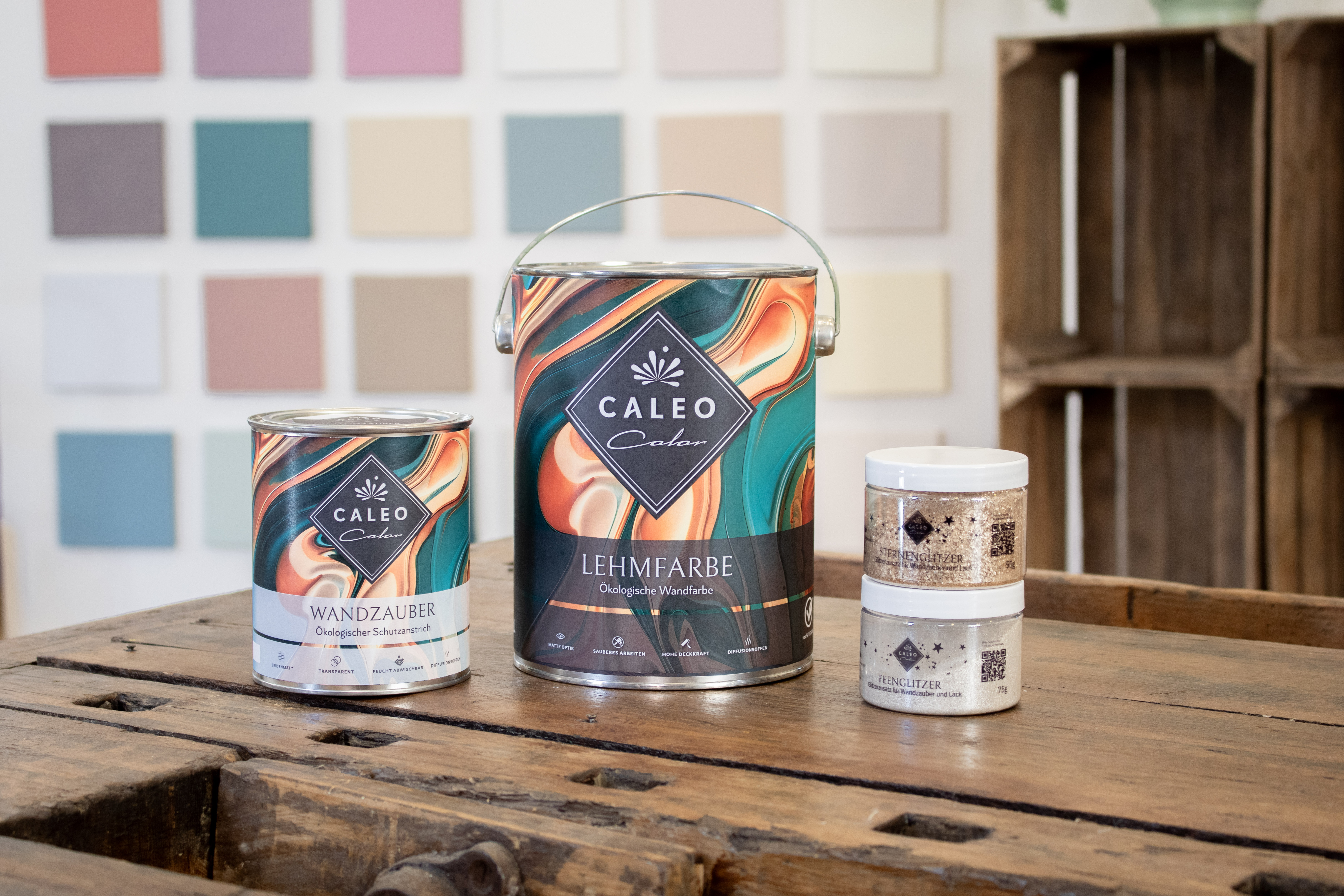 Der Caleo Color Wandzauber Schutzanstrich ist farblos und seidenglänzend. Besonders bei kräftigeren Farbtönen können jedoch leichte Unterschiede zum nicht behandelten Farbton entstehen (siehe Produktbilder). Auf Wunsch kann der transparente Schutzanstrich auch mit unseren natürlichen Glitzerpigmenten in Gold oder Silber veredelt werden.